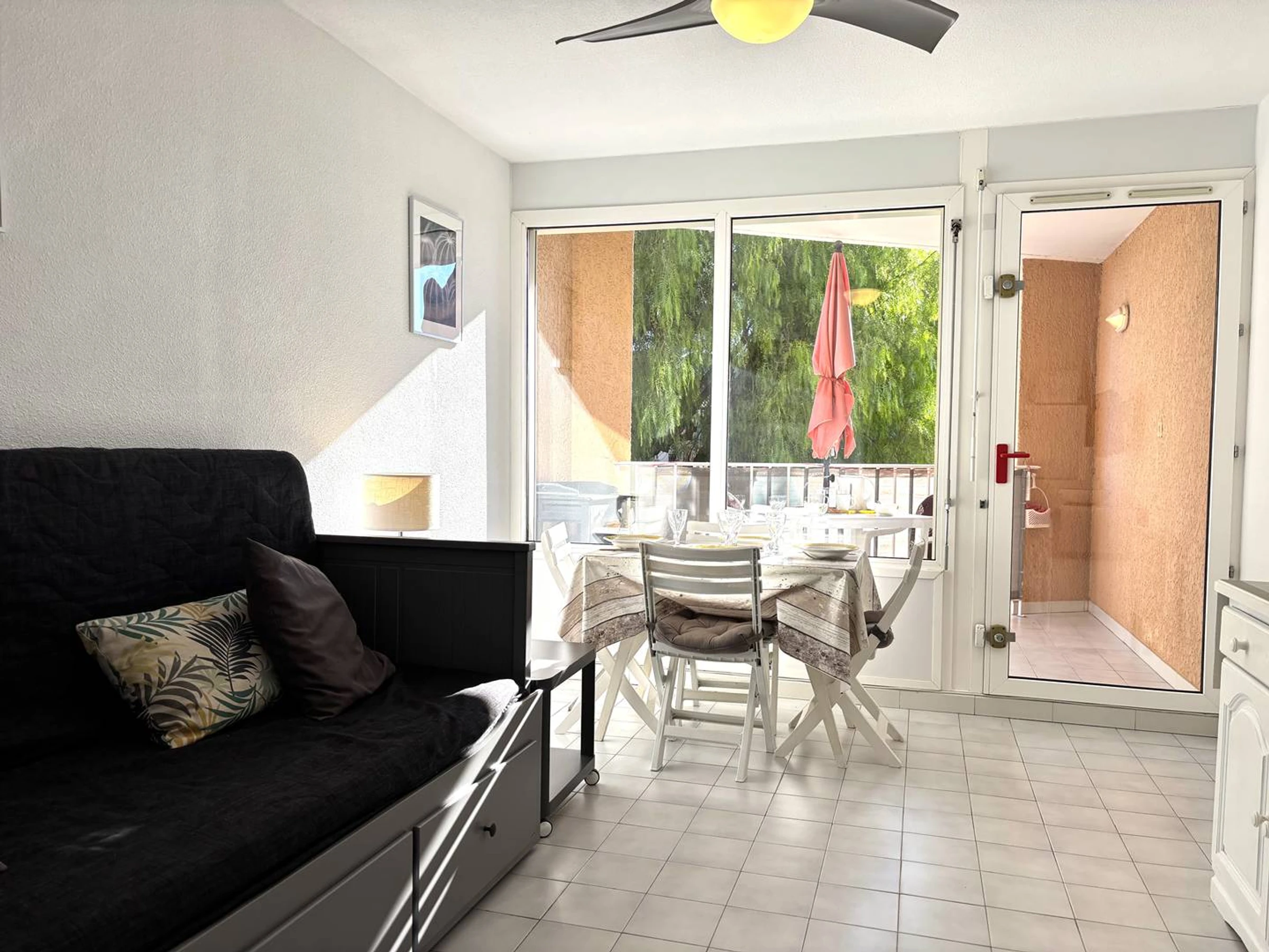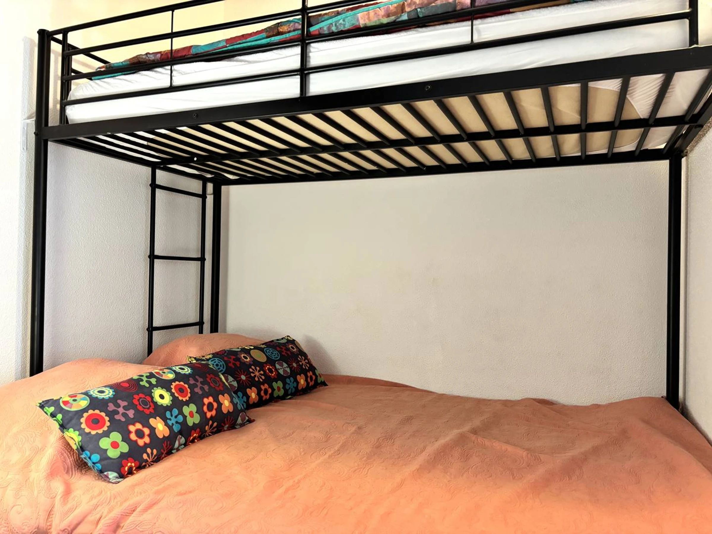 Das Apartment bietet ein Wohnzimmer mit Schlafsofa und TV, eine Küchenzeile mit Geschirrspüler, Mikrowelle, Herd und Kühl-/Gefrierkombination, einen Schlafbereich mit einem Etagenbett mit einer 140 x 190 cm großen Doppelmatratze, ein Badezimmer und ein separates WC. Ein privater Parkplatz ist ebenfalls vorhanden.