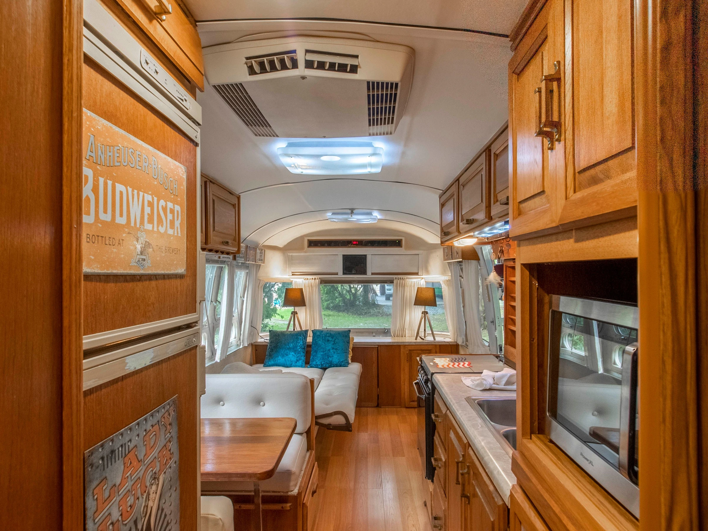 Innen bietet der Airstream ein schickes Retro-Ambiente und allen nötigen Komfort: