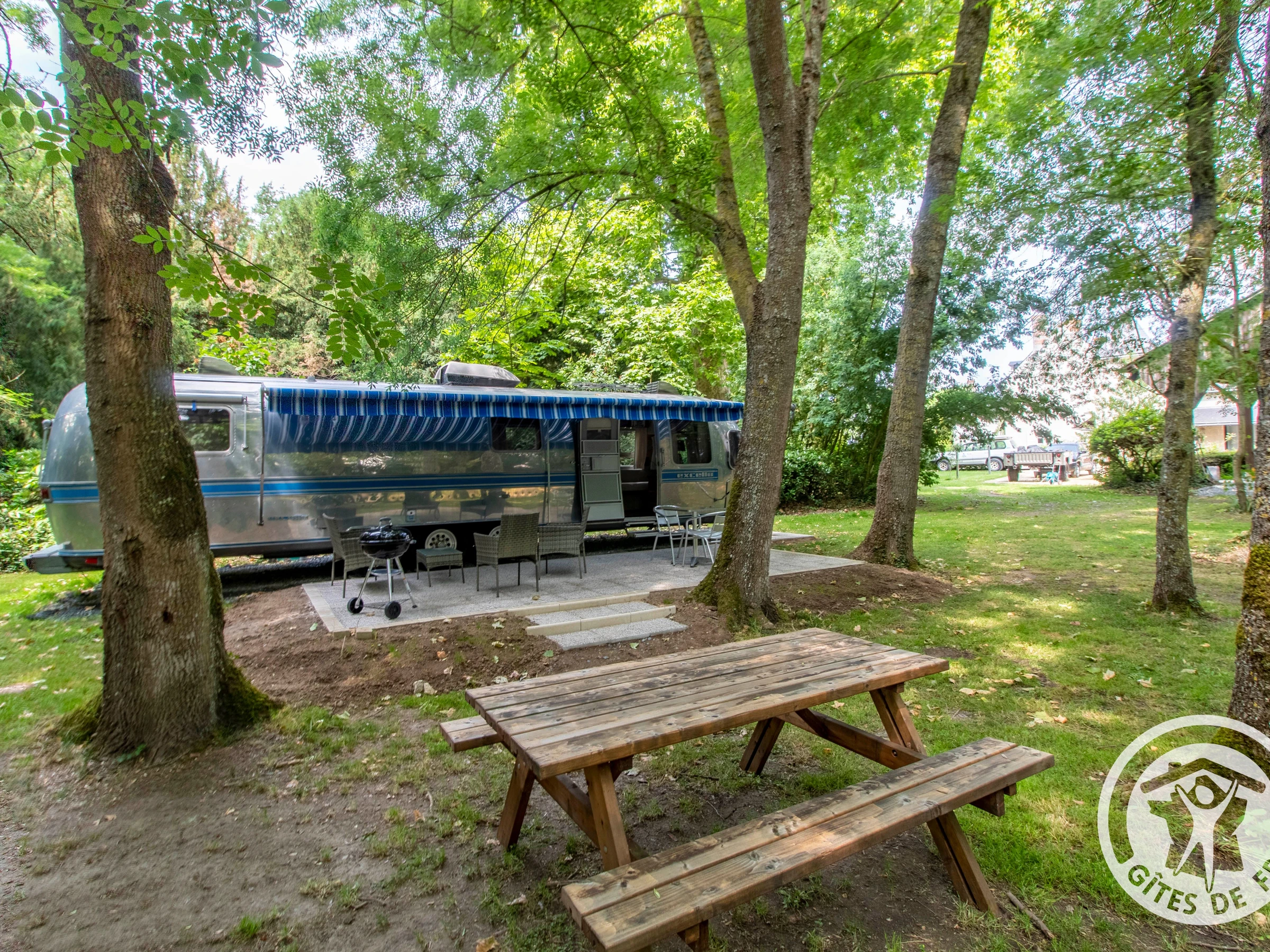 Der amerikanische Traum wird im La Ménitré wahr: Gönnen Sie sich einen außergewöhnlichen Kurzurlaub in einem authentischen Airstream-Wohnwagen mit beheiztem Pool im Herzen von Anjou!