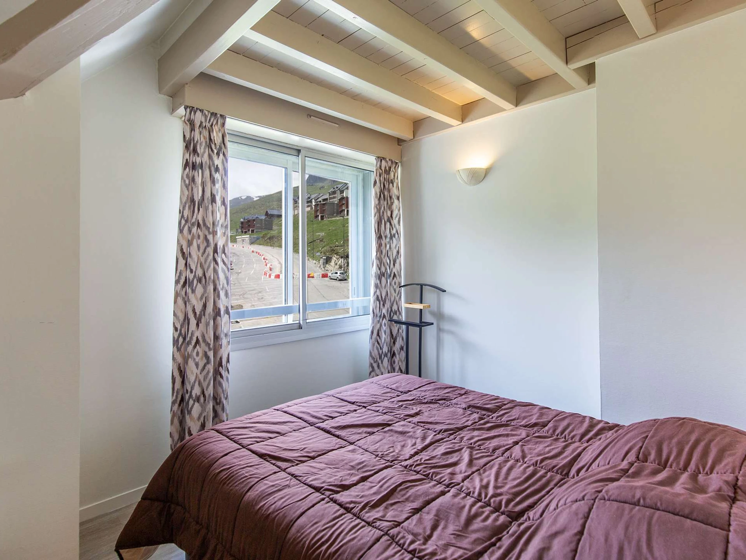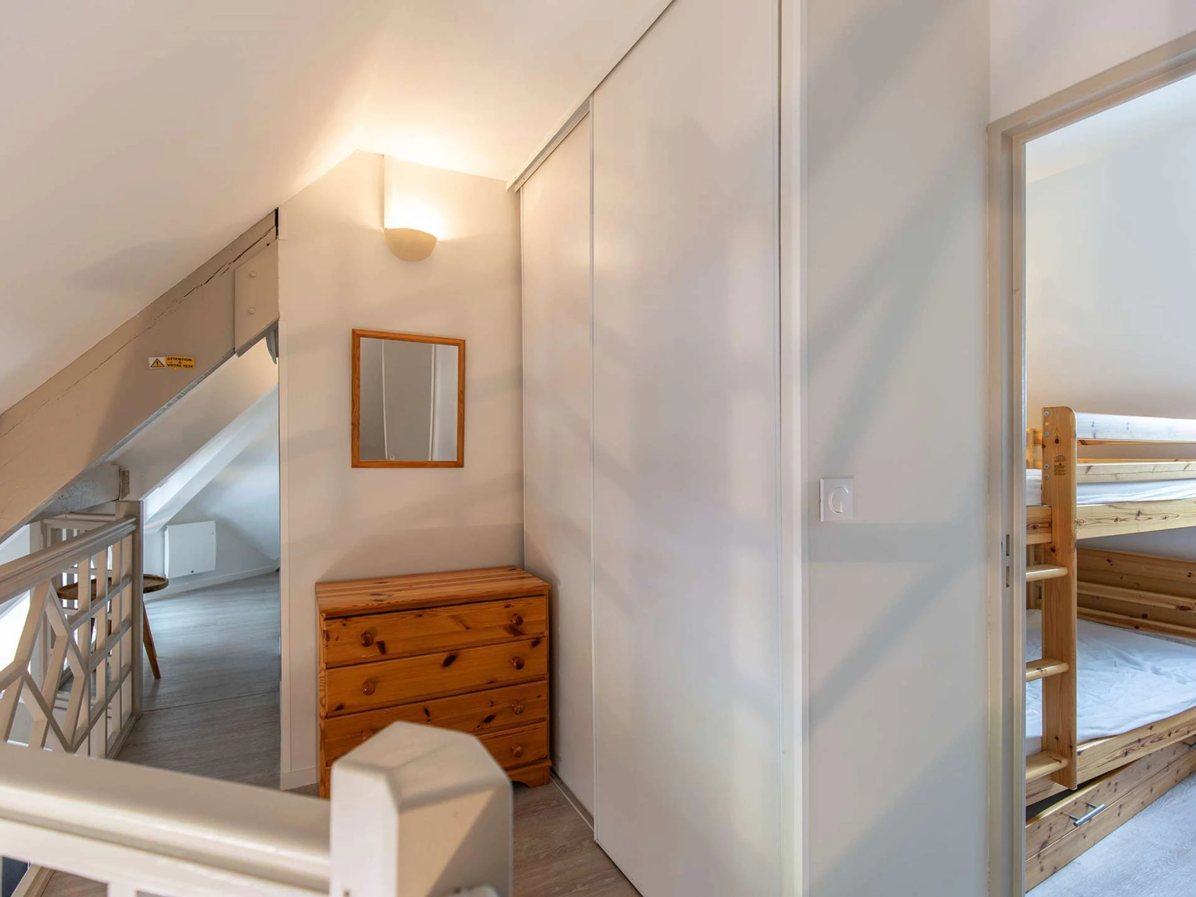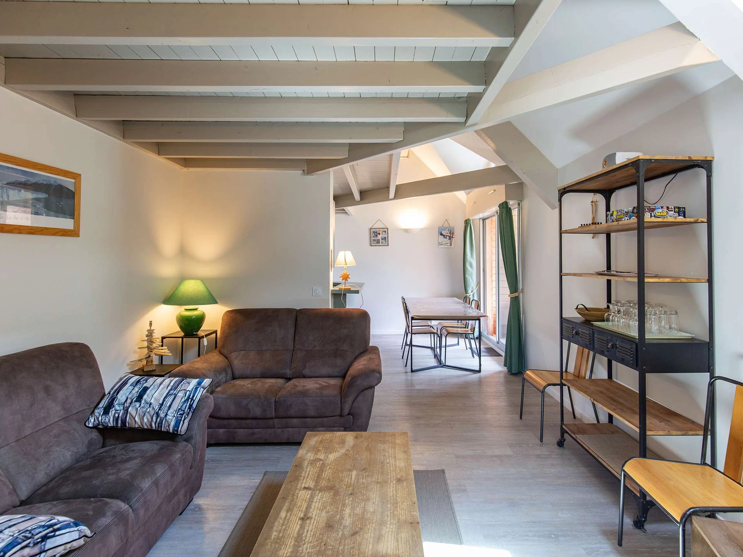 Maisonette-Wohnung im 4. Stock, Zugang über eine Treppe (3 Stockwerke). 60 m² mit Südbalkon und Blick auf die Pisten. Wohnzimmer mit Sitzecke und Fernseher. Voll ausgestattete Küche mit Zugang zum Essbereich: Geschirrspüler, Tischkühlschrank, Mikrowelle, Filterkaffeemaschine, Toaster, Wasserkocher, Schnellkochtopf und Raclette-Set. Im Erdgeschoss: ein Schlafzimmer mit Doppelbett. Obergeschoss: ein Schlafzimmer mit zwei Einzelbetten + Ausziehbett und ein Zwischengeschoss mit einem Doppelbett + Zustellbett für ein Kind. Zwei Badezimmer mit Dusche und Waschbecken sowie ein separates WC. Laminatparkettboden.