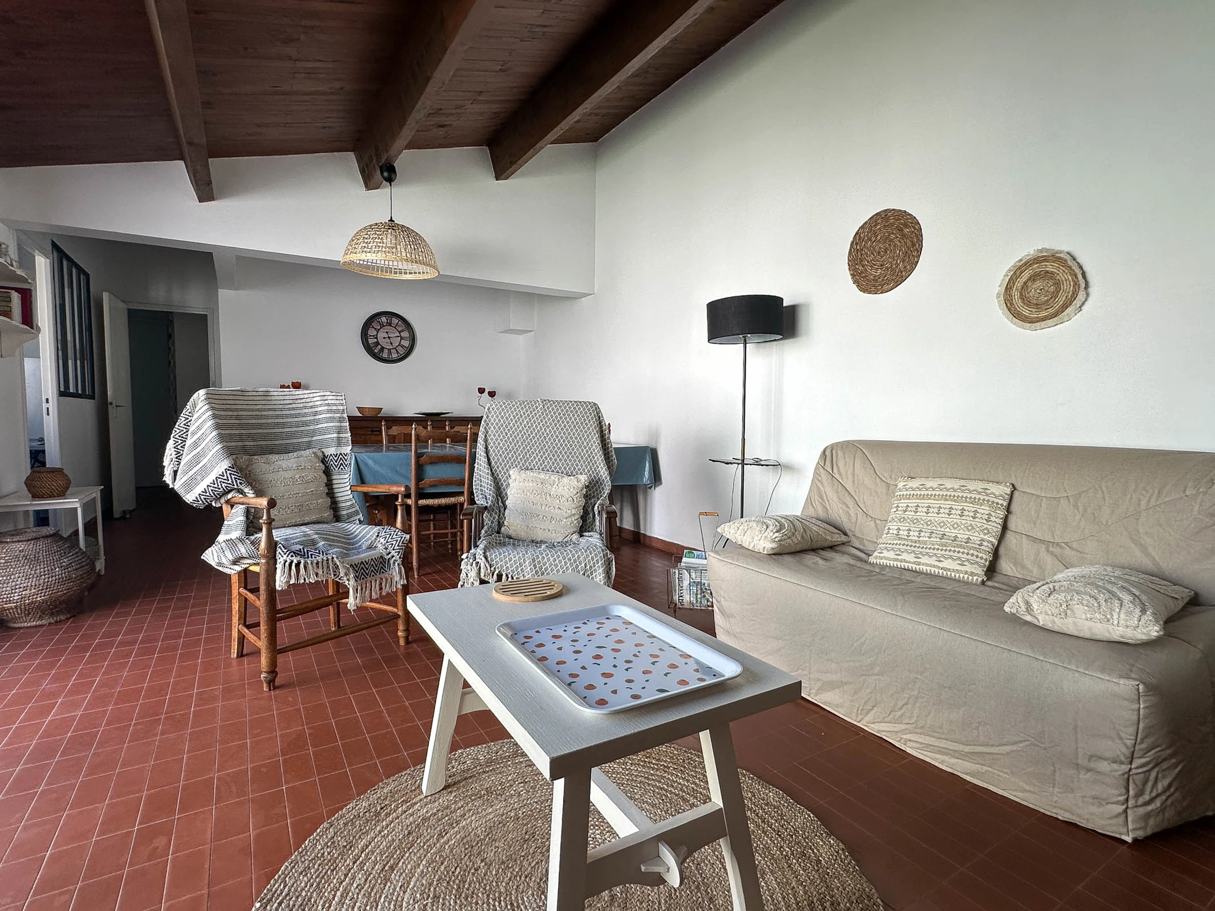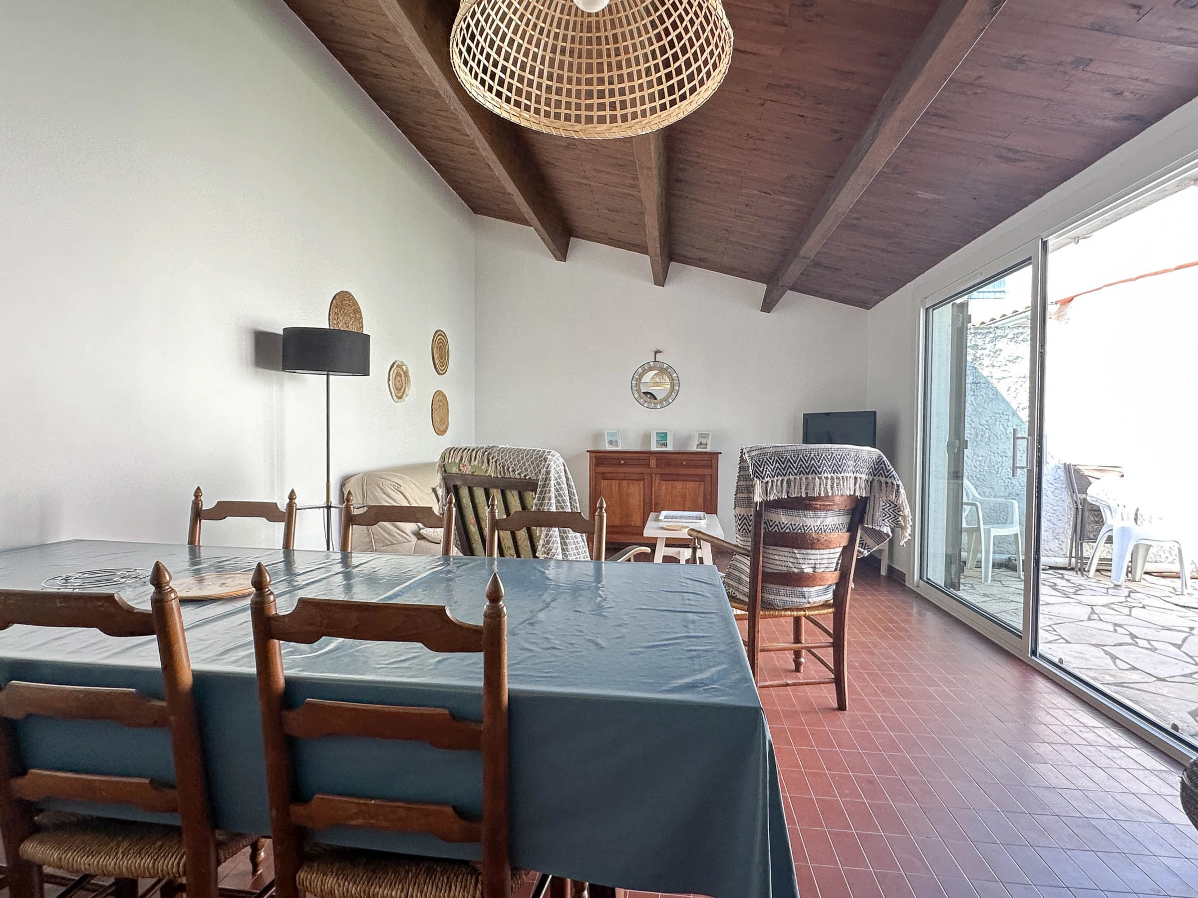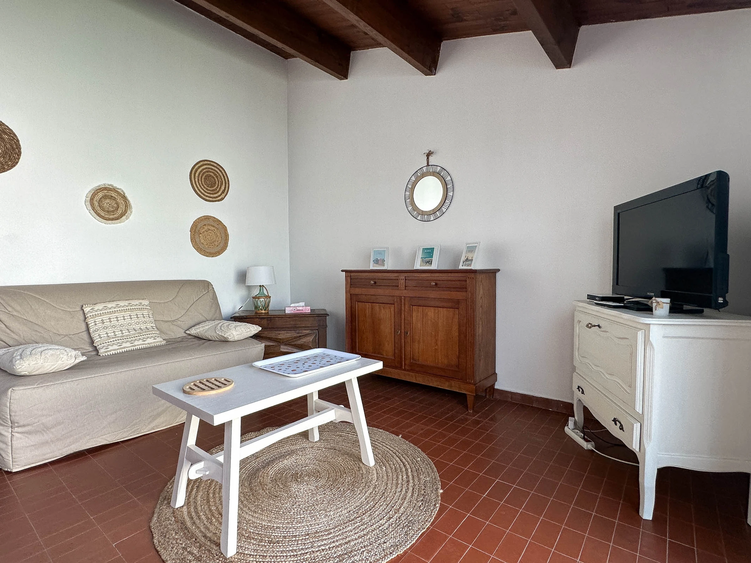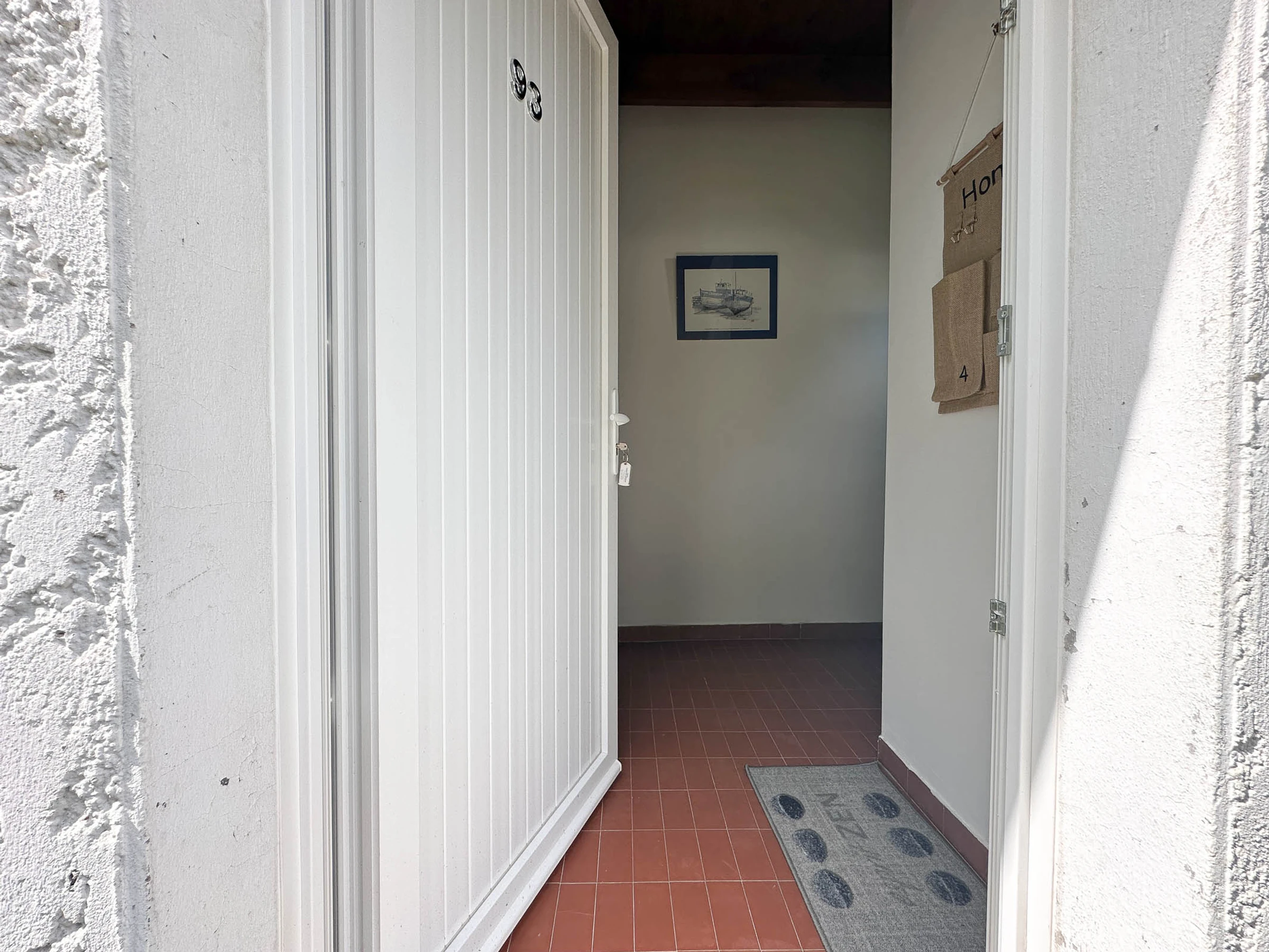 Etwa 200 m vom Meer und 300 m von Geschäften entfernt, hübsch renoviertes Doppelhaus, 2 Schlafzimmer auf einer Ebene, das Platz für 4 Personen bietet. Auf einer Wohnfläche von ca. 60 m² befinden sich darunter: