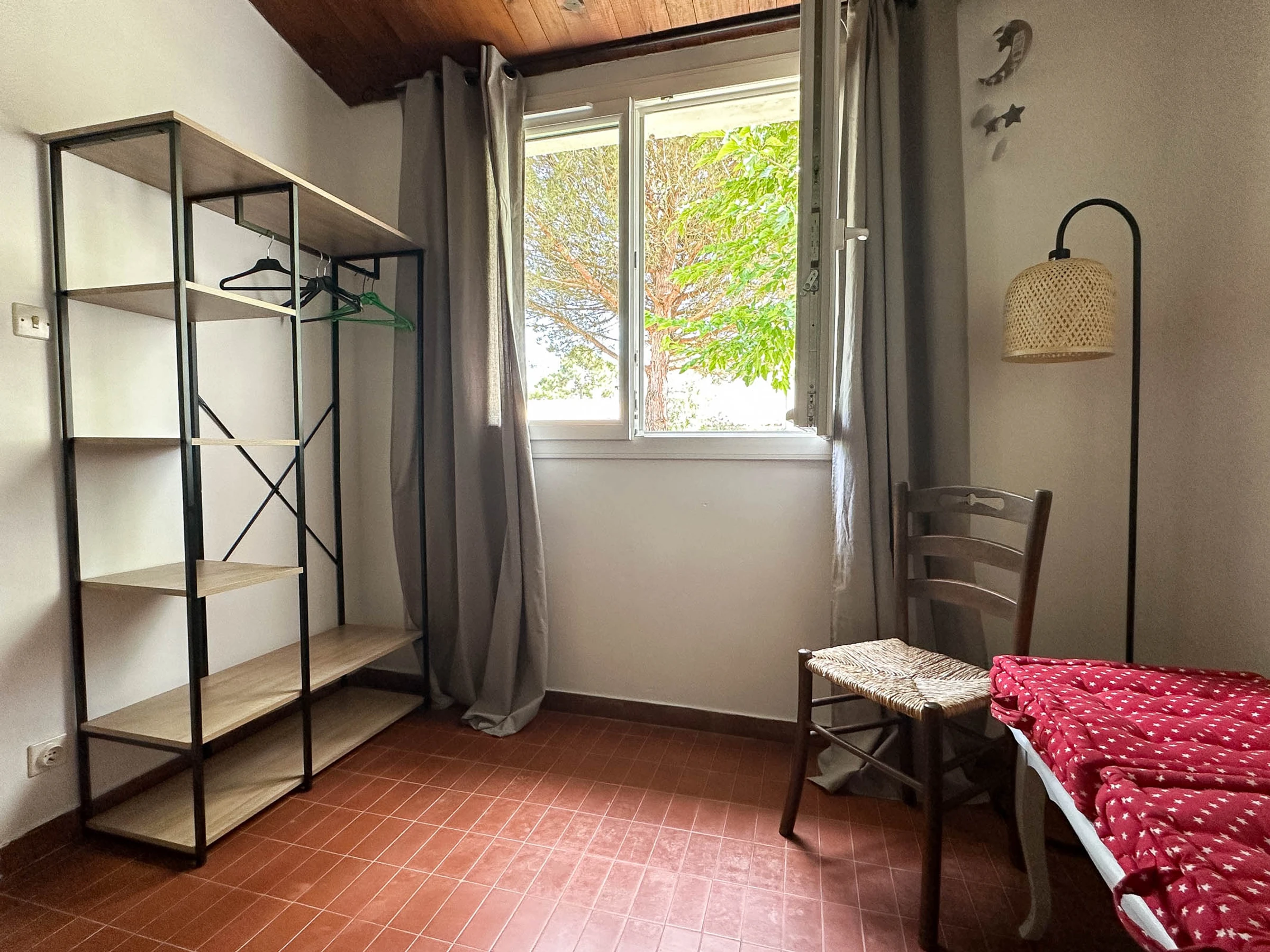 - Schlafzimmer 1 Bett 140 cm, Schrank/Garderobe