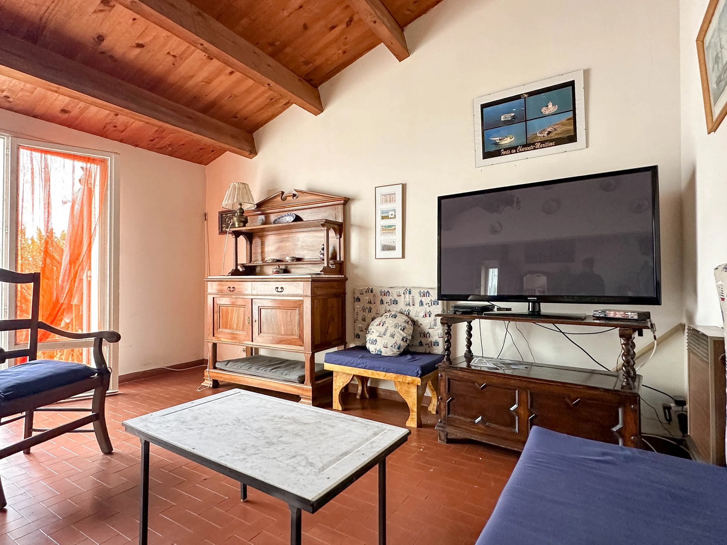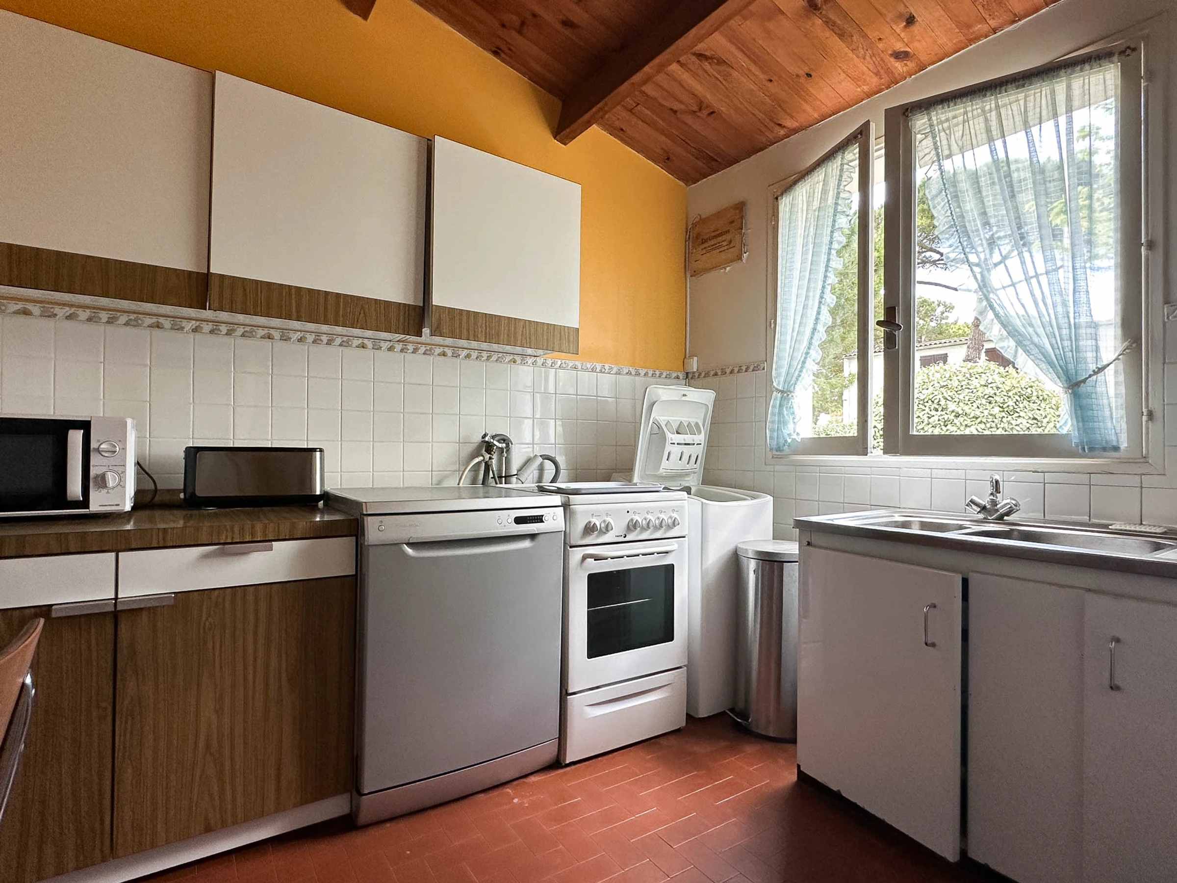 Ca. 350 m vom Meer und 400 m von Geschäften und Tennisplätzen entfernt - Doppelhaushälfte mit 4 Zimmern auf einer Ebene für 6 Personen - Wohnfläche ca. 75 m² - Eingangshalle - Ausgestattete Küche mit Geschirrspüler, Waschmaschine, Mikrowelle, Gas Herd, Backofen, Kühl-/Gefrierschrank - Wohnzimmer mit Sofa und Fernseher, Zugang zu gepflasterter Terrasse mit Markise - Schlafzimmer 1 140 cm Bett, Kleiderschrank - Schlafzimmer 1 140 cm Bett, Kleiderschrank - Schlafzimmer 2 140 cm Betten 90 cm, Kleiderschrank - Badezimmer - separates WC -