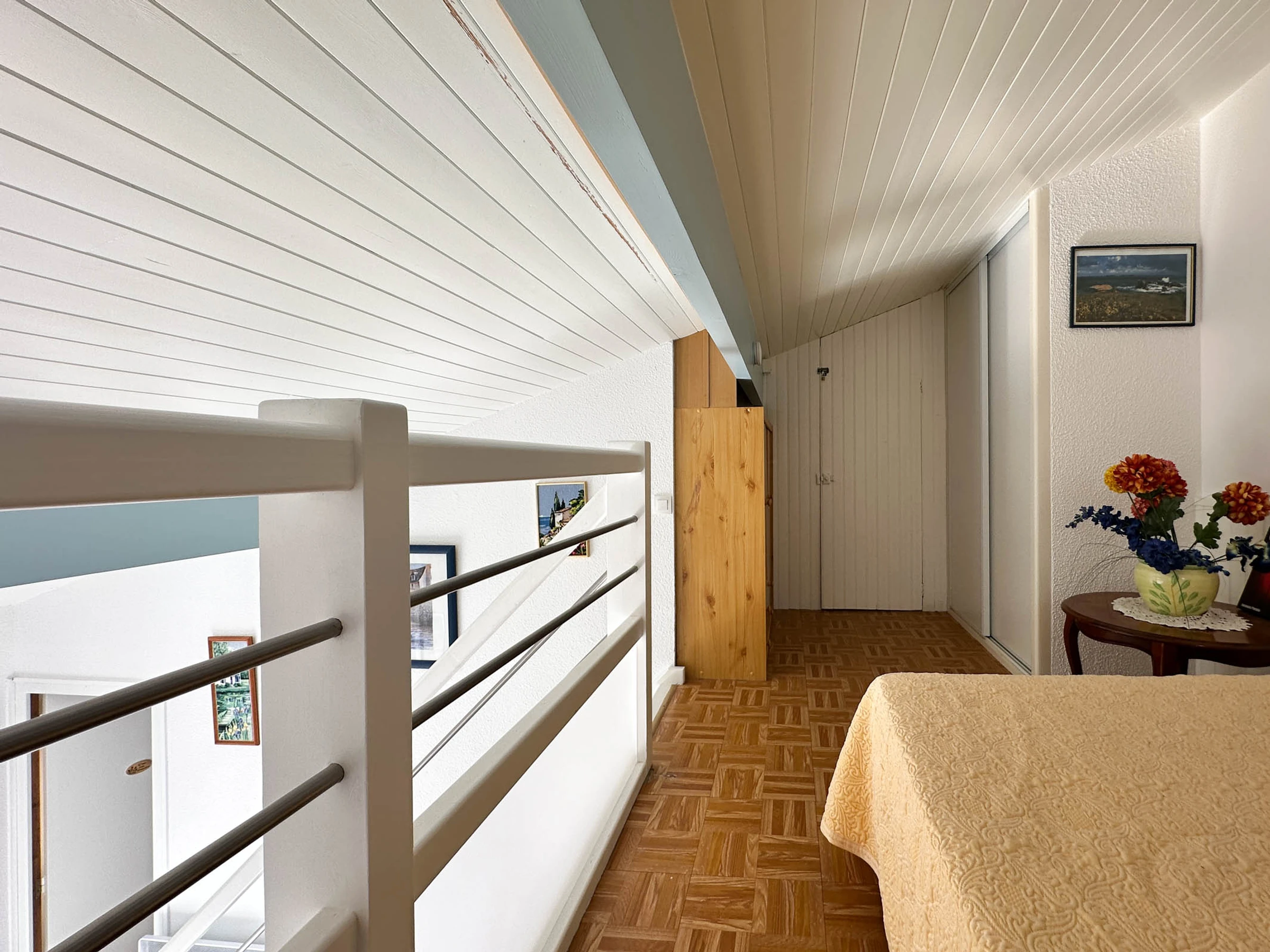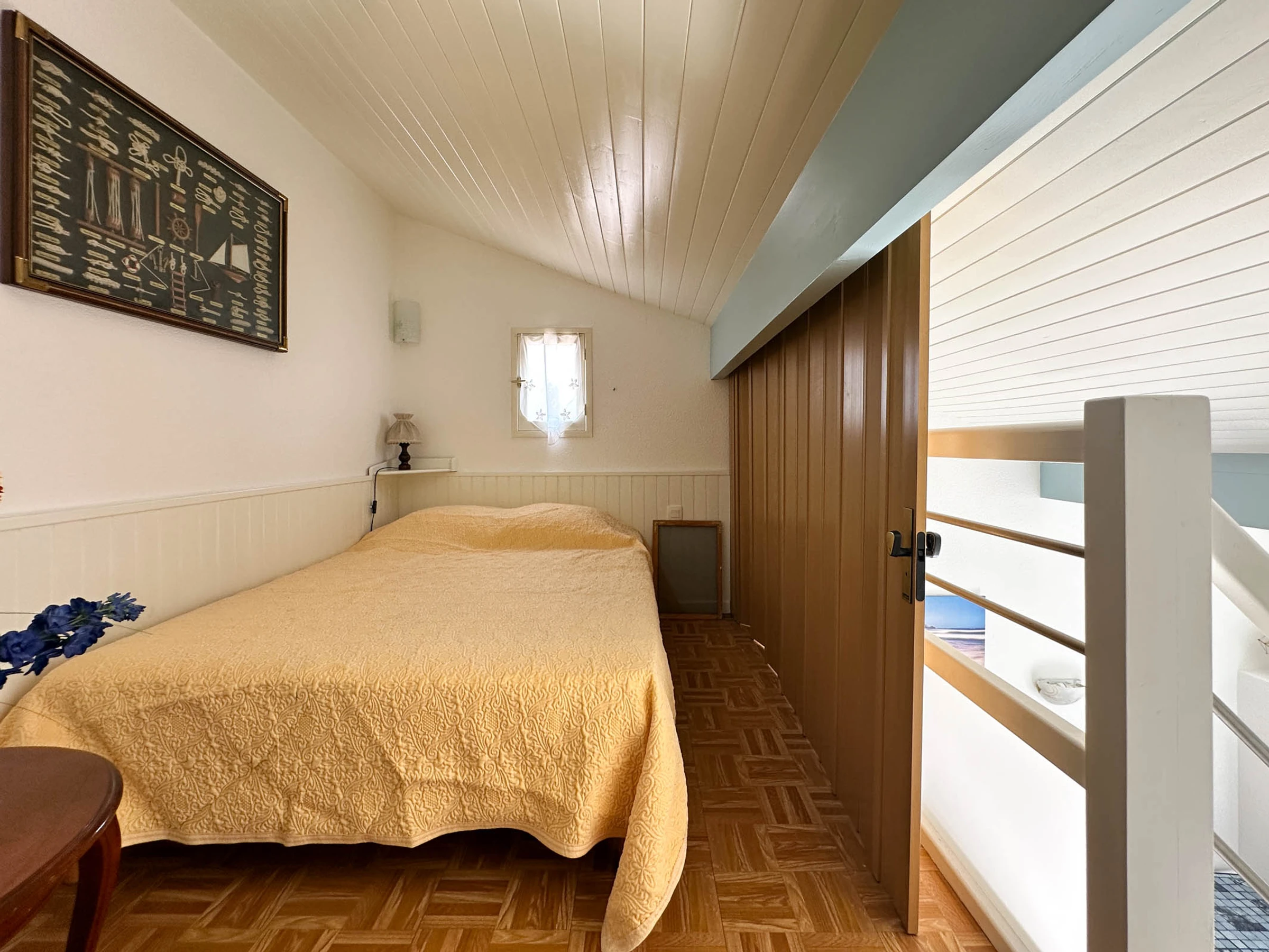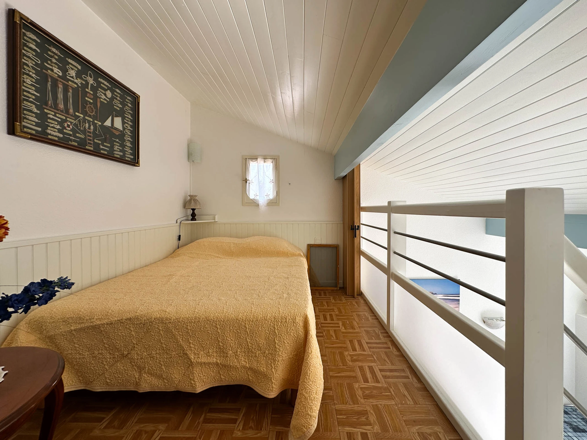 Obergeschoss: Schlafbereich im Zwischengeschoss mit 1 Doppelbett und Schrank