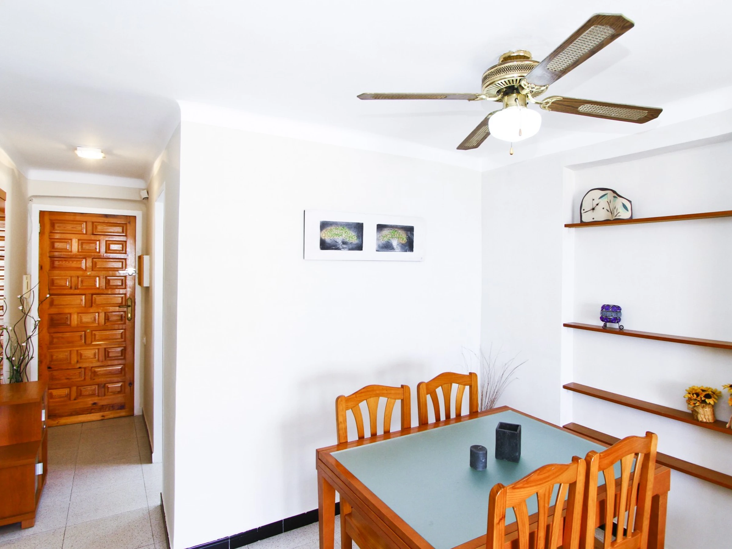 Es besteht aus 2 Doppelschlafzimmern. Eines davon mit 2 Einzelbetten und das andere mit einem Doppelbett. Ein Badezimmer mit Dusche. Geräumiges Wohn-Esszimmer mit offener, vollständig ausgestatteter Küche. Außerdem verfügt der Wohnbereich über einen Balkon, von dem aus Sie einen schönen Blick aufs Meer genießen werden.