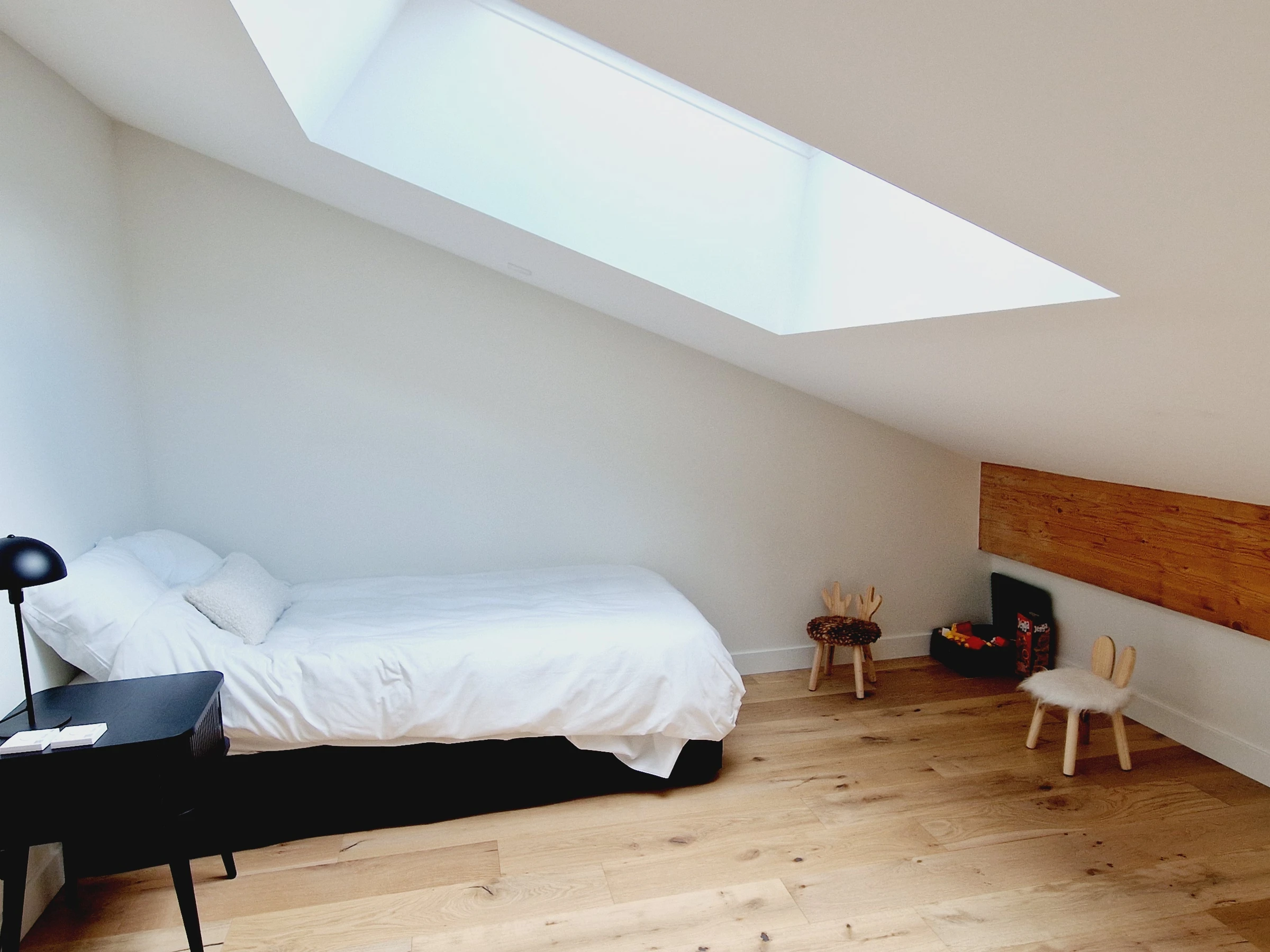 Schließlich profitieren Sie im 2. Stock von einem Zwischengeschoss und einem Schlafsaal für Kinder mit zwei Einzelbetten sowie einem TV-Sofa und einem PS4-Entspannungsbereich.