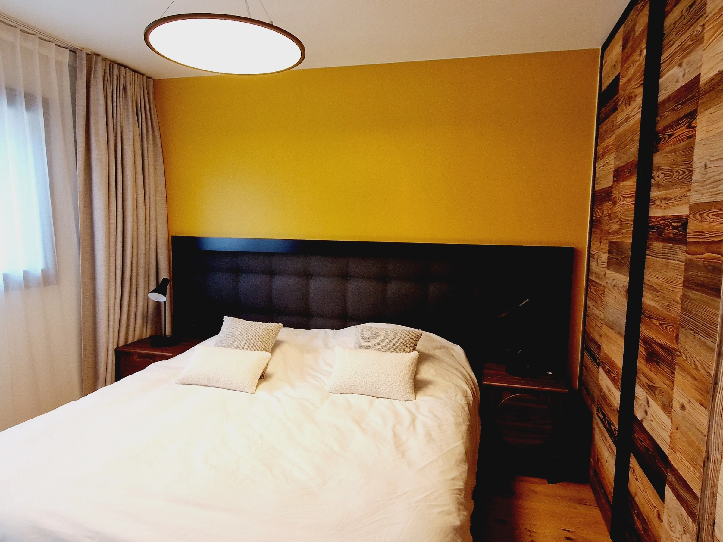 Ein Schlafzimmer mit eigenem Bad und einem 180 cm breiten Kingsize-Bett (Einzelbett, das in zwei 90 cm breite Einzelbetten umgewandelt werden kann) / Duschbad / großer Kleiderschrank,