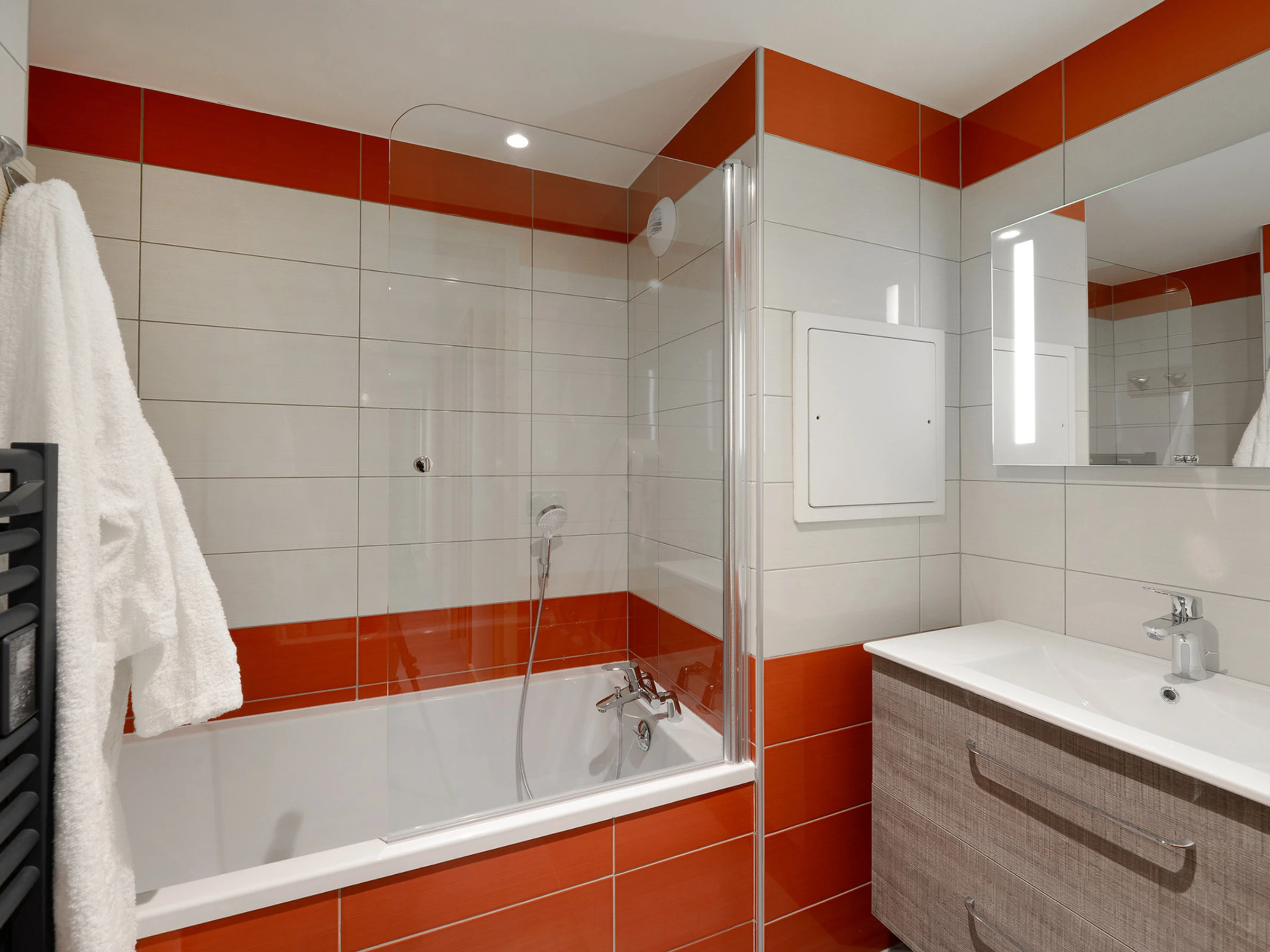 Es besteht aus 6 Stockwerken mit zwei Aufzügen und bietet einfachen Zugang zu den Pisten