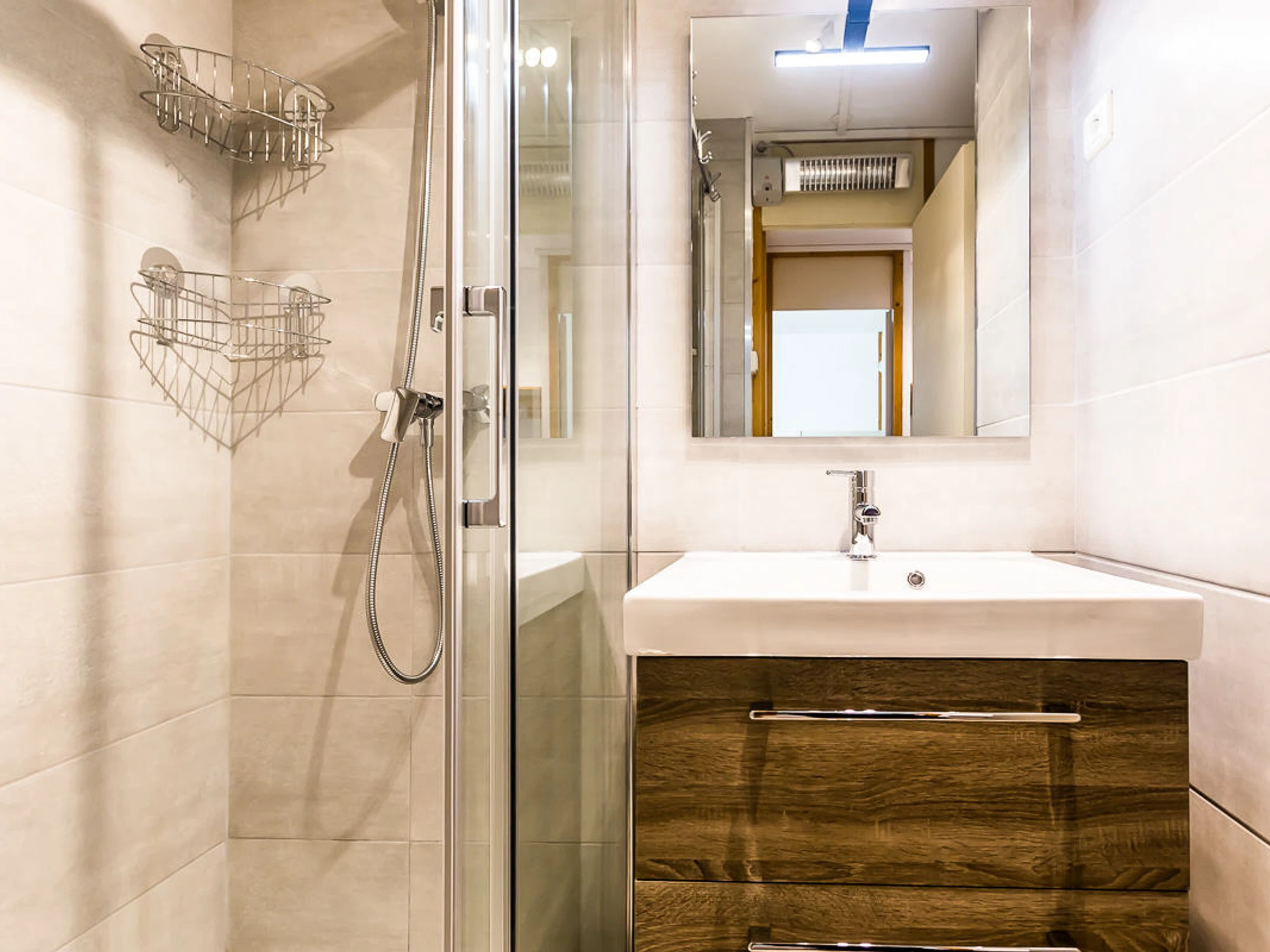 Diese komplett renovierte, ca. 32 m² große, südseitige 2-Zimmer-Wohnung für 4/5 Personen befindet sich im ersten Stock und ist mit 2 Sternen ausgezeichnet.