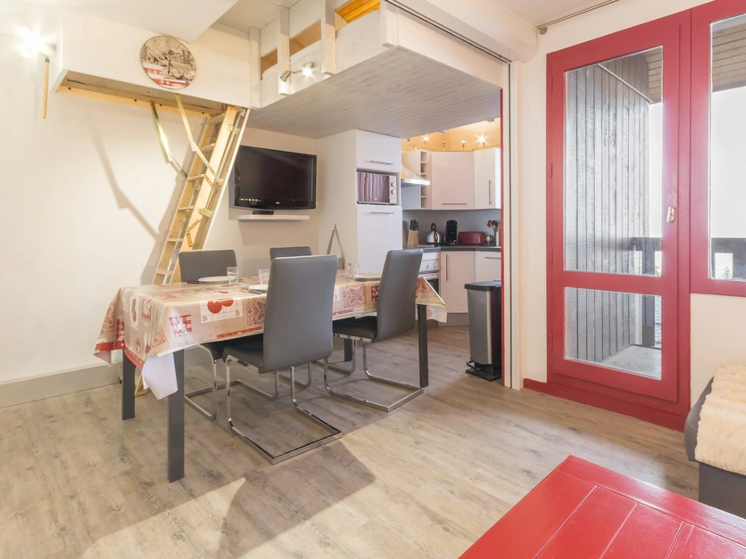 Die 40 m² große Maisonette-Wohnung für 6 Personen befindet sich in der Residenz La Traverse in Les Coches, in unmittelbarer Nähe von Geschäften und Pisten. Sie befindet sich im fünften Stock mit Aufzug und Balkon und bietet Platz für 6 Personen.