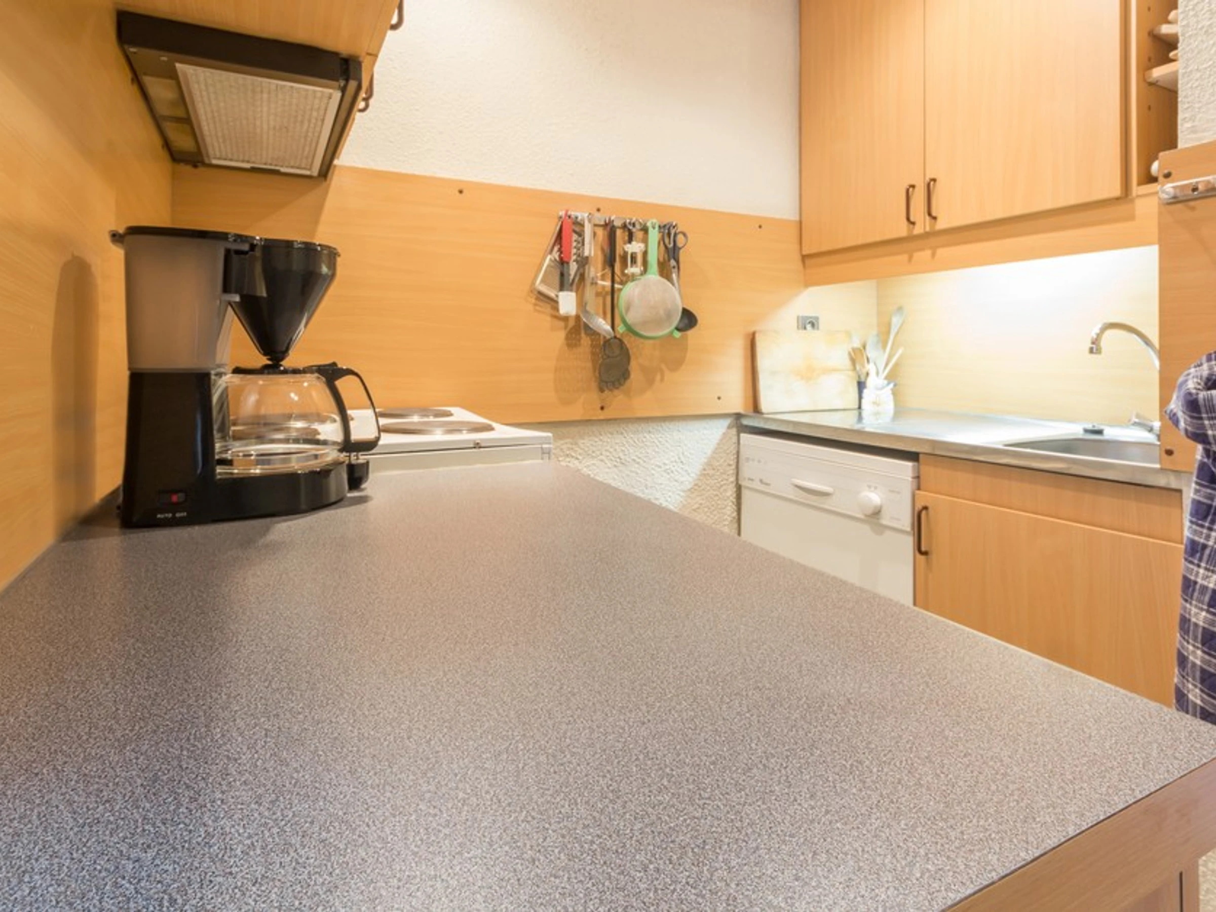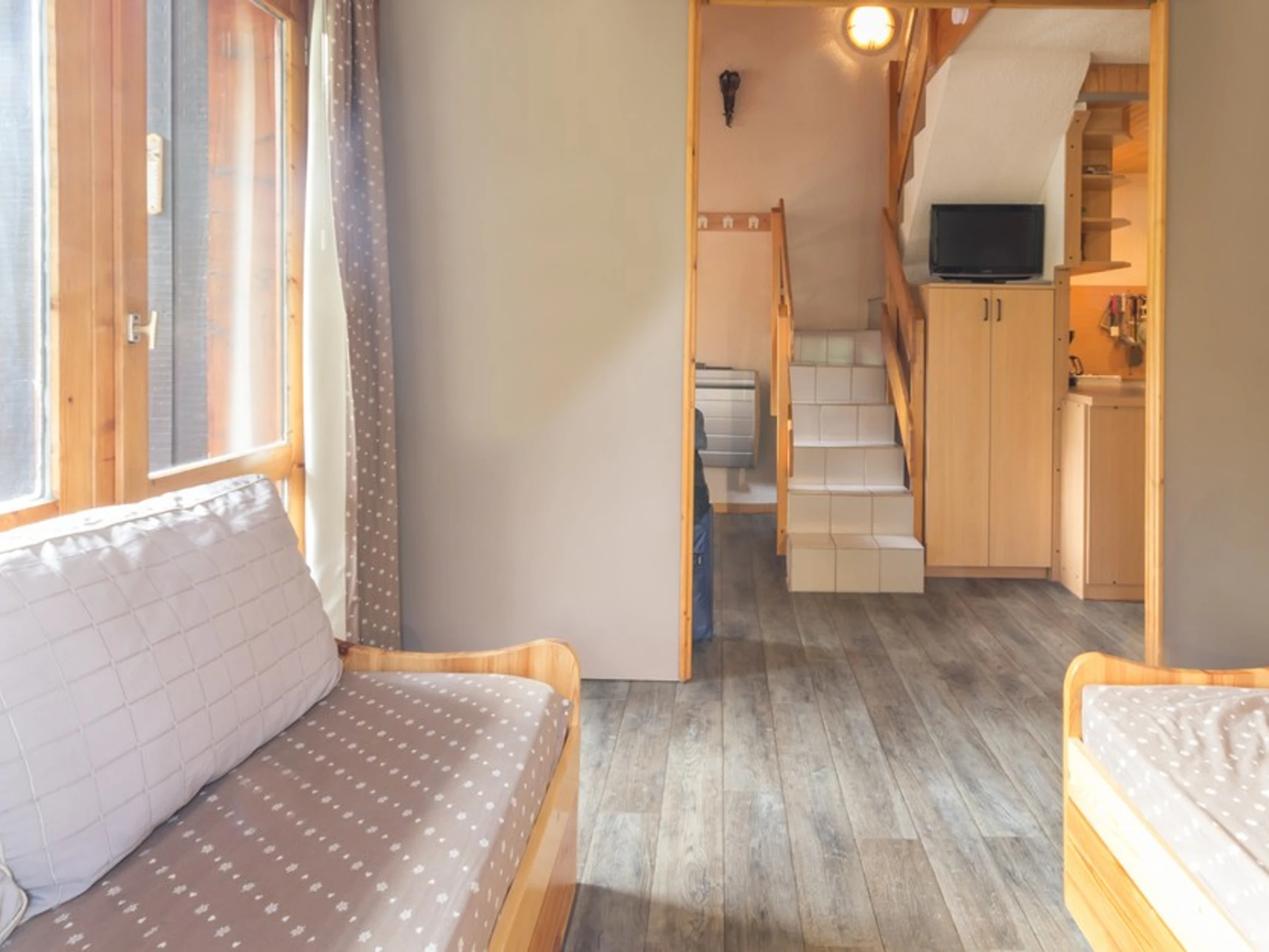 Diese schöne Maisonette mit Südblick auf die Pisten besteht aus einer ausgestatteten Küche (elektrische Kochplatten, Backofen, Kaffeemaschine, Toaster, Geschirrspüler, Mikrowelle, Tischkühlschrank und Wasserkocher), einem Badezimmer mit Badewanne und separater Toilette. Der Wohnbereich verfügt über zwei Einzelbetten. Im Obergeschoss gibt es ein Duschbad und eine Toilette. Im Zwischengeschoss gibt es ein Etagenbett (für Kinder unter 6 Jahren verboten) und ein Schlafzimmer mit zwei Einzelbetten mit der Möglichkeit, ein großes Bett zu machen.