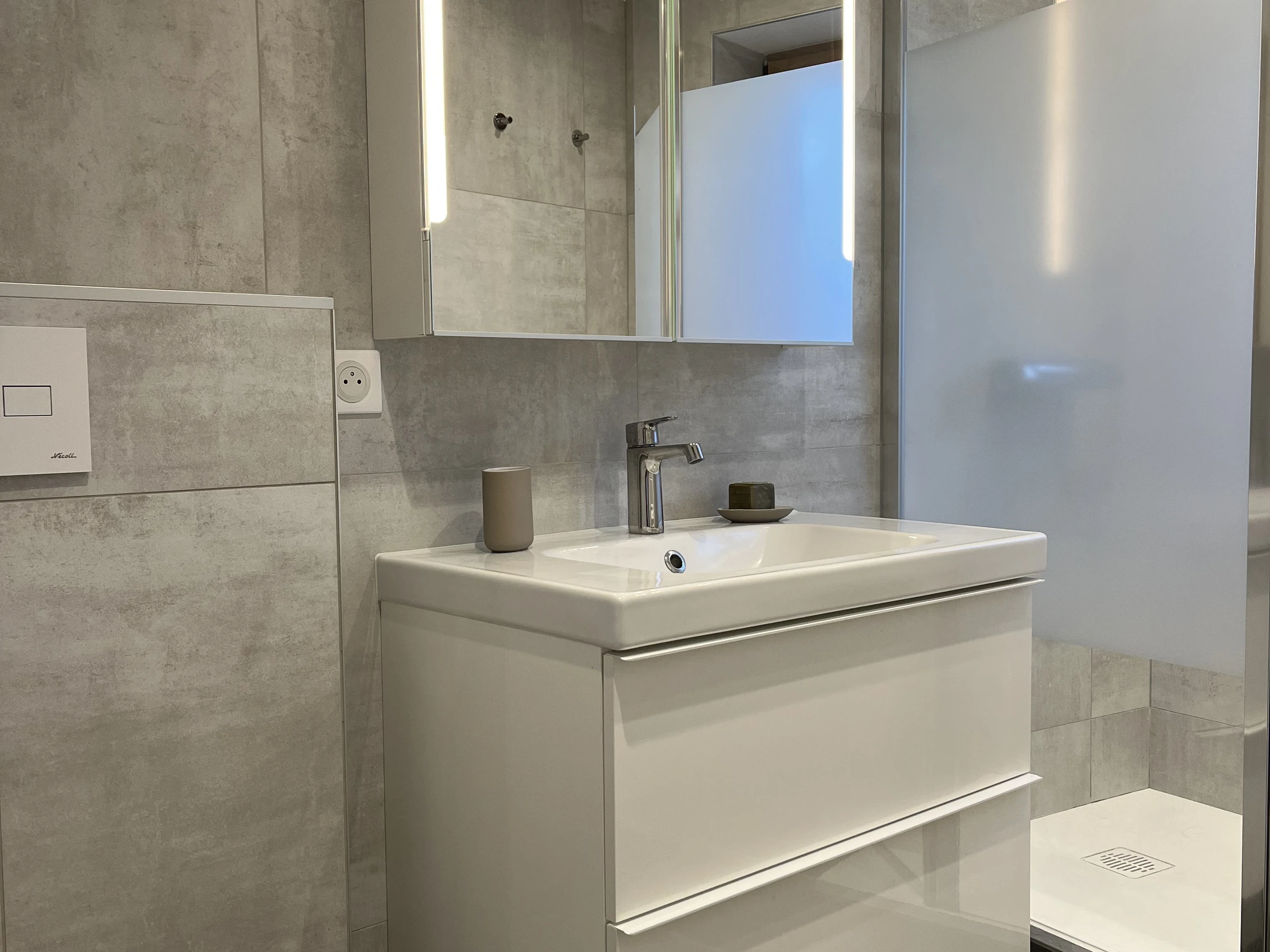 *Badezimmer: Dusche, WC, elektrischer Handtuchtrockner