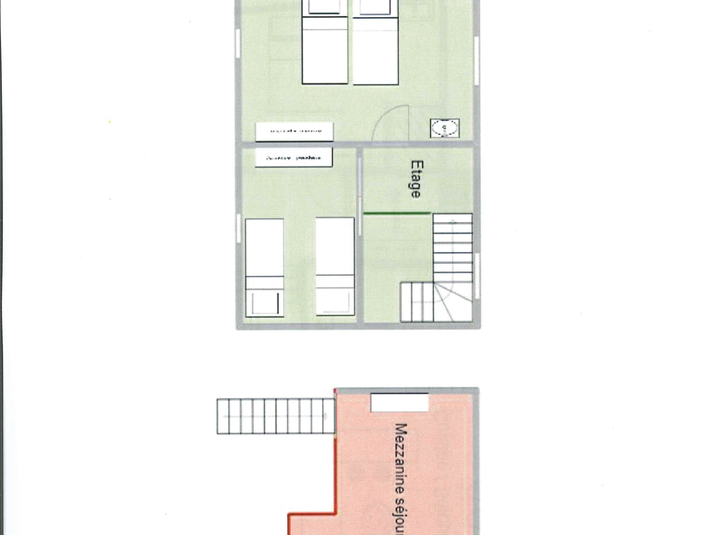*Zugang zum Zwischengeschoss, offen zum Wohnzimmer (Höhe unter 1,80 m): 2 Einzelbetten für 2 Personen (80 x 200 cm).