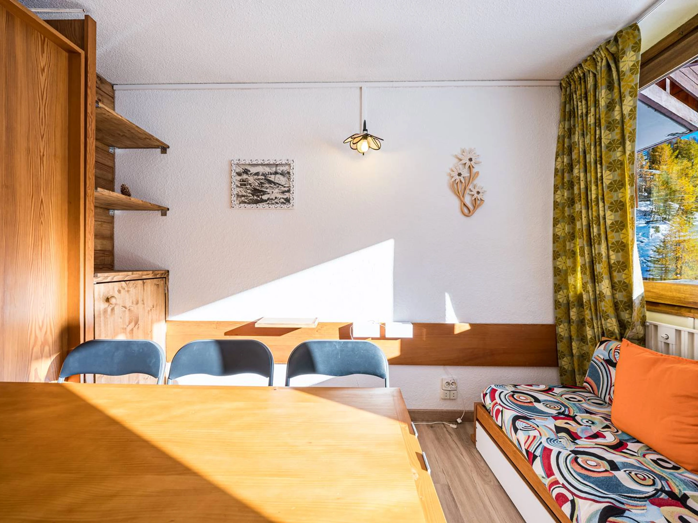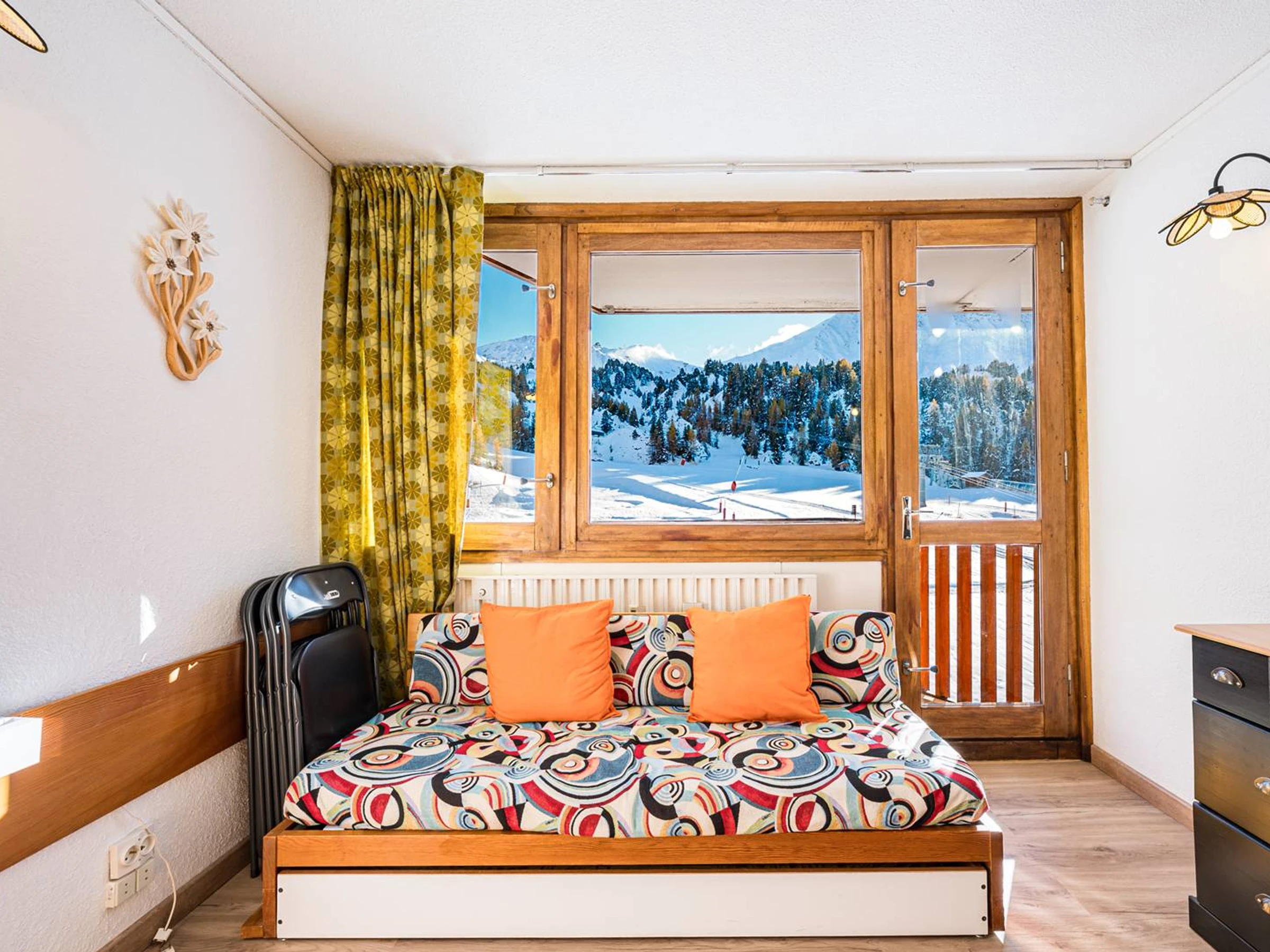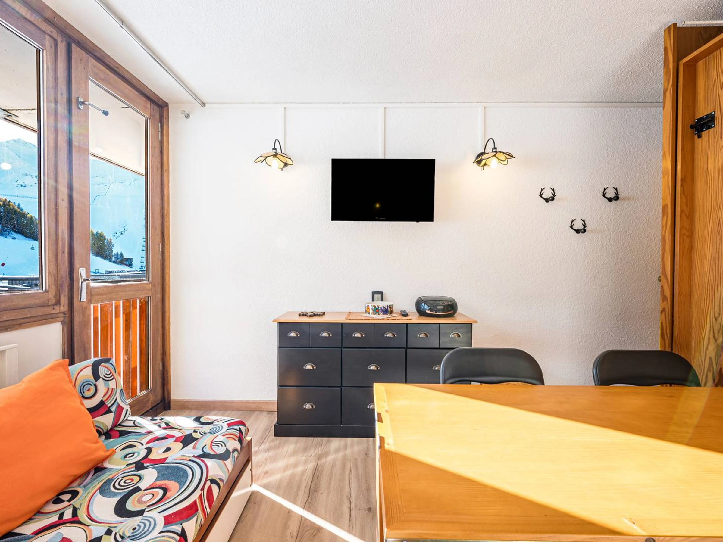 PLAGNE CENTRE – Le France Residence. Charmantes, renoviertes Studio-Apartment mit Südbalkon, direkt über der Boulevard-Piste gelegen. Das Apartment liegt direkt an den Skipisten und bietet über die Innengalerie direkten Zugang zu den Geschäften.