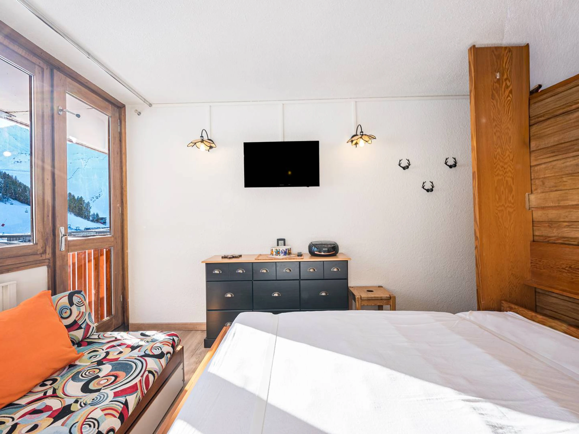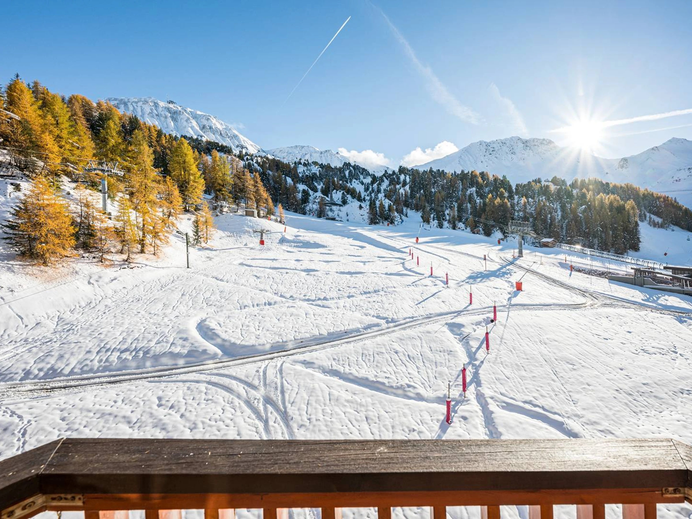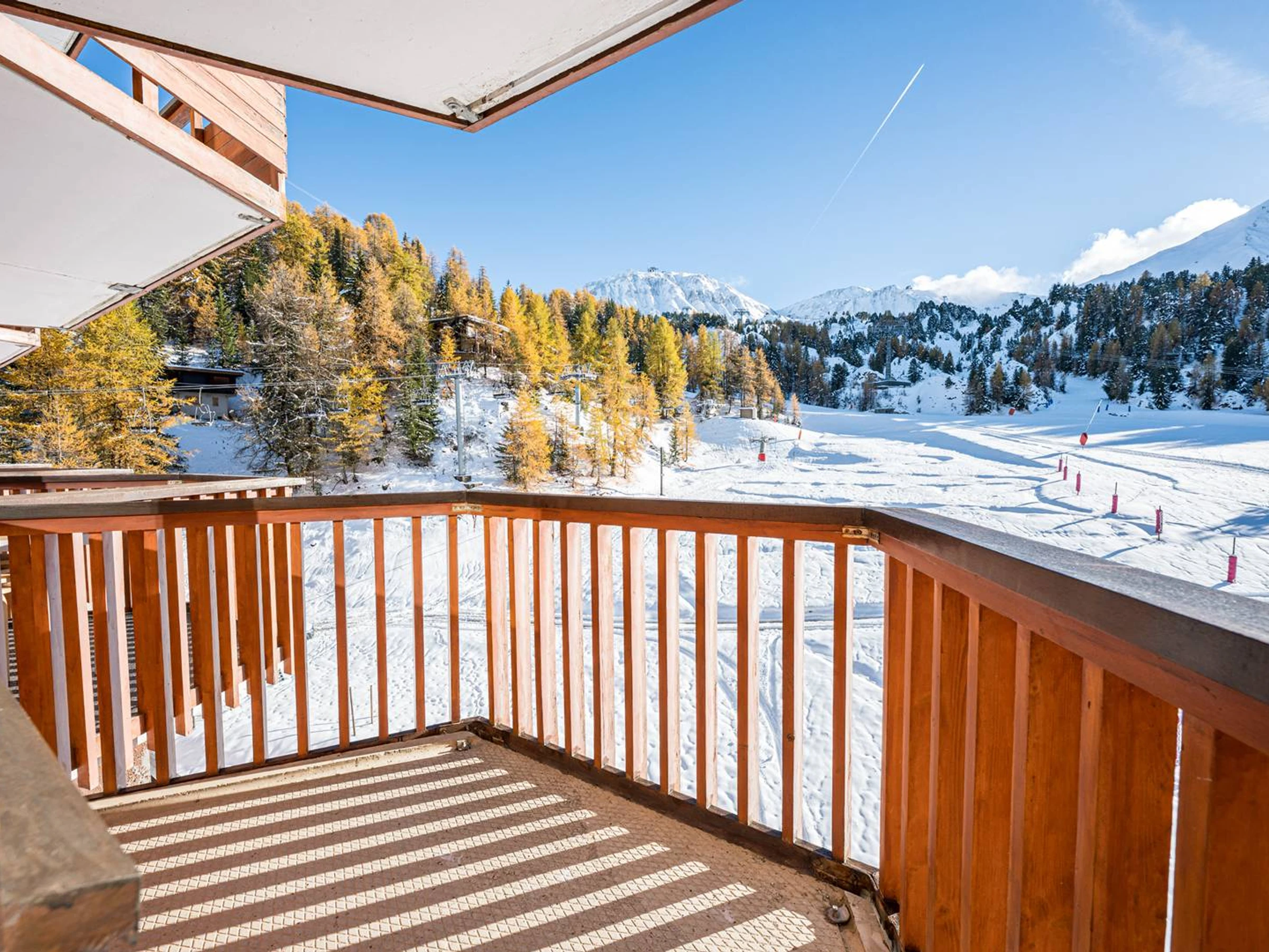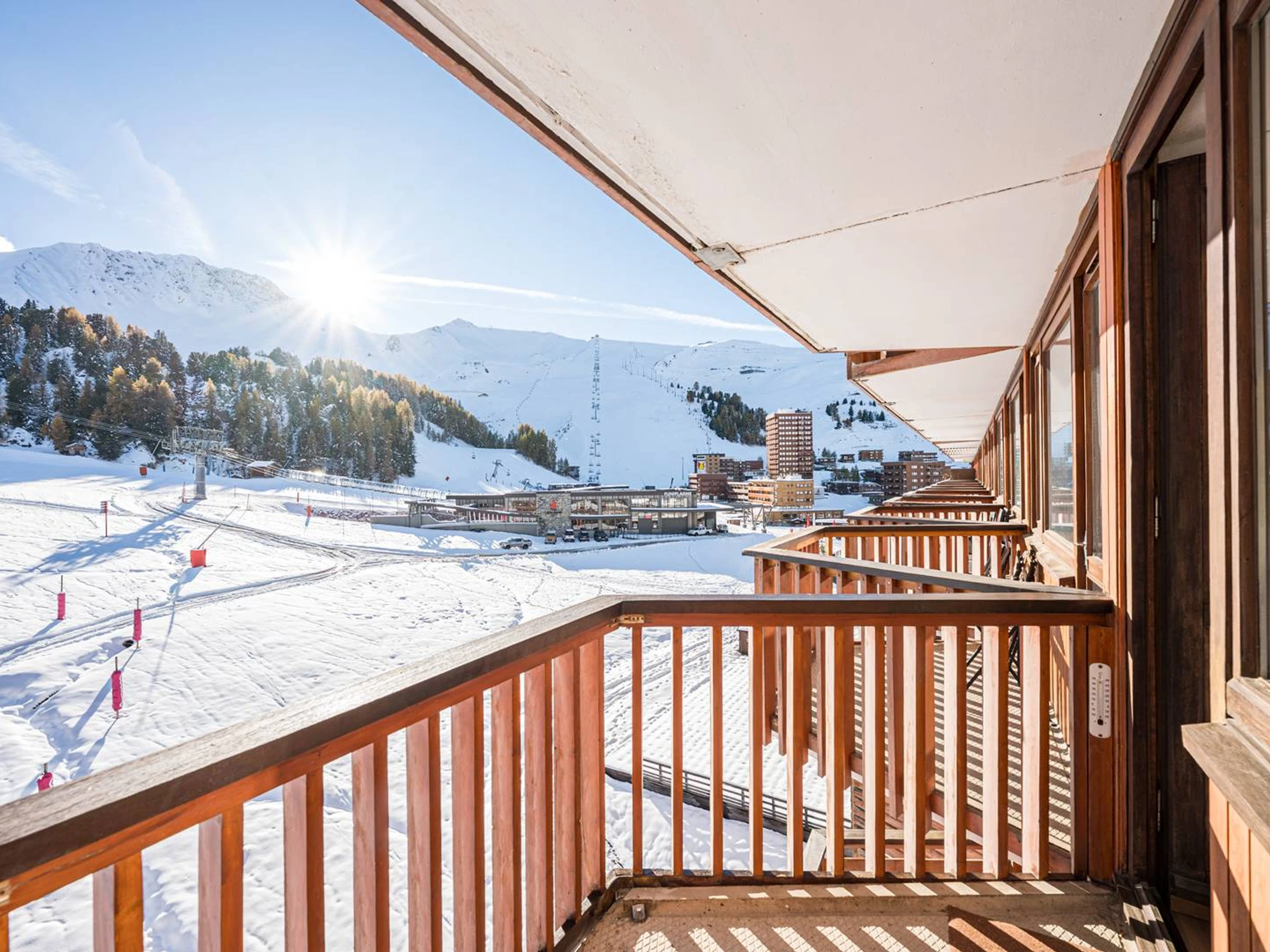 – Südbalkon mit freiem Blick auf die Pisten und Berge.