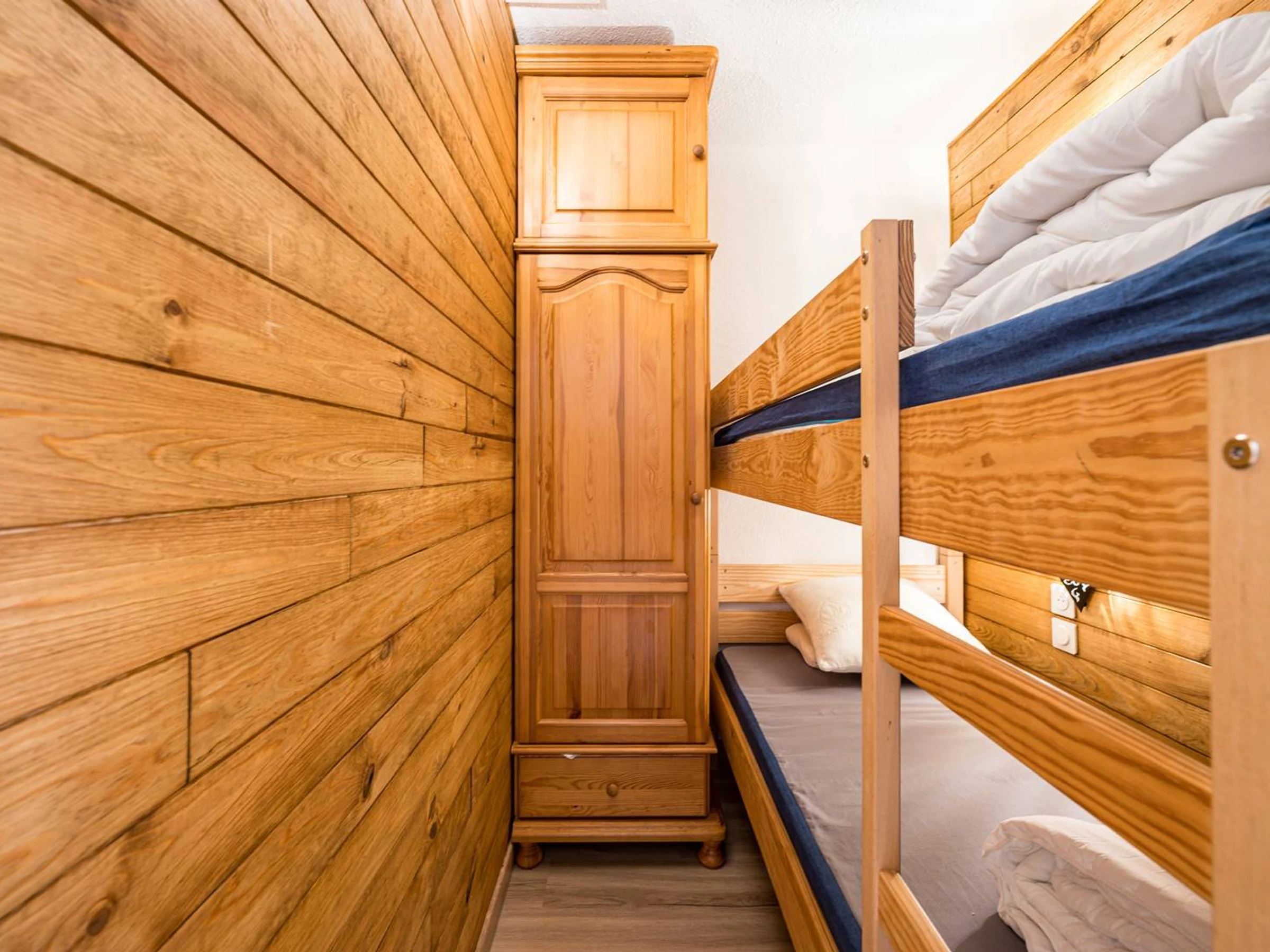 – Ein Schlafzimmer mit Etagenbett und Kleiderschrank.