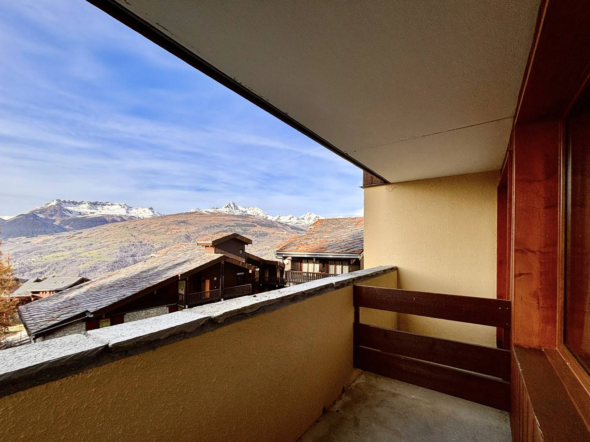 Der Balkon ist nach Nordwesten ausgerichtet und bietet Bergblick. Der Skiraum befindet sich im Gebäude.