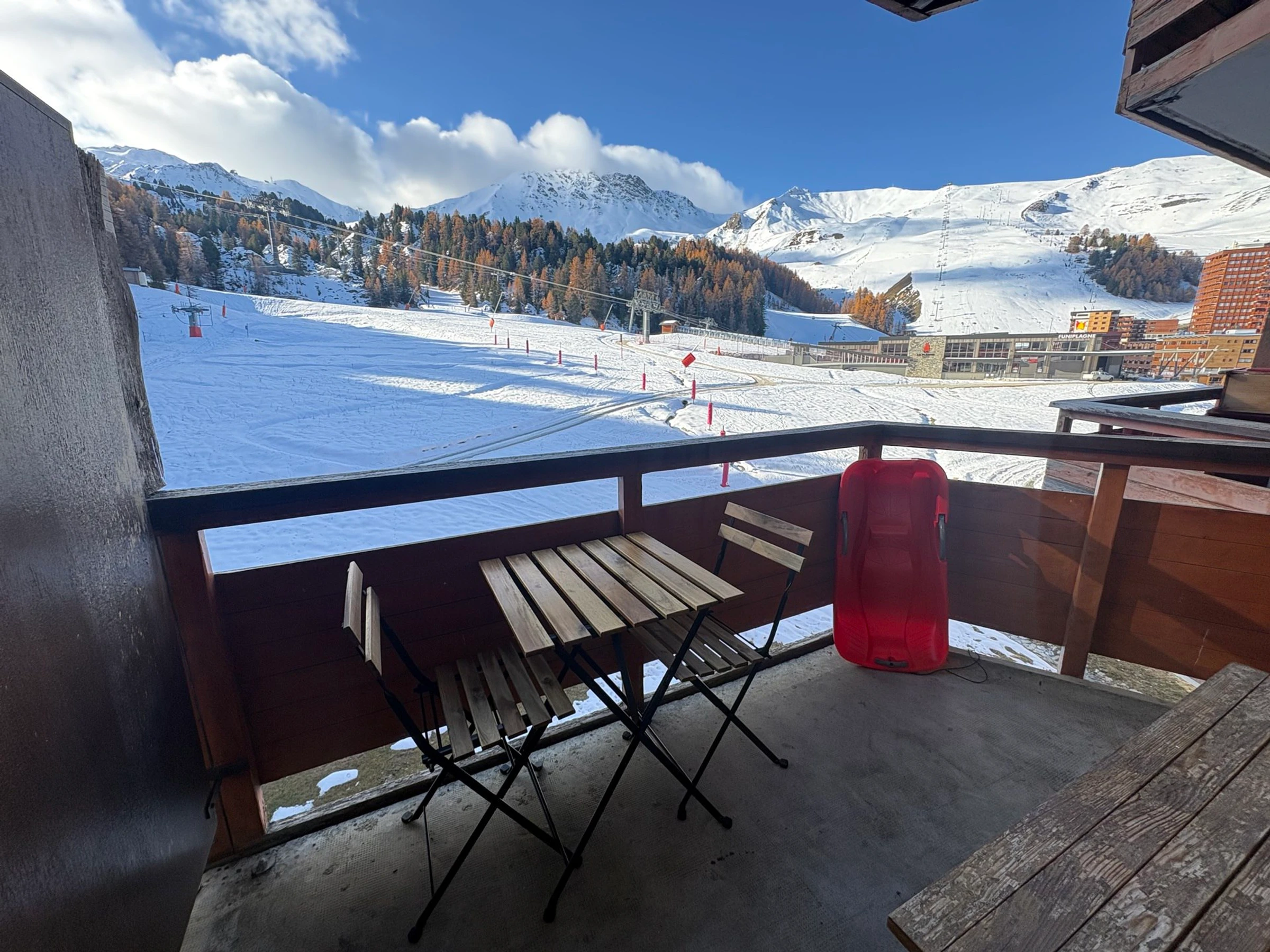 Studio-Apartment mit direktem Zugang zur Piste für 4 Personen, 22 m², im 3. Stock der Residenz Le France in Plagne Centre. Balkon mit Blick auf die Pisten.