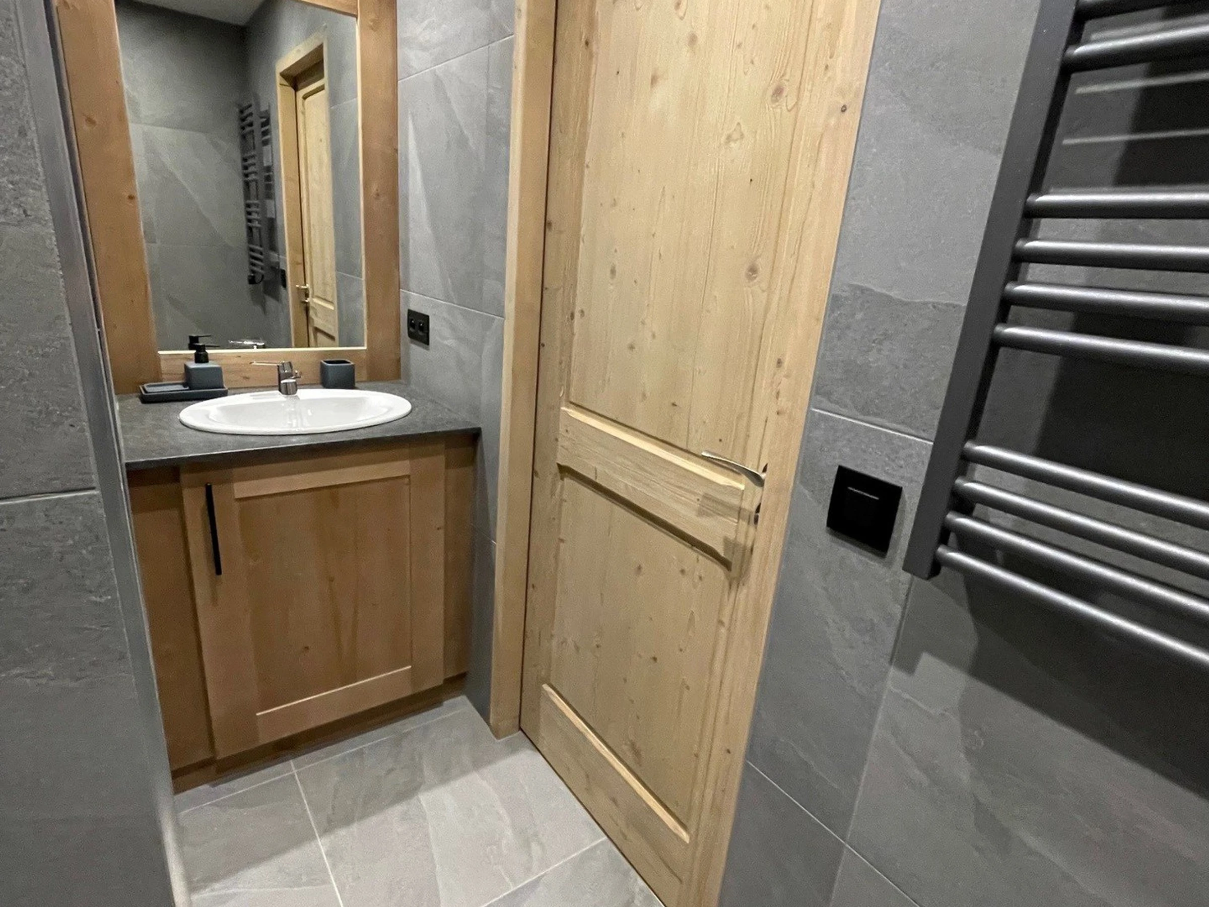 Sehr schönes Apartment (81 m²) im Flügel C der neuen Manaka Residence mit einer großen 26 m² großen Terrasse und herrlichem Blick auf die Berge und den Mont Blanc. Direkter Zugang zur Piste (blaue und rote Piste).