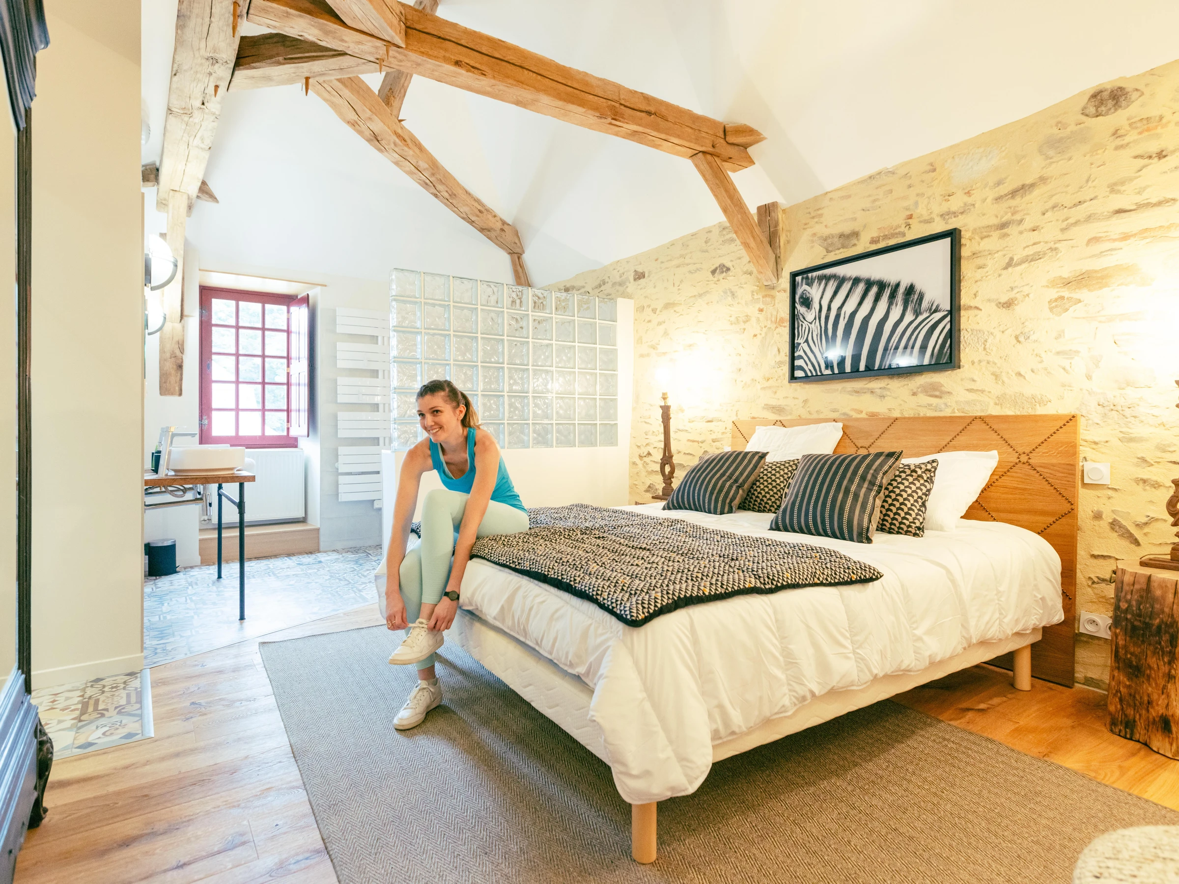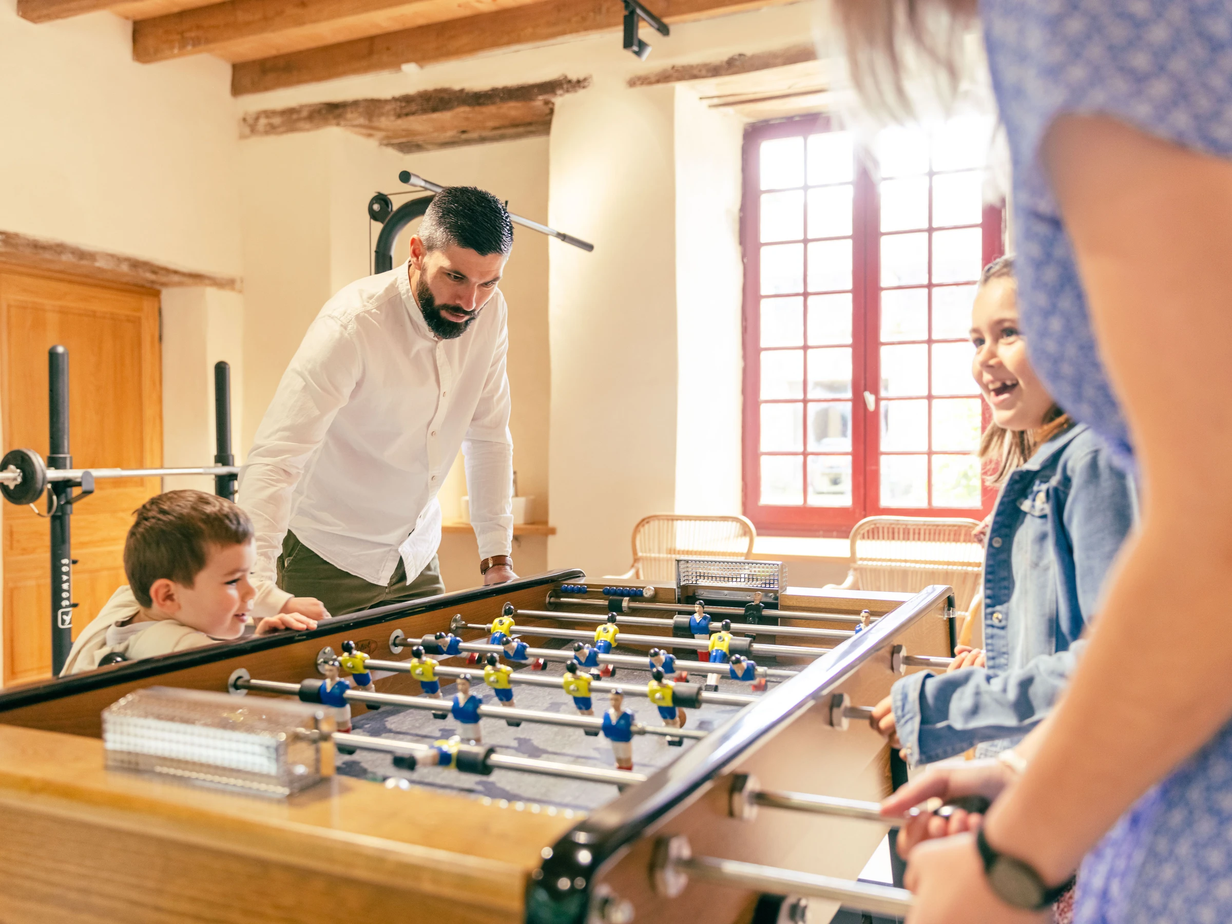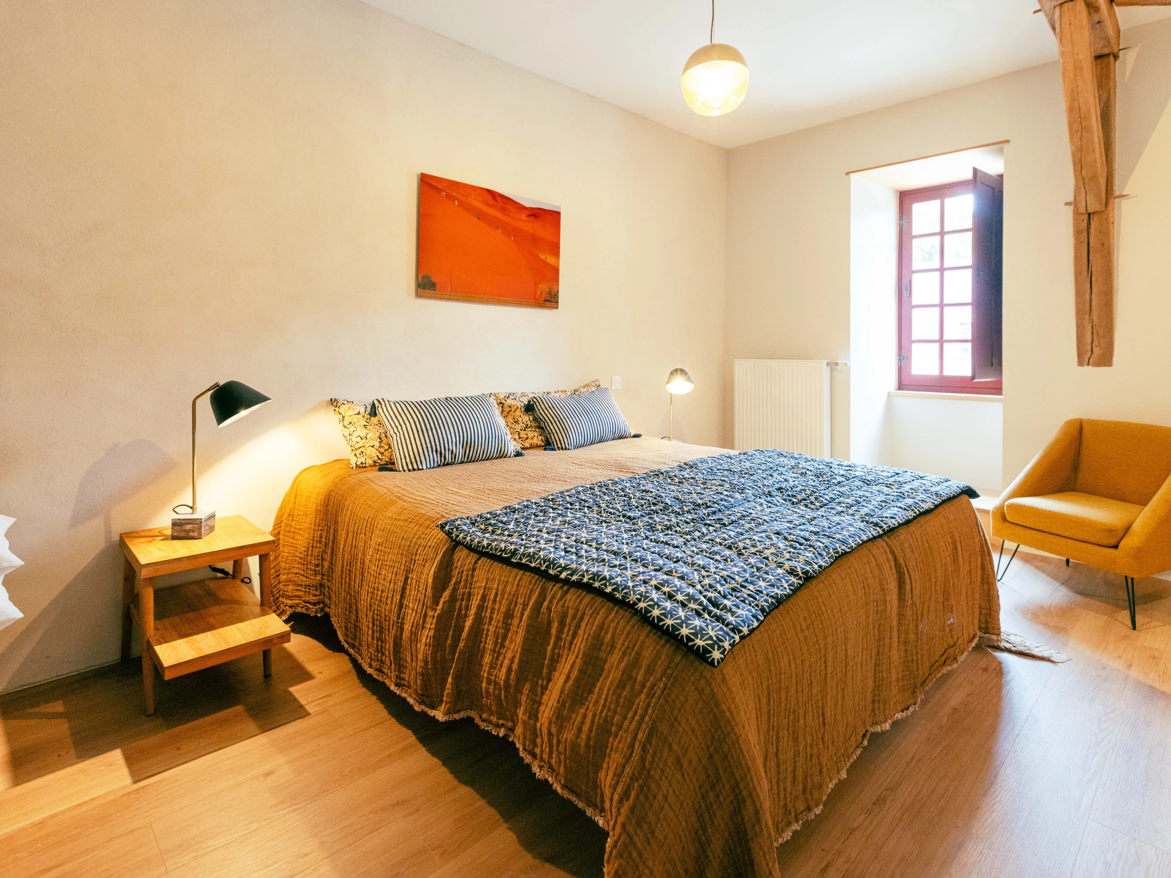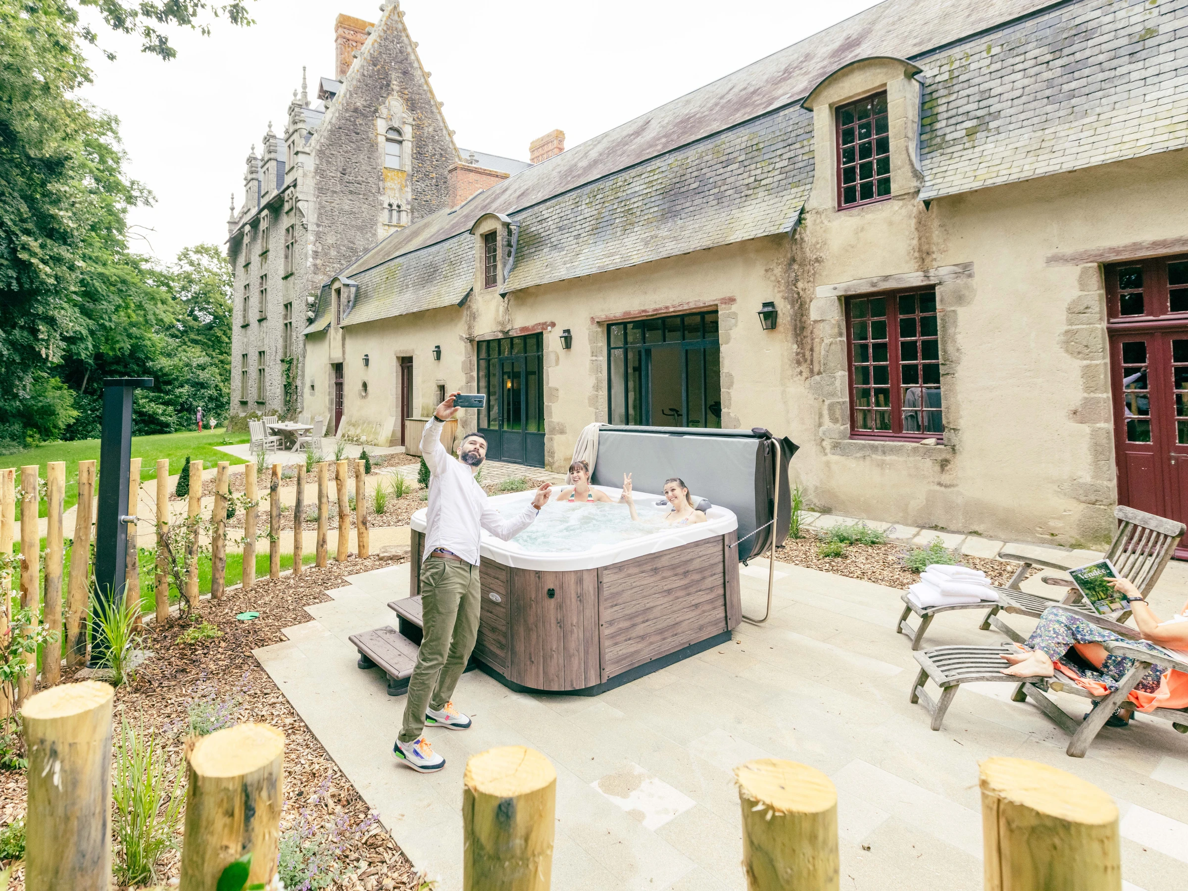 Ferienhaus für 10 Personen in einem Flügel des Schlosses (17. und 18. Jahrhundert) von La Rabatelière, das unter Denkmalschutz steht (ISMH). Im Erdgeschoss befinden sich ein Eingang, der zu einer Küche, einem Wohnzimmer (dekorativer Kamin), einer Toilette, einem Fitness-/Ruheraum mit Bad (Laufband, Heimtrainer, Kraftgerät, Sauna, Tischfußball), einem Schlafzimmer (1 Bett 180 cm) mit offenem Bad (Dusche und Badewanne) und Toilette sowie einer Waschküche führt. Im ersten Stock befinden sich ein Ruheraum (Fernseher, Billard, Schachtisch), 4 Schlafzimmer mit jeweils eigenem Bad (1 Bett 180 cm, Dusche, Badewanne, Toilette) (1 Bett 180 cm, Dusche, Badewanne, Toilette) (2 Einzelbetten 90 cm, Dusche) (2 Einzelbetten 90 cm, Dusche), eine separate Toilette. Draußen erwartet Sie ein angelegter, umzäunter Garten mit Terrasse (Gartenmöbel, Liegestühle, Grill) und Whirlpool für 5 Personen. Genießen Sie außerdem den 24 Hektar großen Schlosspark. Im Pauschalpreis inbegriffen: Heizung, Reinigung, Bettwäsche, Handtücher und Frühstückskorb.