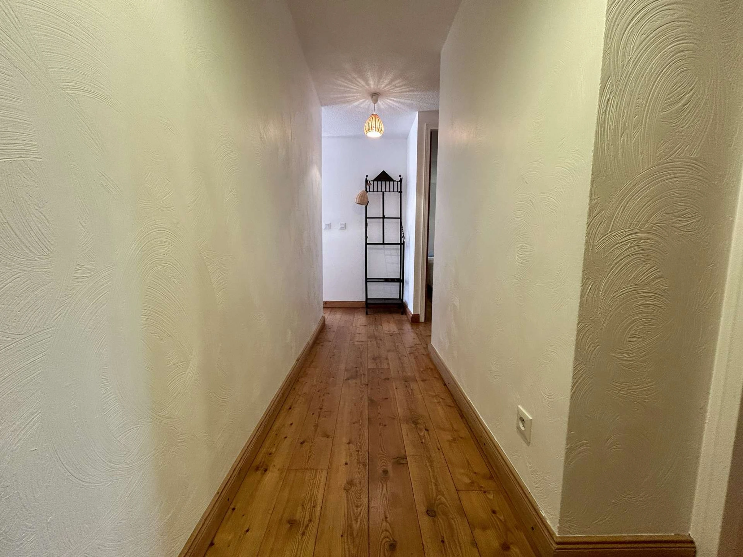 Gehen Sie im ersten Stock ohne Aufzug die ersten drei Stufen hinunter und dann eine ganze Etage.