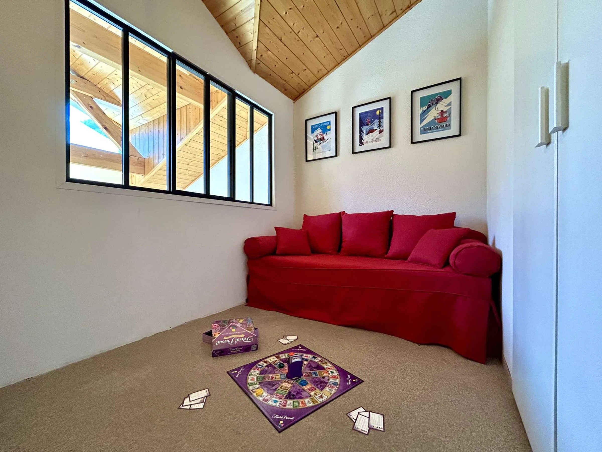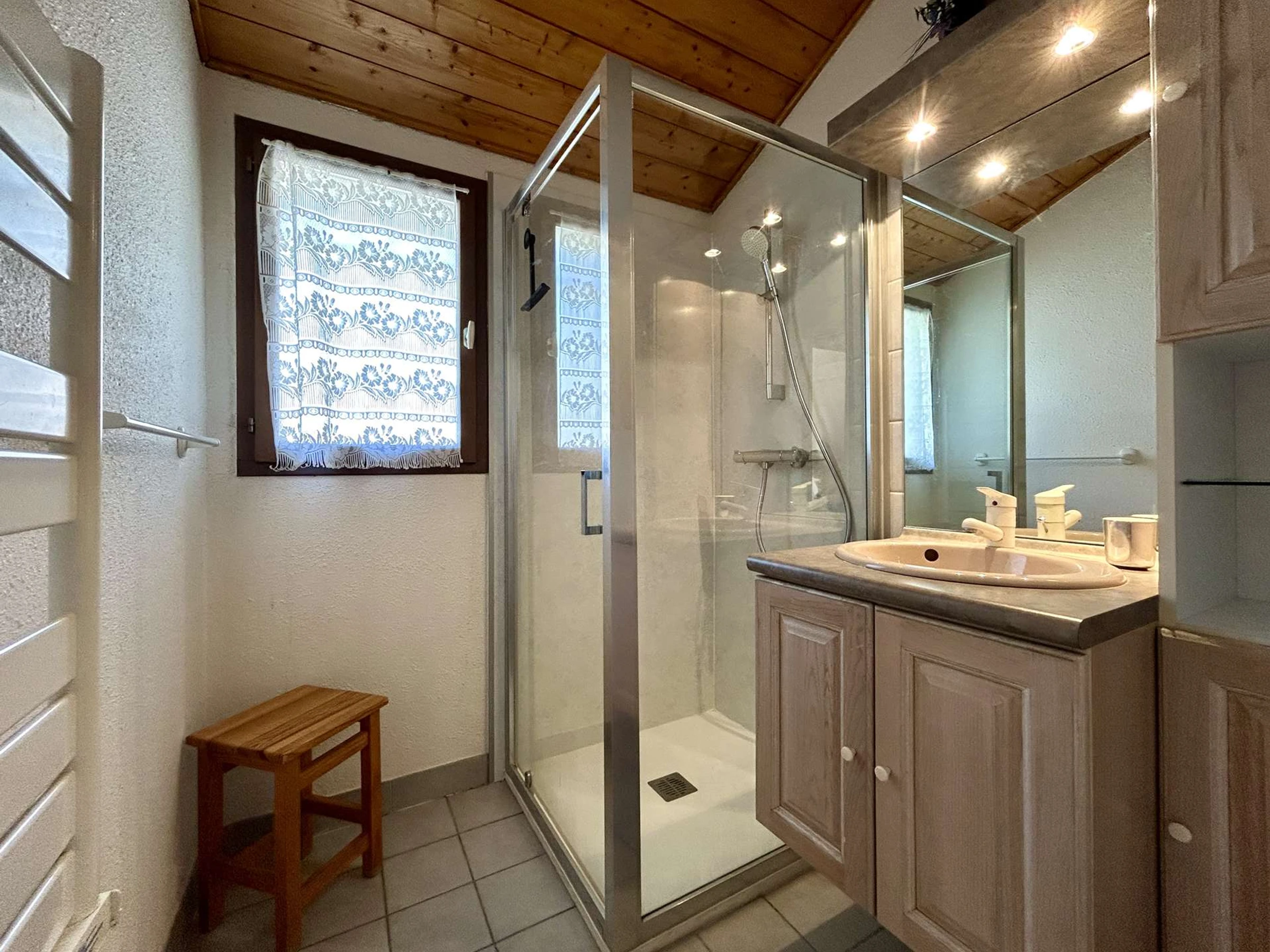 - Im Obergeschoss: geschlossenes Zwischengeschoss mit Schlafcouch, zwei Schlafzimmer mit Doppelbetten, zwei Badezimmer und separates WC.