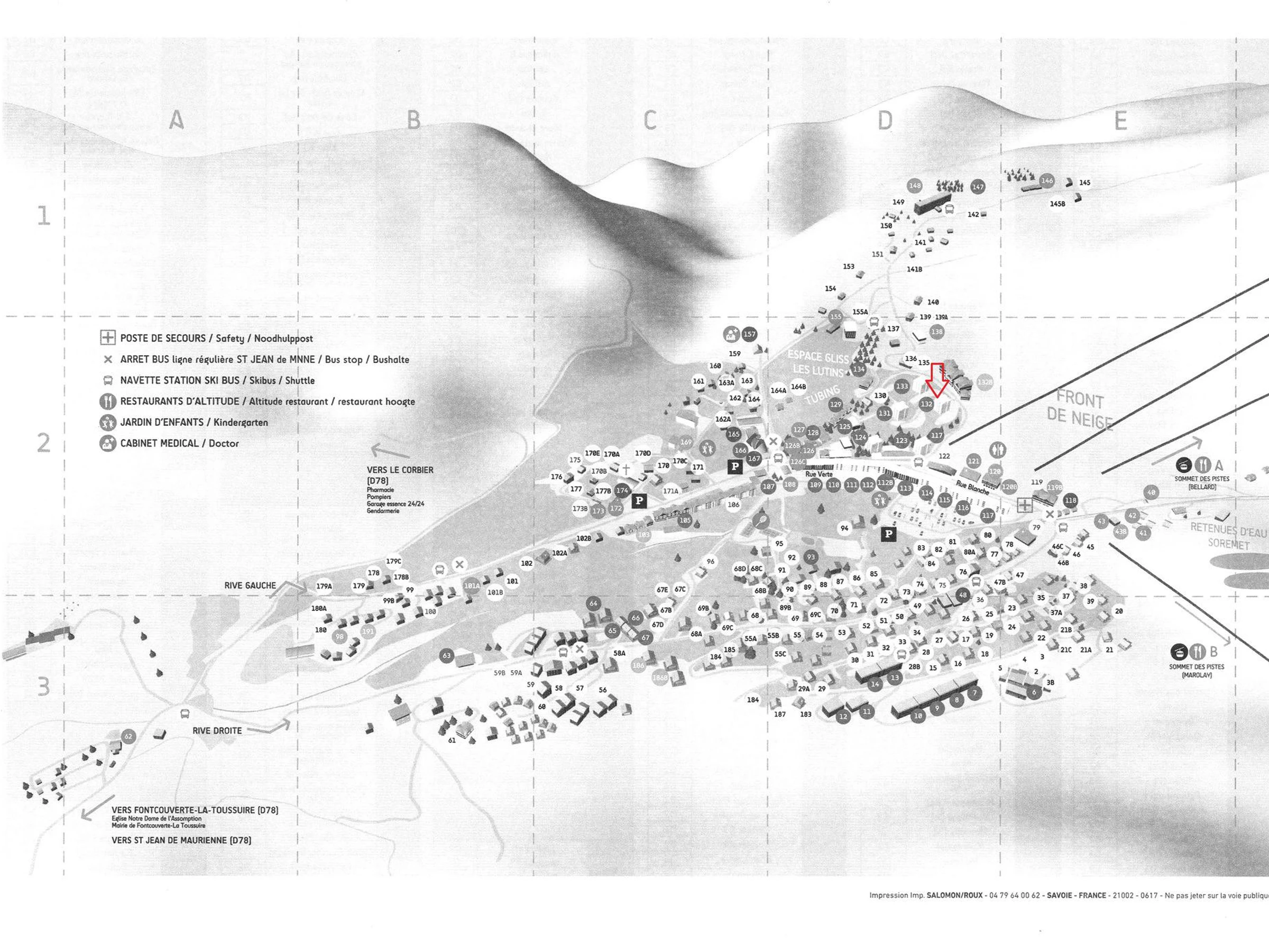 Es liegt in der Coq de Bruyère Residence, einem 7-stöckigen Gebäude mit 63 Apartments und Aufzug. Die Pisten sind 50 m, die Geschäfte 150 m entfernt. Apartment Nr. 136 auf dem Lageplan.