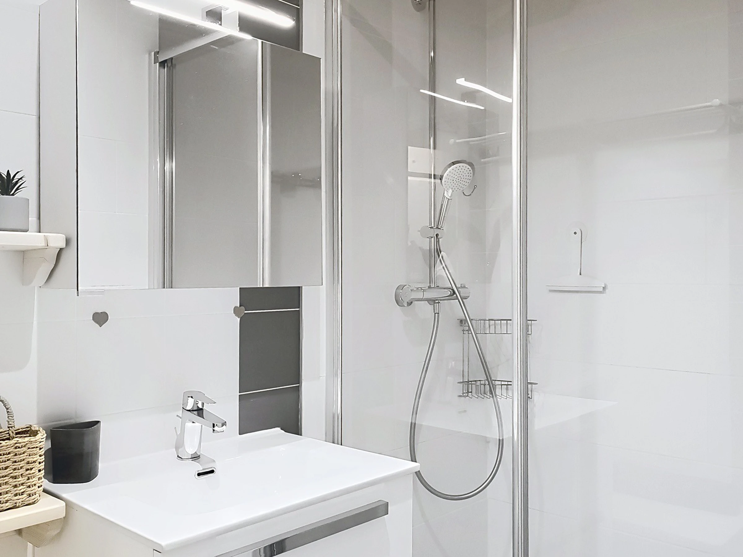 Sehr schöne 2-Zimmer-Wohnung im Bergstil, komfortabel und hell, mit Südbalkon, in einer Residenz im Bahnhofszentrum, über dem Einkaufszentrum, in der Nähe der Skipisten (Nr. 112 auf der Karte Station).