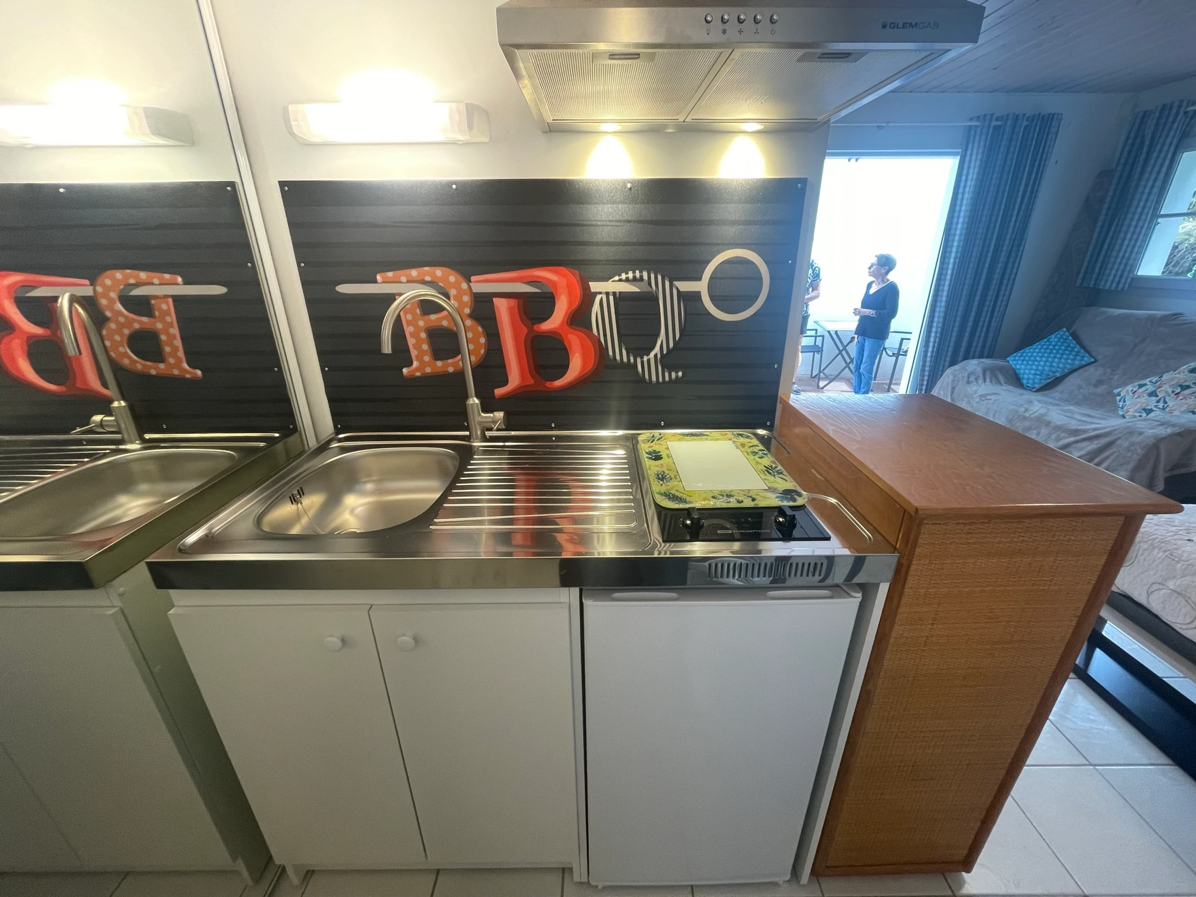 Dieses einstöckige Studio-Apartment in La Tranche-sur-Mer im Viertel Phare verfügt über ein Wohnzimmer mit TV, ein 160 cm breites Schrankbett und eine Küchenzeile mit Kühlschrank, Spüle, Induktionskochfeld, Kaffeemaschine und Mikrowelle. Das Badezimmer ist mit Badewanne, Waschbecken und Toilette ausgestattet. Geschlossener Innenhof mit Gartenmöbeln. Nicht-private Parkplätze stehen in der Sackgasse zur Verfügung.
