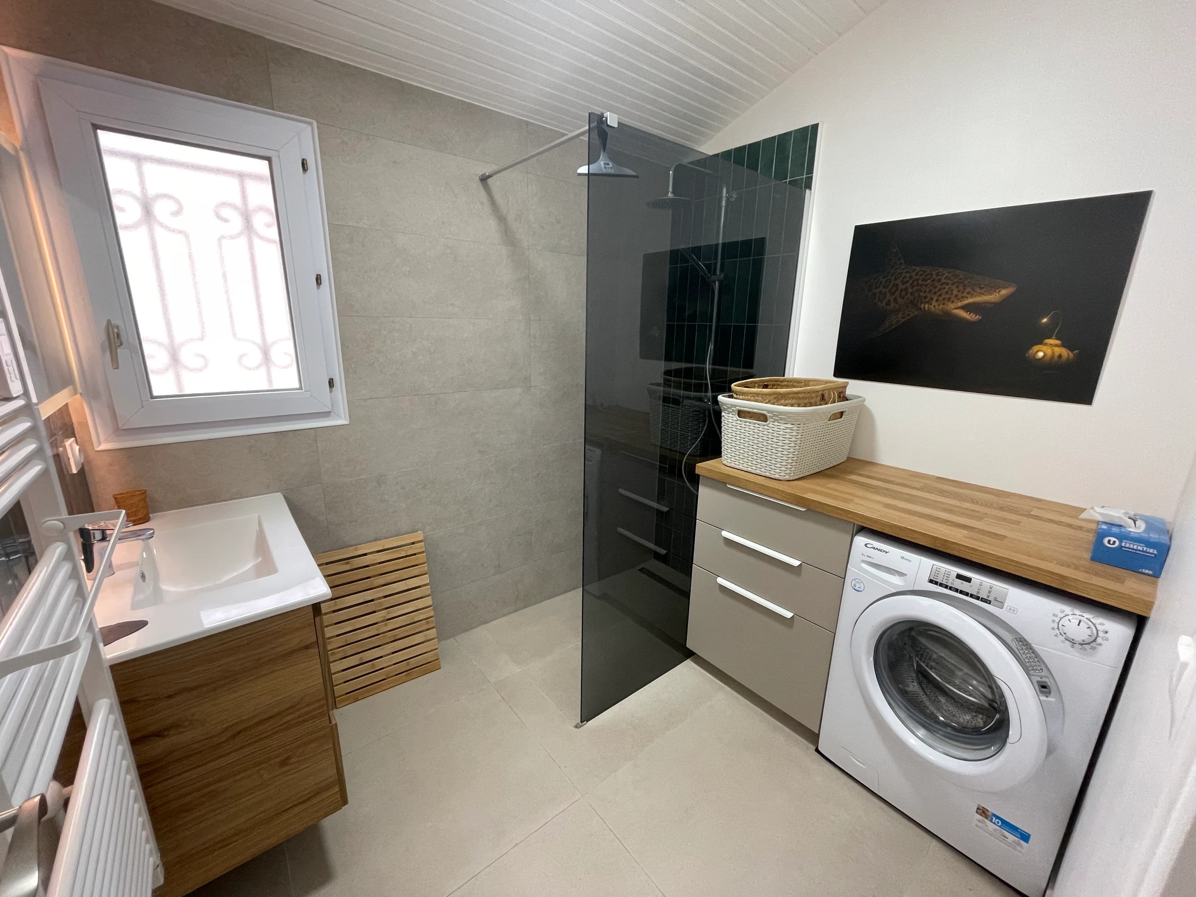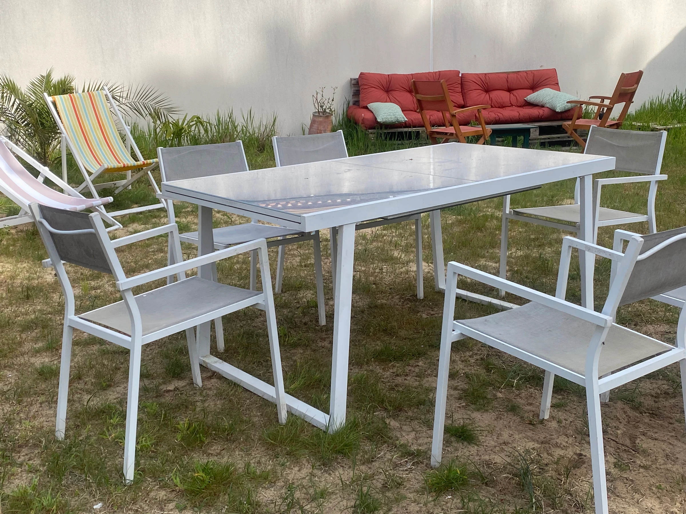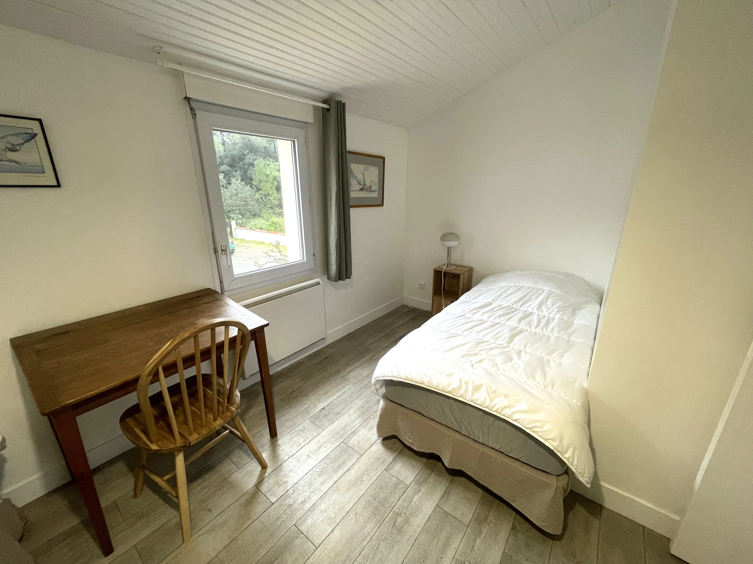 Die Villa La Tranche Sur Mer in Le Phare liegt in einer idyllischen Waldgegend und bietet einen schönen Außenbereich mit Gartenmöbeln. Ein Parkplatz ist vorhanden. Die Villa verfügt über eine voll ausgestattete Küche, ein Wohnzimmer, ein Schlafzimmer mit zwei Einzelbetten (90 cm), ein Schlafzimmer mit einem Doppelbett (160 cm), ein WC und ein Duschbad (Dusche, Waschbecken). Im Obergeschoss befinden sich ein weiteres Schlafzimmer mit drei Einzelbetten (80 cm) und ein Duschbad mit Dusche, Waschbecken und WC.