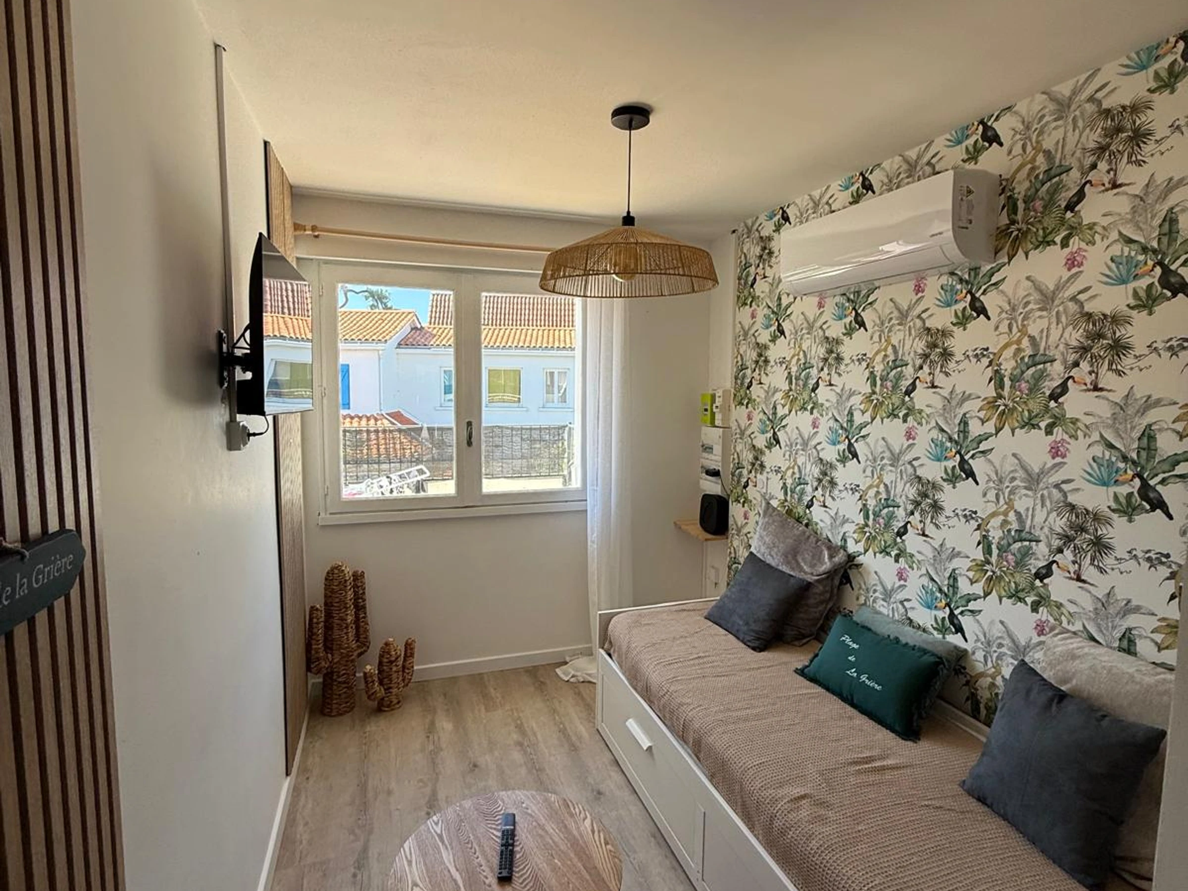 Charmantes, kürzlich renoviertes Einzimmer-Studio im Viertel La Grière von La Tranche-sur-Mer, ideal für Paare oder Alleinreisende. Das kleine Gebäude beherbergt im Erdgeschoss ein Geschäft und im Obergeschoss zwei Wohnungen, darunter dieses Studio mit einem Wohnbereich und Zugang zu einem Balkon (Gartenmöbel), einem separaten WC und einem Duschbad. Ein Parkplatz ist inklusive.