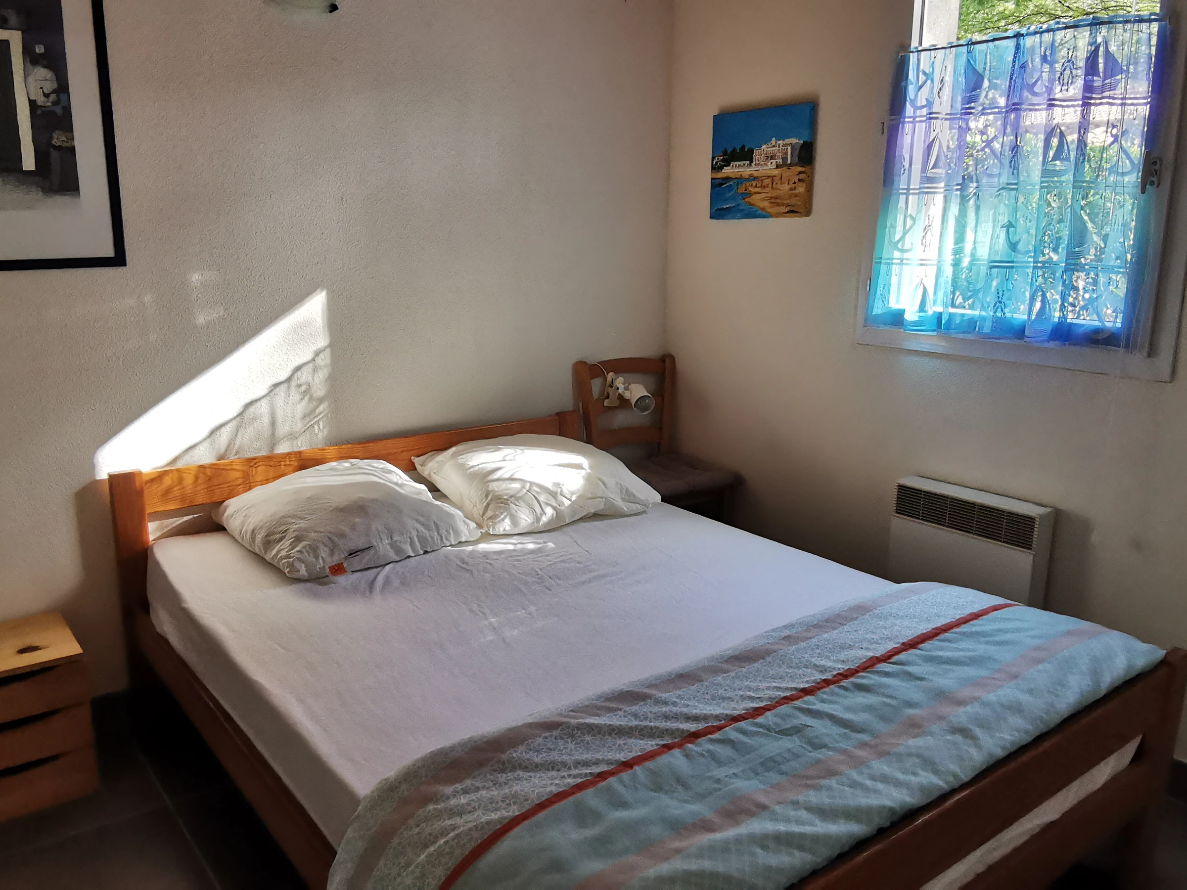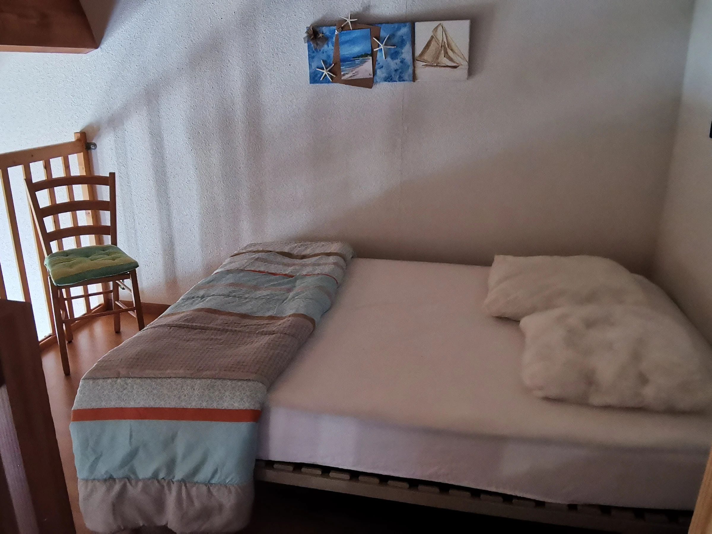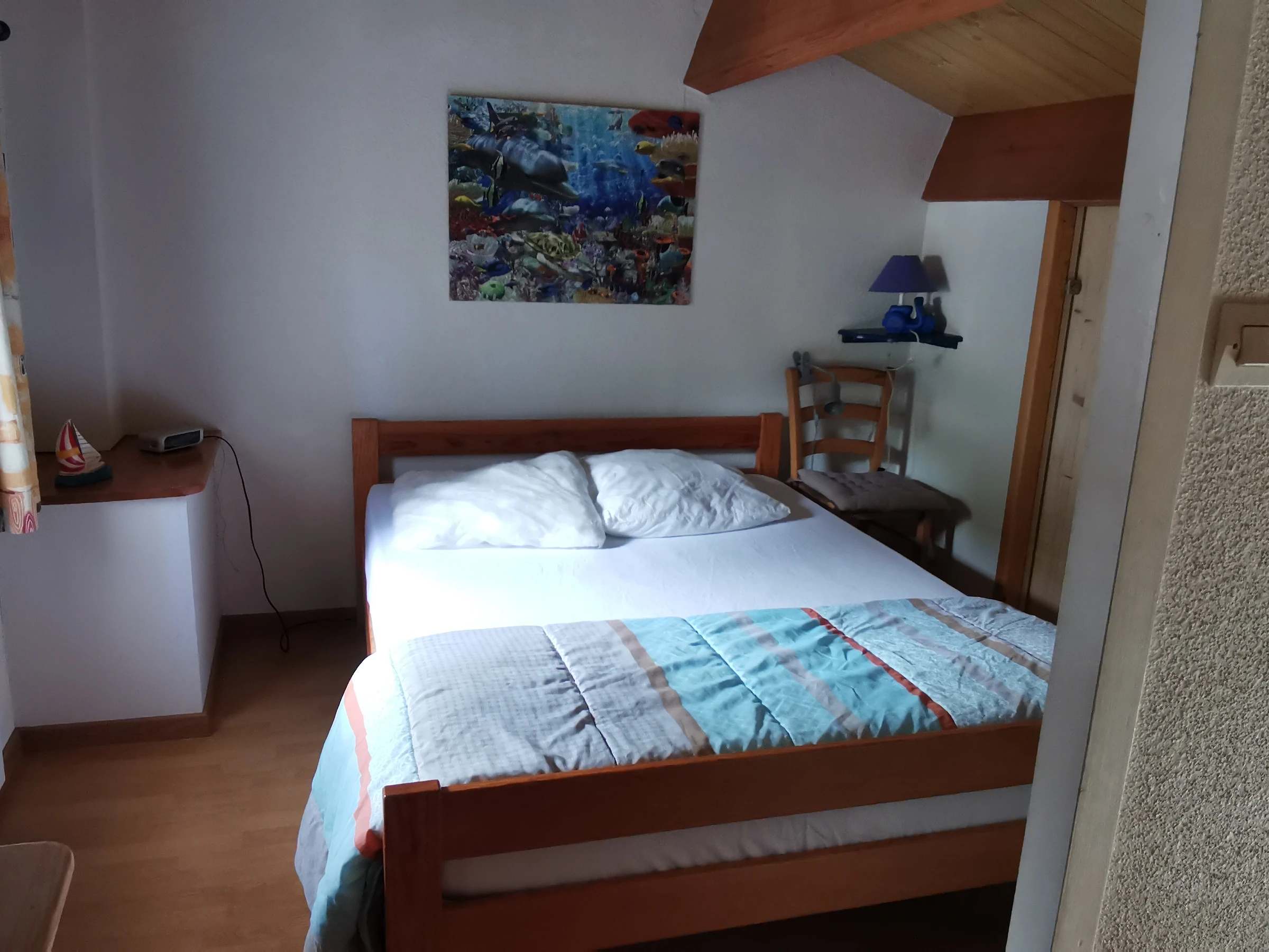 Ein Schlafzimmer mit einem Doppelbett (140 cm),