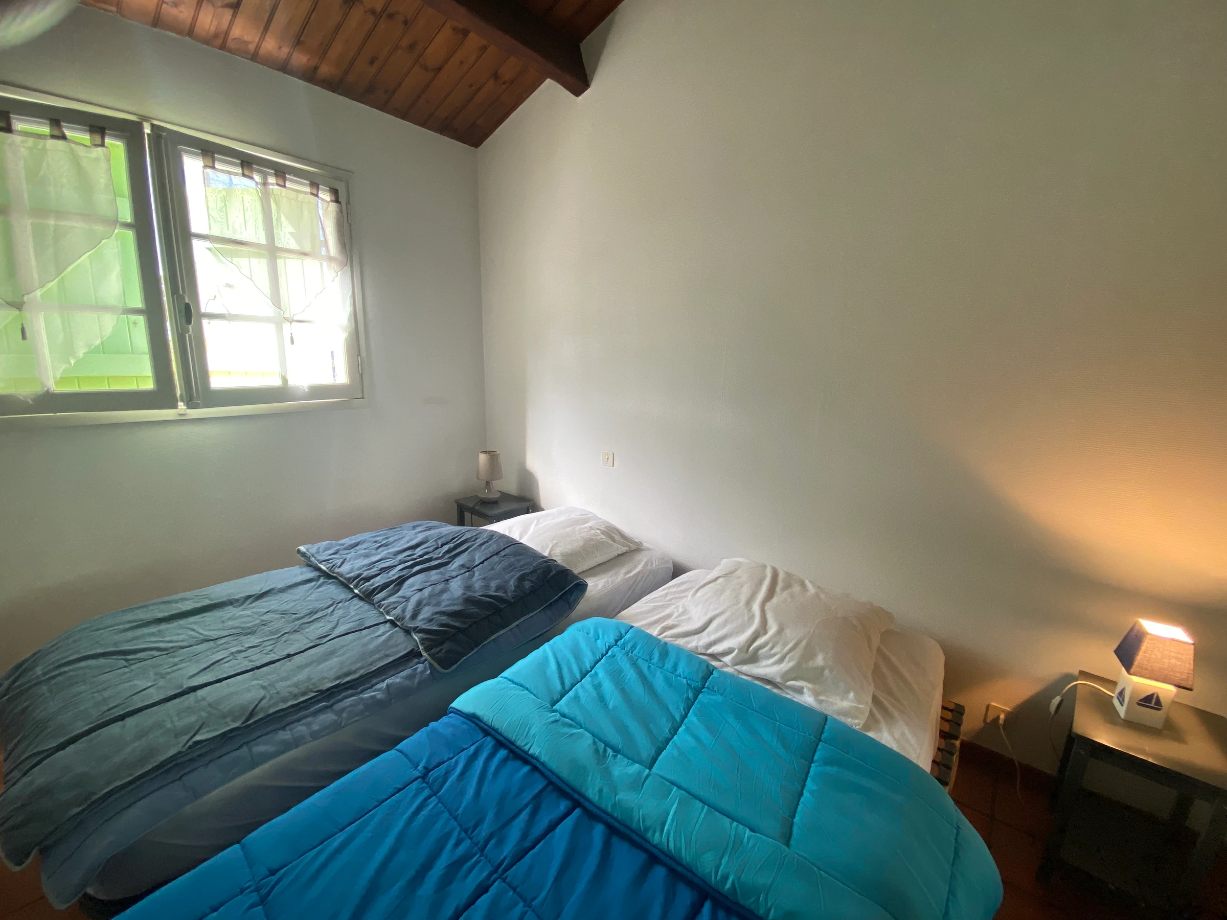 - Zwei Schlafzimmer, eines mit einem Doppelbett (dicke Matratze) und das andere mit zwei Einzelbetten (0,90 m).