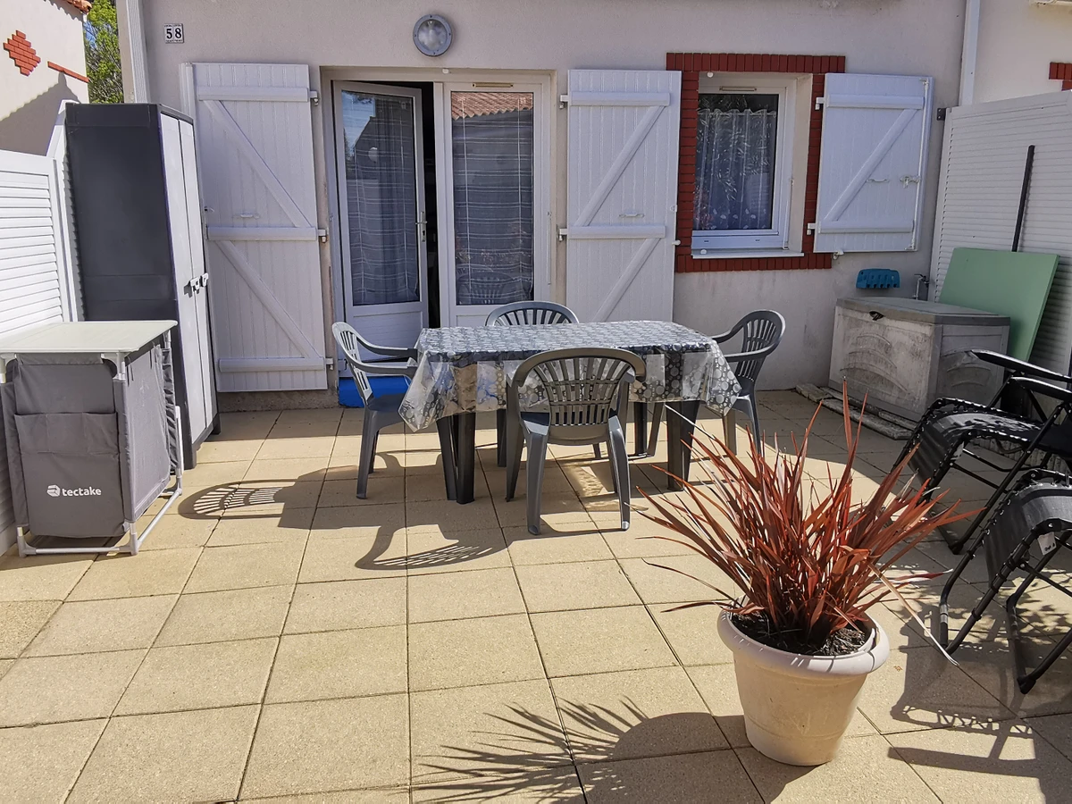 LA GRIERE-LA TRANCHE SUR MER. Reihenhaus auf einer Seite, für 4 Personen in einer Residenz mit unbeheiztem Gemeinschaftspool, 200 m vom Strand, 1,5 km von saisonalen Geschäften und 4 km vom Stadtzentrum von La Tranche sur Mer entfernt.