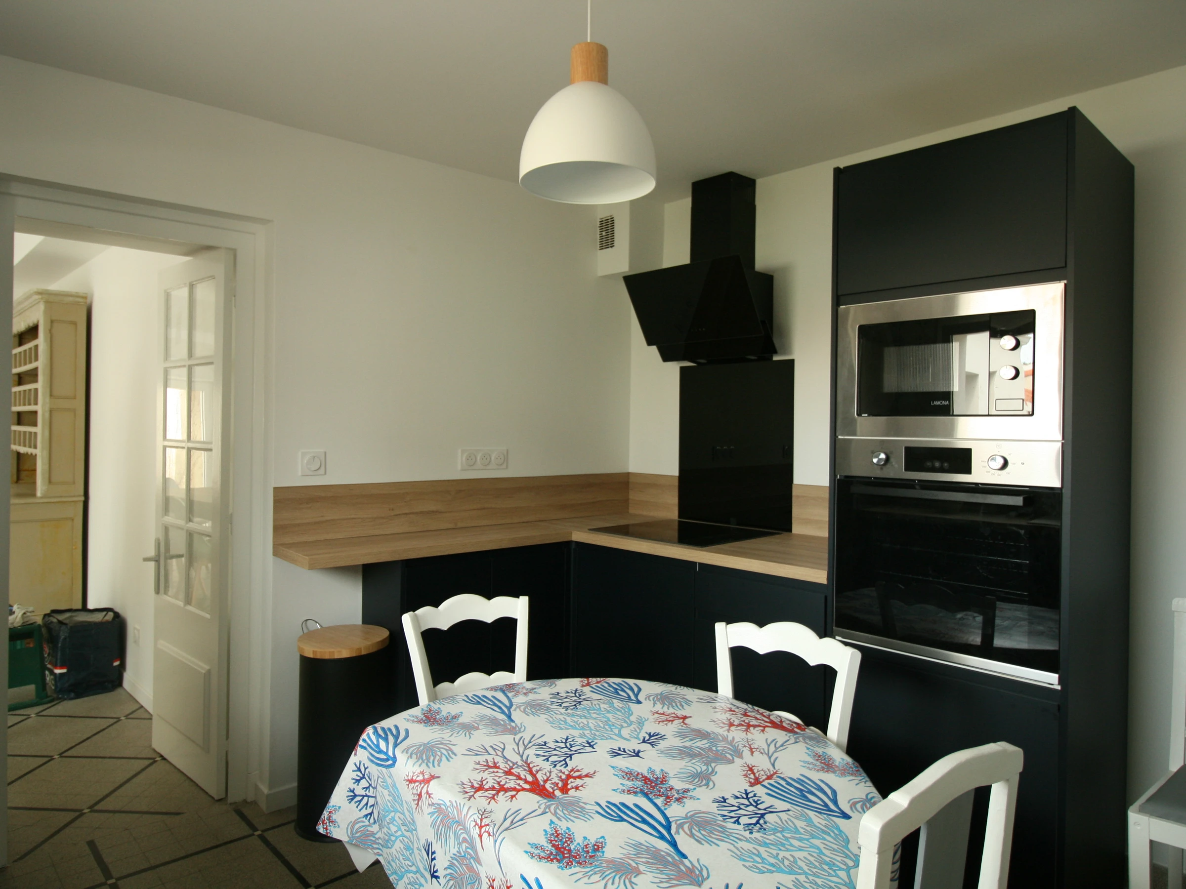 LA TRANCHE SUR MER, Stadtzentrum, sorgfältig renoviertes Landhaus, profitiert von einer außergewöhnlichen Lage in Strand- und Einkaufsnähe, mit geschlossenem Stellplatz für 2 Autos. Ein schönes Wohnzimmer von ca. 40 m2. 1 separate Küche – ausgestattetes Labor, 1 Schlafzimmer mit 1 160 cm breitem Bett und dazugehörigem Badezimmer (Dusche, Waschbecken, Toilette). und 1 Schlafzimmer mit 2 0,90-Betten. Die Zimmer liegen in einer Reihe, verfügen jedoch über einen unabhängigen Zugang. Ein Badezimmer mit Badewanne, Waschbecken und separater Toilette. eine Südterrasse und eine zweite im Norden, jeweils mit Gartenmöbeln.