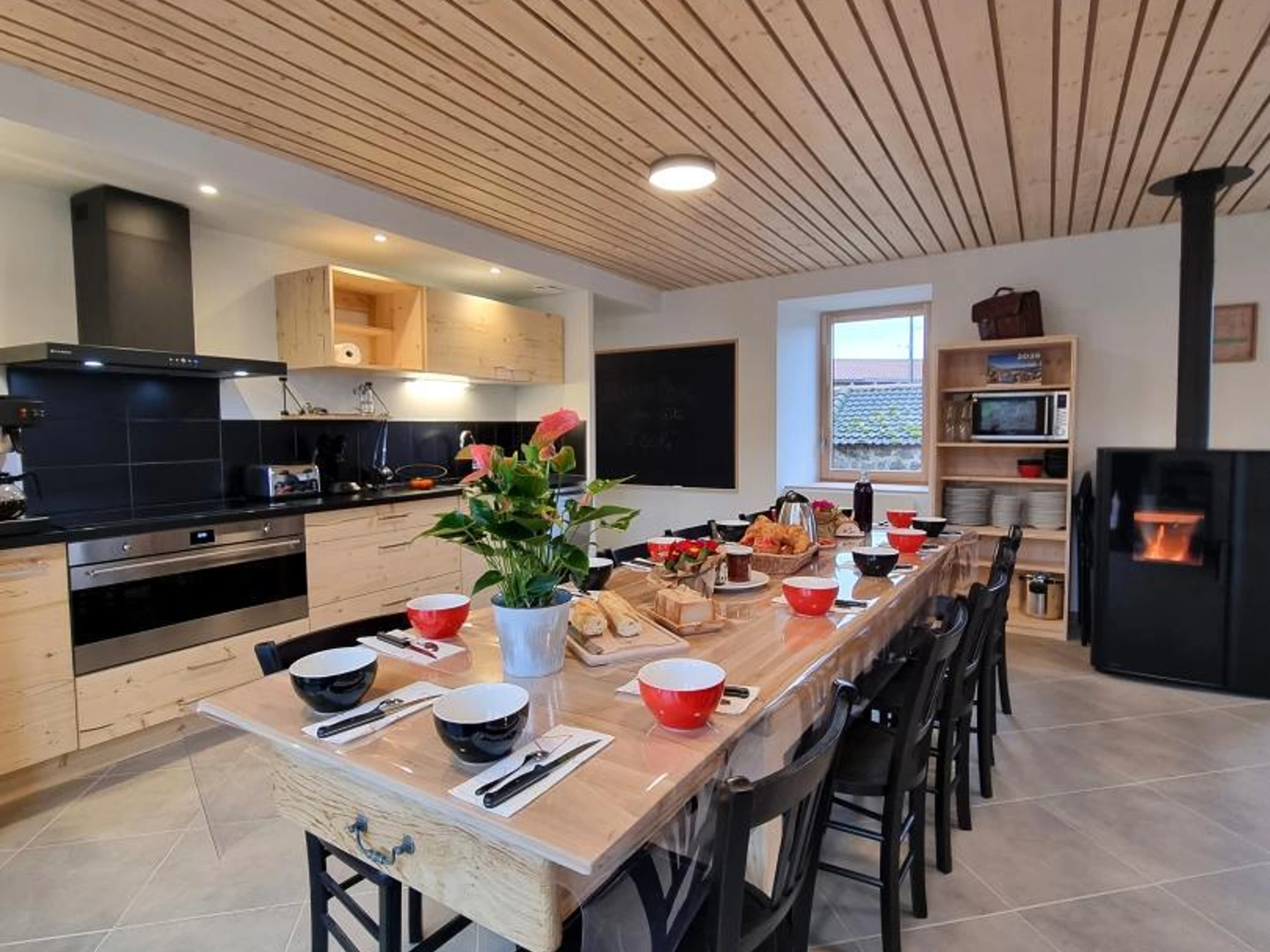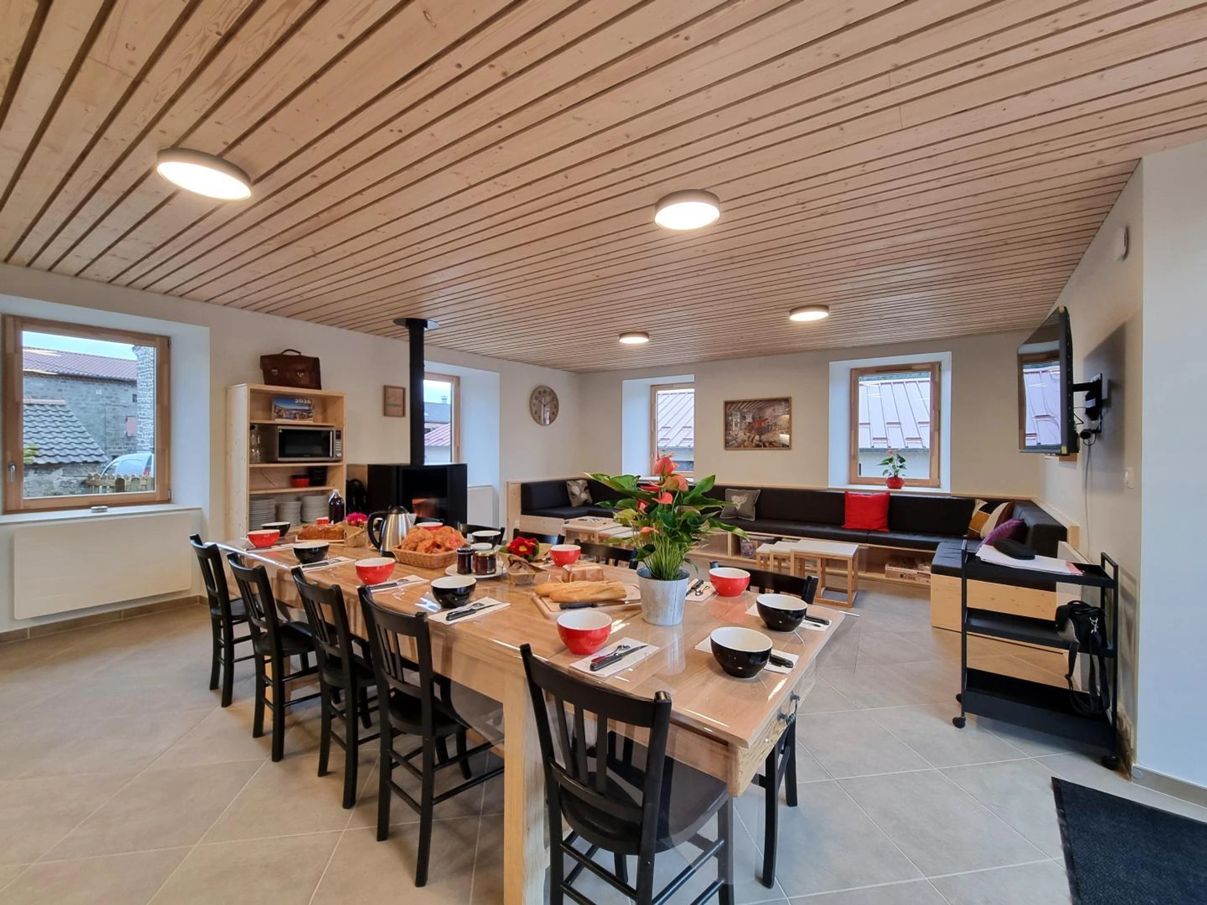 Entdecken Sie dieses ideale Ferienhaus für 10–14 Personen! Auf drei Ebenen und mit 160 m² Wohnfläche lädt dieses komplett renovierte Ferienhaus zu einem komfortablen und geselligen Aufenthalt ein. Im Erdgeschoss befindet sich ein großer, heller Wohnbereich mit voll ausgestatteter Küche, Essbereich und Wohnzimmer, der sich auf eine 20 m² große Holzterrasse erstreckt – perfekt zum Essen im Freien und Entspannen. Die oberen Etagen bieten verschiedene Bereiche zum Entspannen, Lesen oder Spielen für Kinder sowie fünf komfortable Schlafzimmer (drei Doppelbetten 140 x 200 cm und vier Einzelbetten 90 x 200 cm). Die beiden Wohnzimmer im Obergeschoss verfügen jeweils über ein Schlafsofa, das bei Bedarf als zusätzliches Bett genutzt werden kann. Drei Badezimmer und drei separate WCs erleichtern den Alltag. Dieses Ferienhaus vereint Großzügigkeit, Funktionalität und Komfort für einen gelungenen Urlaub mit Familie oder Freunden. Nebenkosten und Heizung sind inklusive, und die Betten sind bei Ihrer Ankunft bezogen! Ein Ferienhaus mit Wandermöglichkeiten und vielen Outdoor-Aktivitäten in La Versanne an der Loire! Im Herzen des Pilat-Gebirges, im Weiler Les Préaux, bietet das Ferienhaus eine privilegierte Lage für Naturliebhaber und Erholungssuchende. Vom Dorf aus sind zahlreiche Wander- und Mountainbike-Strecken erreichbar, die herrliche Panoramablicke auf die unberührte Landschaft des Gebirges bieten. Nur 10 km entfernt lockt das Langlaufgebiet Le Bessat – Les Grands Bois mit 35 km präparierten und sicheren Loipen, die ab dem ersten Schnee befahrbar sind. Zu jeder Jahreszeit offenbart das Pilat-Gebirge eine authentische Lebensart, die lokales Erbe, charmante Dörfer und vielfältige Outdoor-Aktivitäten vereint. Ein ideales Reiseziel, um sich im Herzen der Region Auvergne-Rhône-Alpes auf das Wesentliche zu besinnen.
