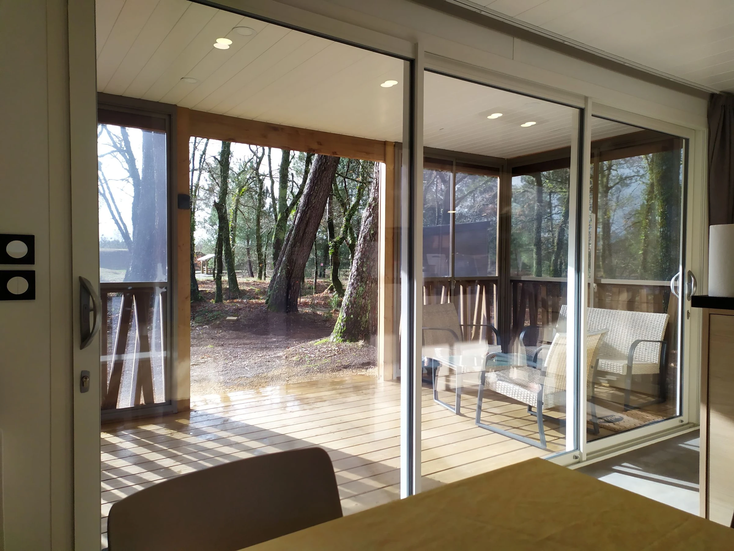 Beschreibung: Chalet (49 m² + 12 m² Terrasse), 50 m vom Gemeinschaftspool entfernt.