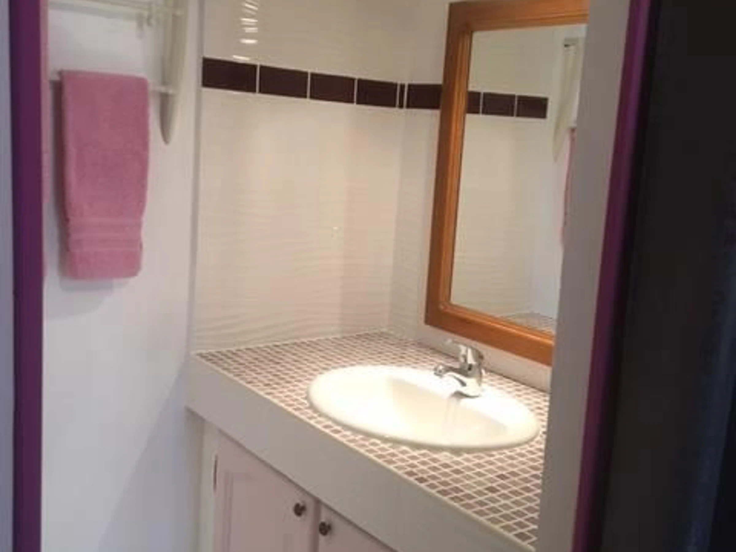Privater, umzäunter Garten (80 m²) mit Terrasse, angrenzend an den Garten der Eigentümer. Parkplatz. Stromkosten inklusive. Bettwäsche und Handtücher werden gestellt.