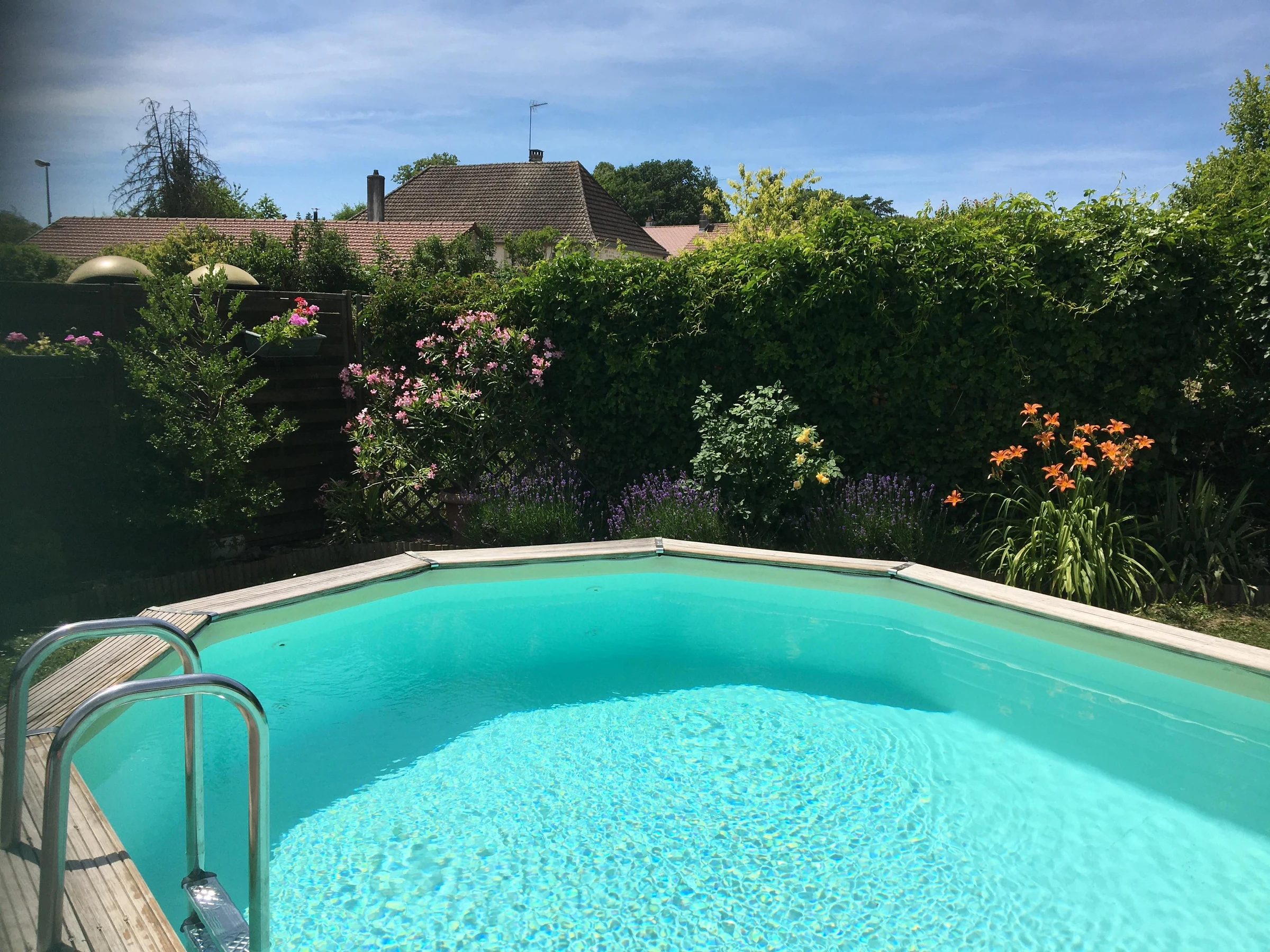 Mitbenutzung mit dem Eigentümer: Ein halb eingelassener Holzpool (7 x 4 m), geöffnet von Mai bis September und umzäunt.