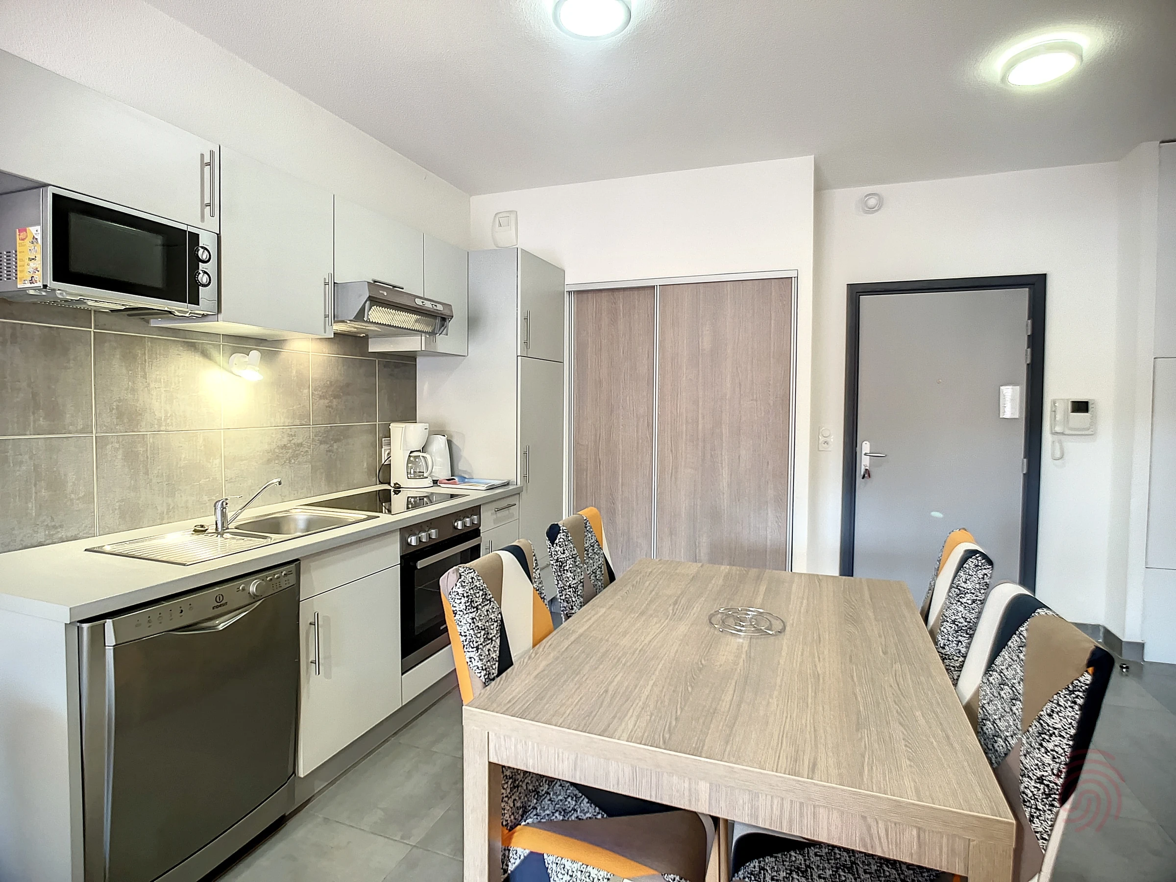 Sehr schöne, klimatisierte Ein-Zimmer-Wohnung mit 51 m² in einer neuen Residenz im vierten Stock mit Aufzug und privatem Außenparkplatz. Eine Terrasse mit Gartentisch und -stühlen sowie einer Sonnenliege in Nordostausrichtung mit Blick auf das Casino Lamalou. Es liegt 50 Meter vom Stadtzentrum und den Thermen entfernt. Eine Einbauküche ausgestattet mit Kühl-/Gefrierschrank, Backofen, Mikrowelle, 4-Flammen-Induktionskochfeld, Dunstabzugshaube, Geschirrspüler und Filterkaffeemaschine. Von der Küche gelangt man in einen Hauptraum mit Schlafsofa und Flachbildfernseher. Ein separates Schlafzimmer mit 2 90 cm breiten Betten, einer Kommode und einem Abstellschrank. Ein Badezimmer mit ebenerdiger Dusche, Waschbecken, Haartrockner und separater Toilette. In der Residenz gibt es einen Waschraum mit einer Waschmaschine. WLAN in der Unterkunft. TIERE AKZEPTIERT. Auf Anfrage und nach Verfügbarkeit kann ein Baby-Reisebett zur Verfügung gestellt werden.