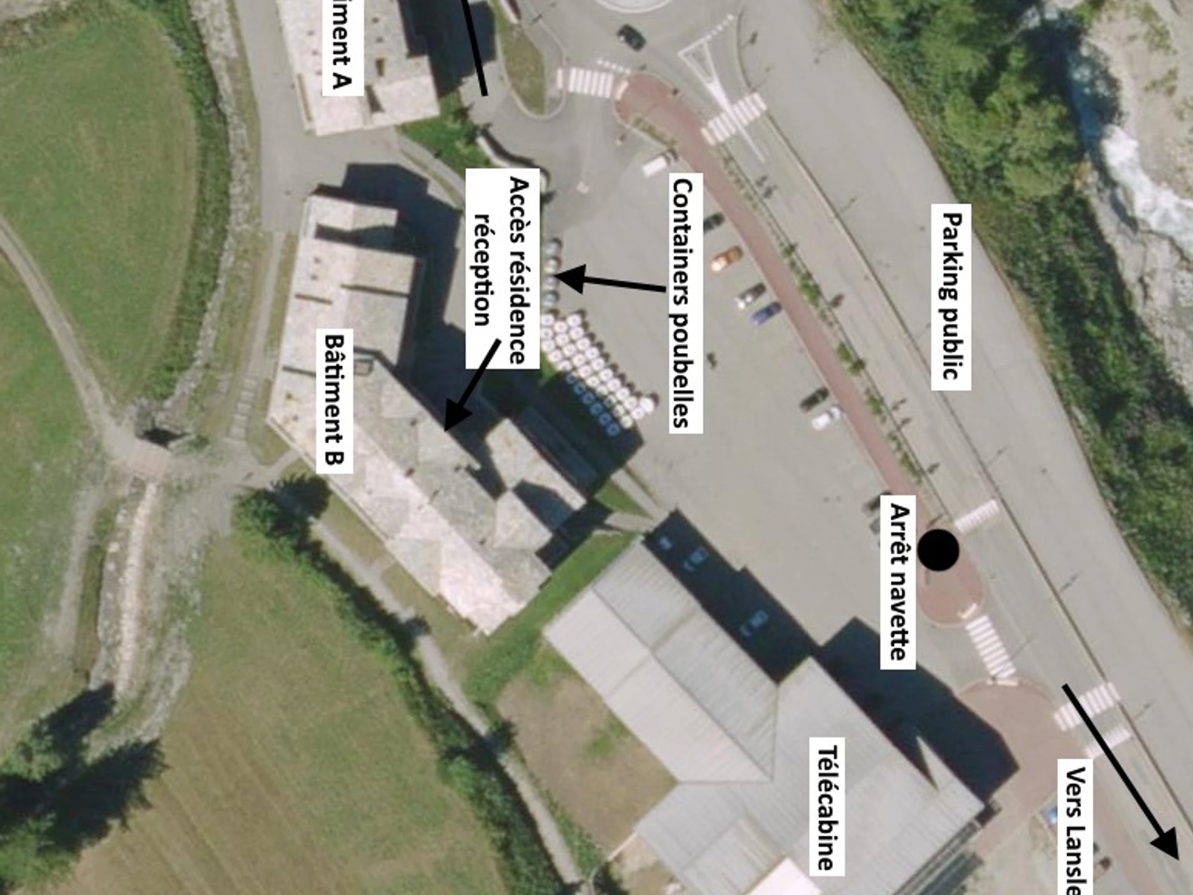 Die 2007 erbaute Résidence „Le Bonheur des pistes“ liegt neben der Gondelbahn „Vieux moulin“ mit Abfahrt und Rückfahrt zu den Pisten vor der Residenz. Es liegt in der Nähe der Skischule.