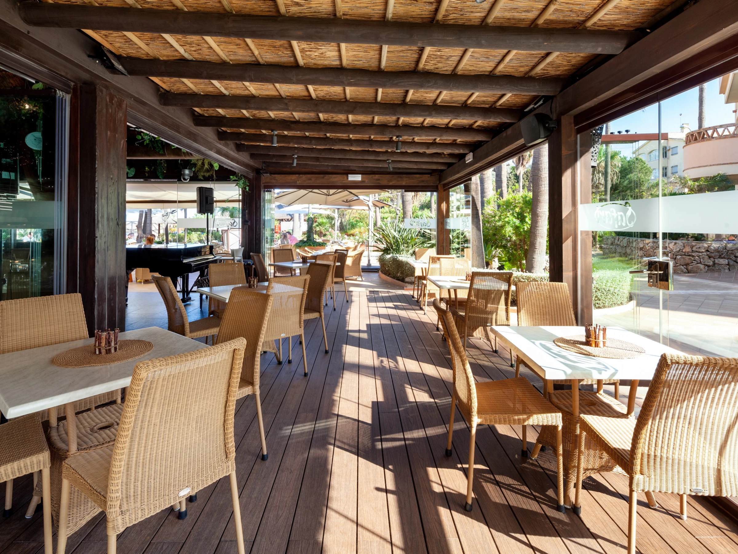 Die Unterkunft verfügt über garten, gartenmöbel, umzäuntes grundstück, 15 m² terrasse, waschmaschine, bügeleisen/-brett, safe, internet (WLAN), haartrockner, kinderbereich, tennisplatz, tischtennisplatte, alarm, heizung, klimaanlage, swimming-pool gemeinschaftlicher swimming pool + kinderbecken, klimatisierter pool gemeinschaftlicher swimming-pool, parkplatz im freien in in grundstücksnähe, 2 Fernsehgeräte, sat-tv (Sprachen: Spanisch), radio.