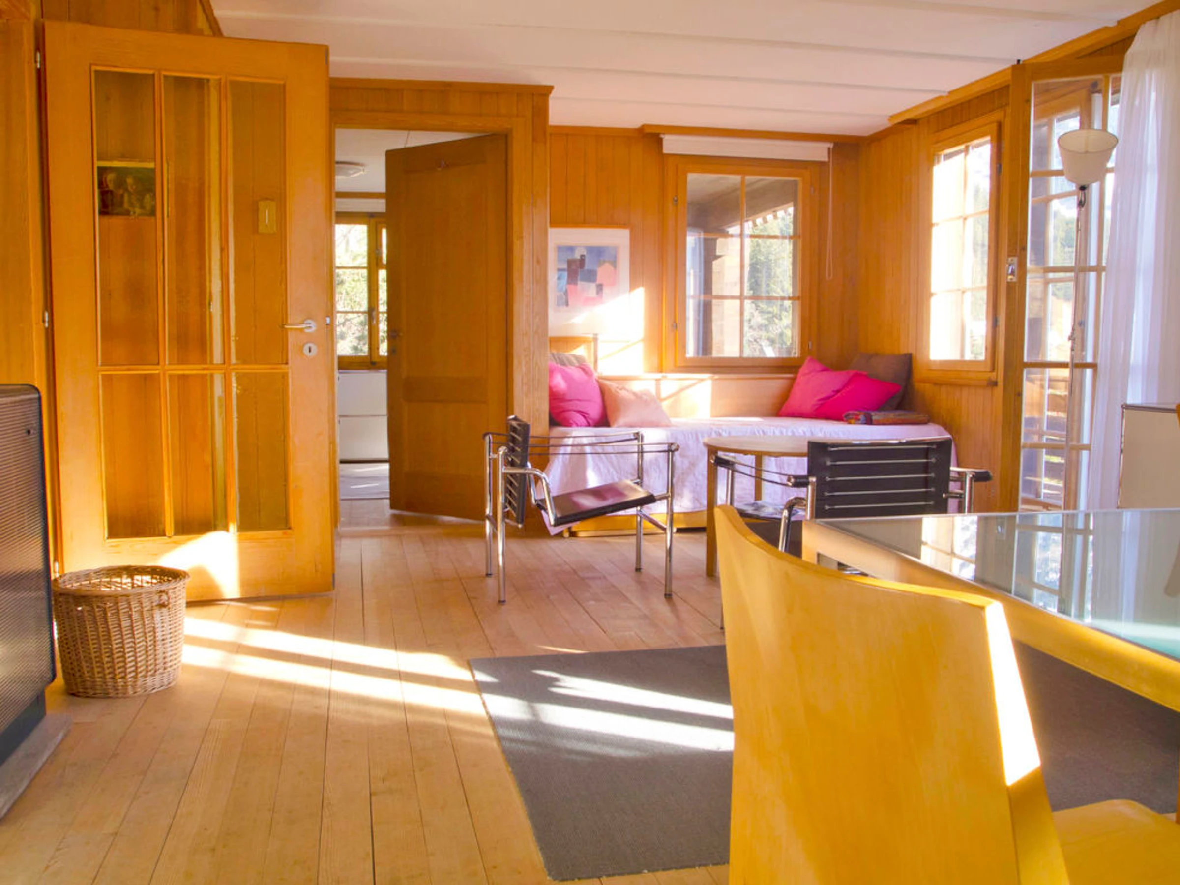 2-Zimmer-Chalet 53 m2, im Obergeschoss. Geräumig, teilweise renoviert, modern und geschmackvoll eingerichtet: Wohn-/Esszimmer 30 m2 mit Veranda mit 1 Bett (90 cm, Länge 200 cm), Esstisch, Kabel-TV und Internationale TV-Sender (Flachbildschirm), Radio und CD. Ausgang zum Balkon. 1 Doppelzimmer 14 m2 mit 2 Betten (90 cm, Länge 200 cm), Bad/WC. Ausgang zum Balkon. Offene Küche (Backofen, Geschirrspüler, 4 Glaskeramikherd Platten, elektrische Kaffeemaschine). Grosser Balkon, Gartensitzplatz. Terrassenmöbel. Herrliche Panoramasicht auf die Berge und das Tal. Zur Verfügung: Internet (Wireless LAN, gratis). Bitte beachten: Nichtraucher-Haus. Maximal 1 Haustier/Hund erlaubt. Enthaltet: Wäsche (Erstausstattung Bett- und Toilettenwäsche), ERV assurance annulation gratuite, Endreinigung Erhältlich vor Ort mit Aufpreis: Kinderhochstuhl 4.39EUR pro Tag, Babybett (bis 2 Jahre) 8.77EUR pro Tag, Haustier 43.86EUR pauschal Obligatorische Extra Dienstleistungen vor Ort: Kurtaxe Babys (0-2) (pro Person/Tag), Kurtaxe Kinder (6-15) 1.8EUR pro Person/Tag, Kurtaxe 3.8EUR pro Person/Tag, Kurtaxe 4.3EUR pro Person/Tag, Kurtaxe Kinder (3-5) (pro Person/Tag), Kurtaxe 4.8EUR pro Person/Tag