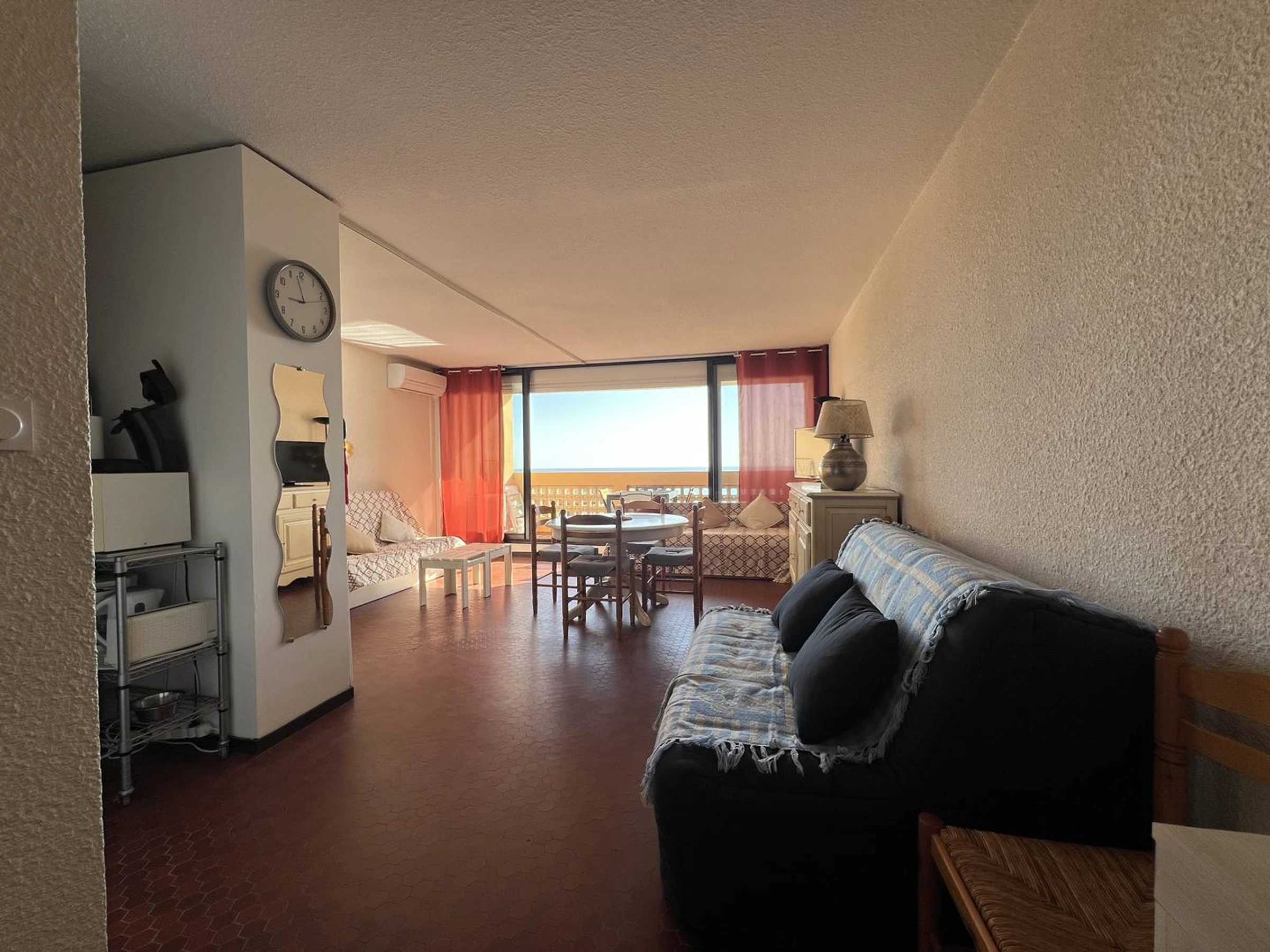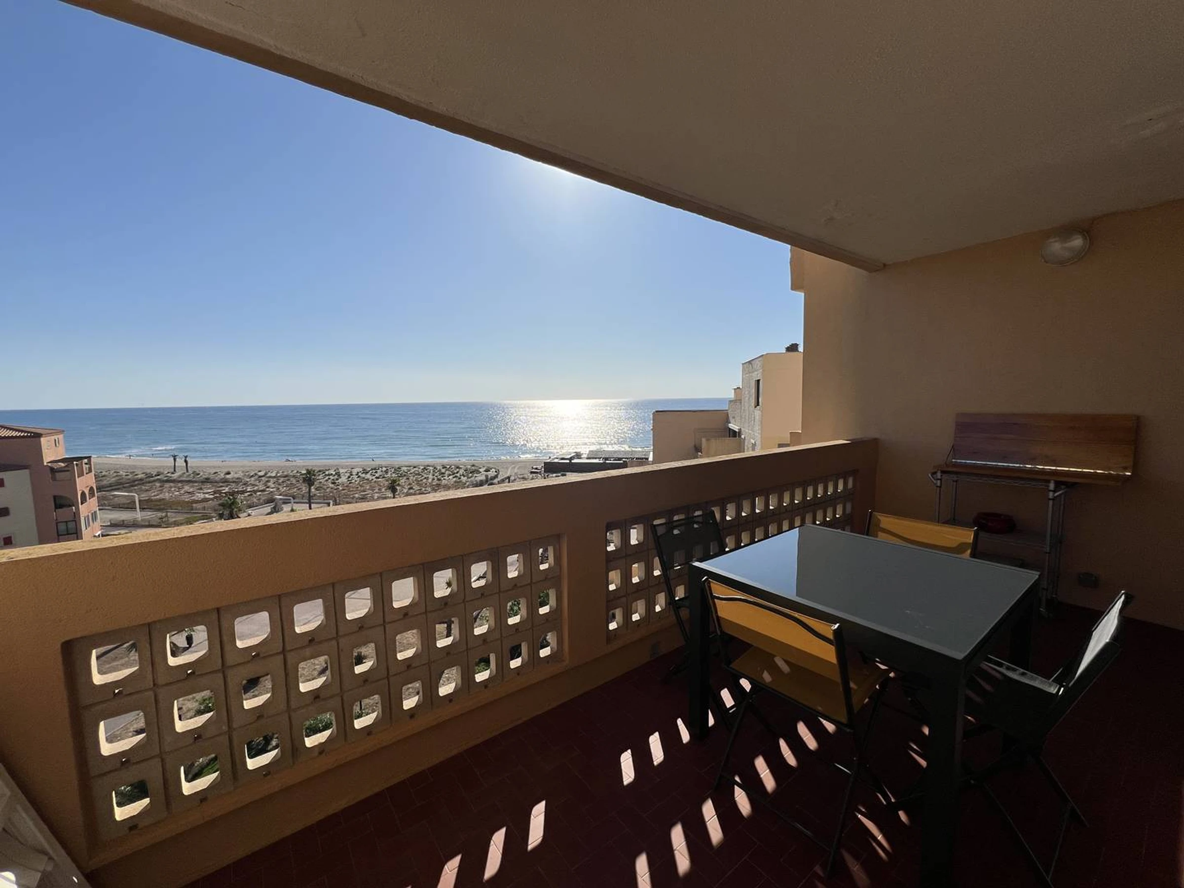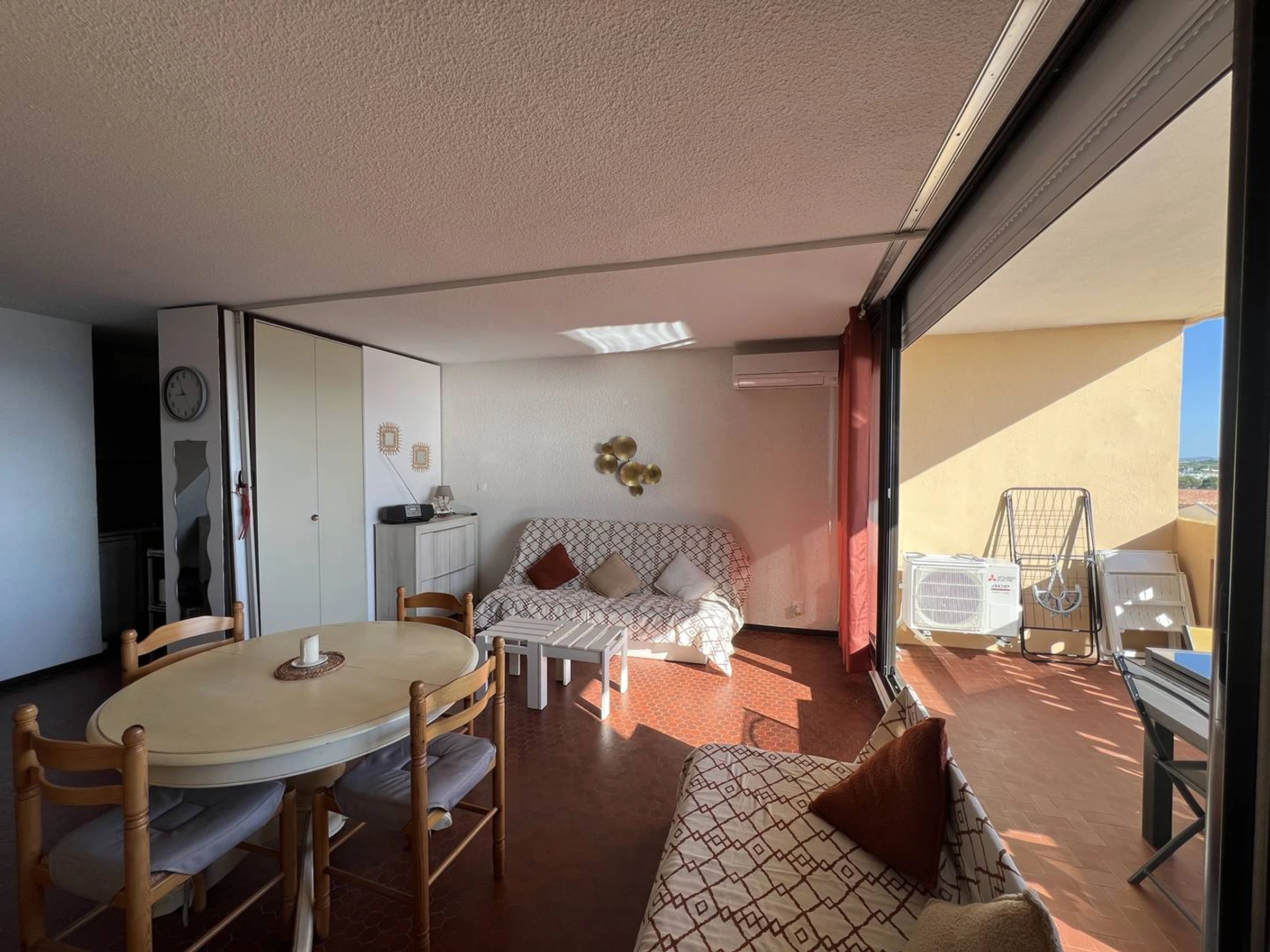 BARCARES (66), Im 5. Stock der Residenz ARGONAUTES gelegen, verfügt es über eine 10 m² große Terrasse, ein Duschbad, ein separates WC, ein Wohnzimmer, eine offene Küche, einen separaten Schlafbereich mit Schiebetür, Geschirrspüler, Waschmaschine, Fernseher, Mikrowelle und Gefrierschrank.