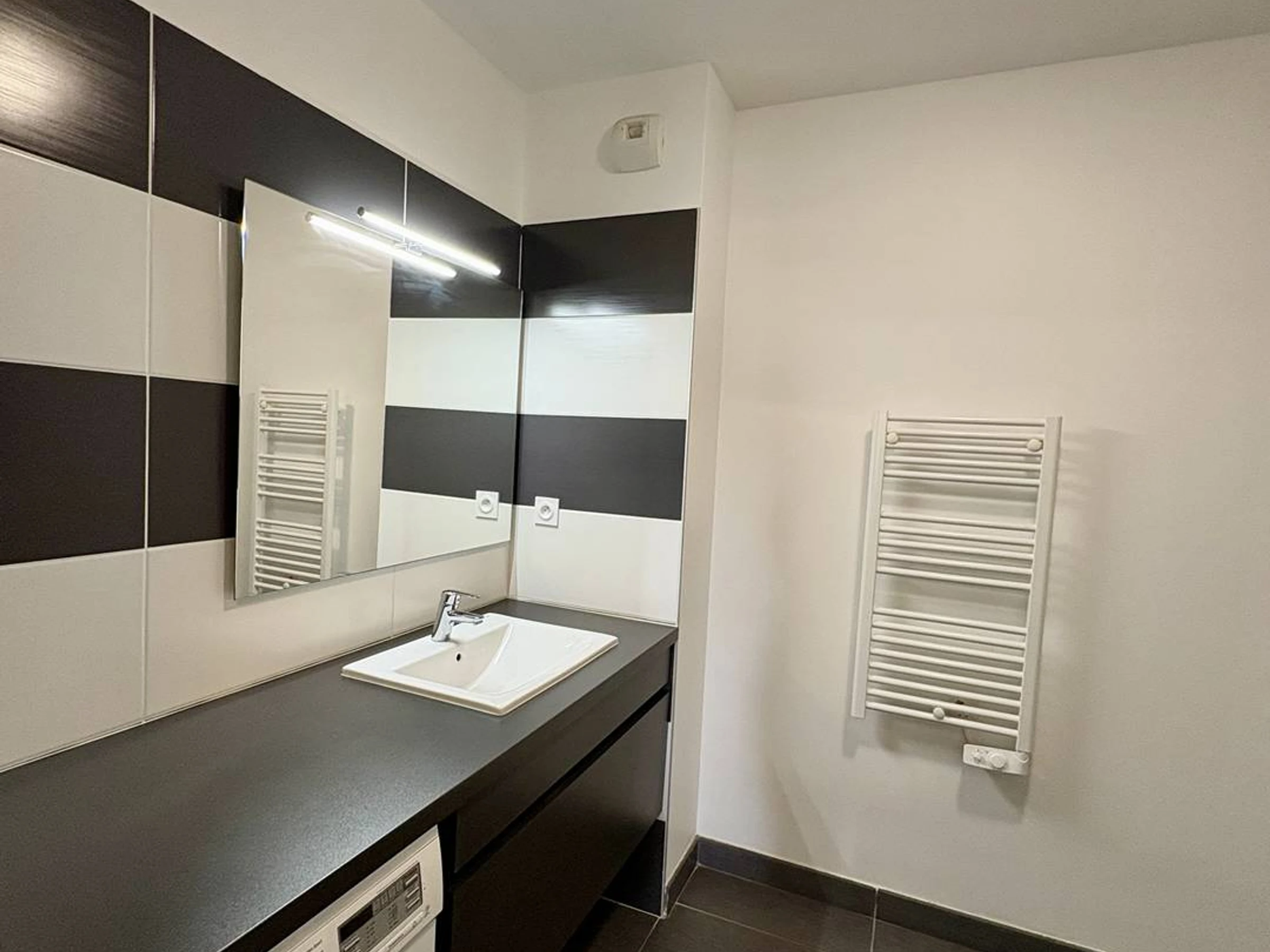 Das Badezimmer ist mit einer Waschmaschine ausgestattet. Ein separates WC ist ebenfalls vorhanden.