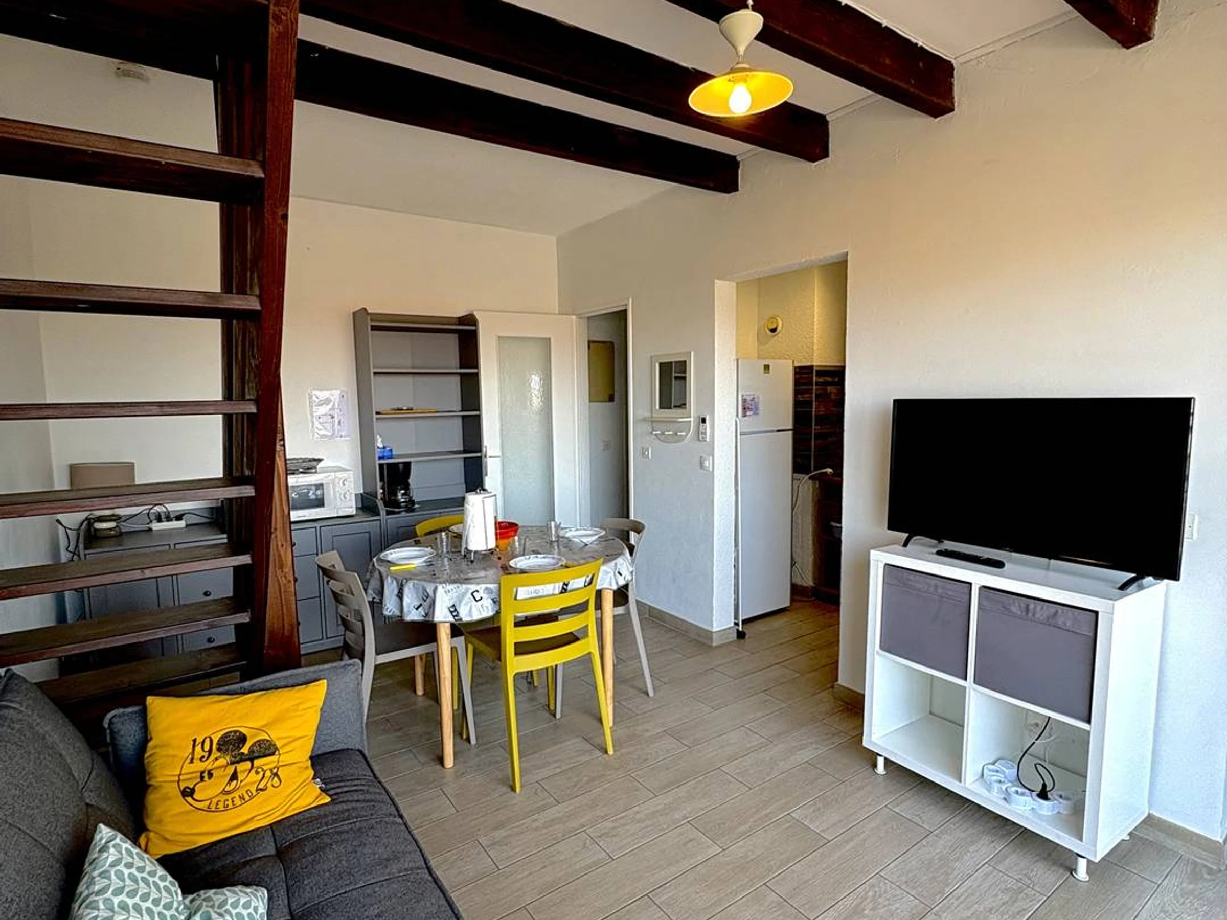 Dieses Apartment im 3. Stock des Le Barcarès liegt nur 50 Meter vom Strand und 300 Meter vom Stadtzentrum entfernt und bietet Platz für bis zu 5 Personen.