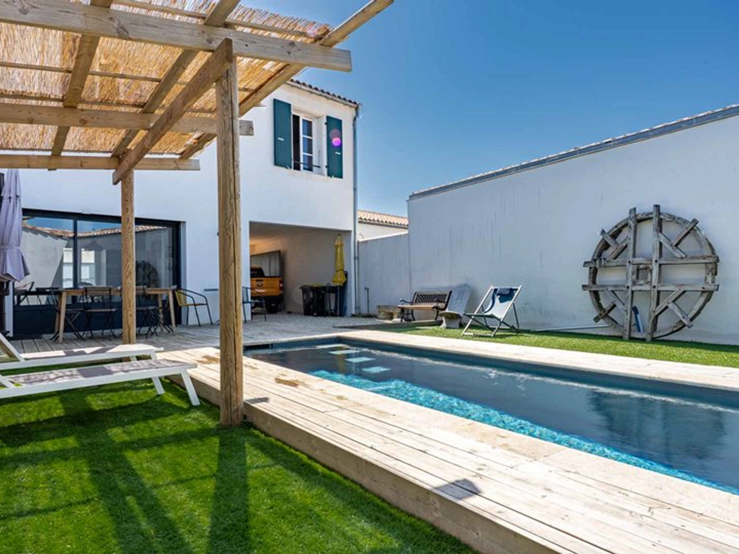Sie werden die Terrasse und den Swimmingpool mit Gegenstromanlage zu schätzen wissen.