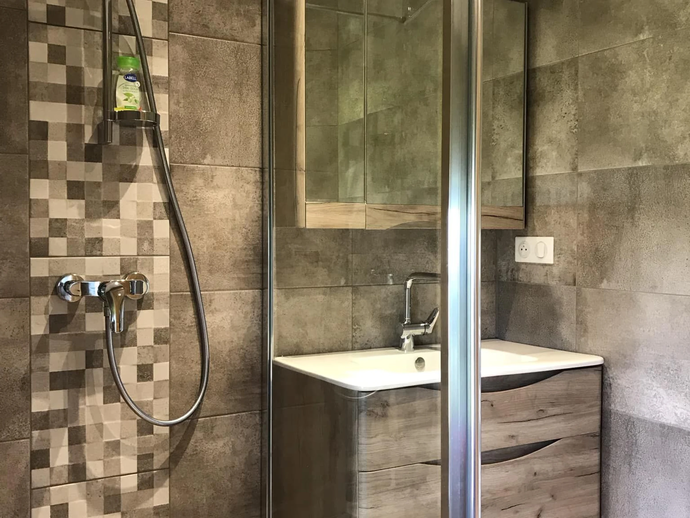 Auf derselben Ebene befindet sich ein Badezimmer mit italienischer Dusche und WC.
