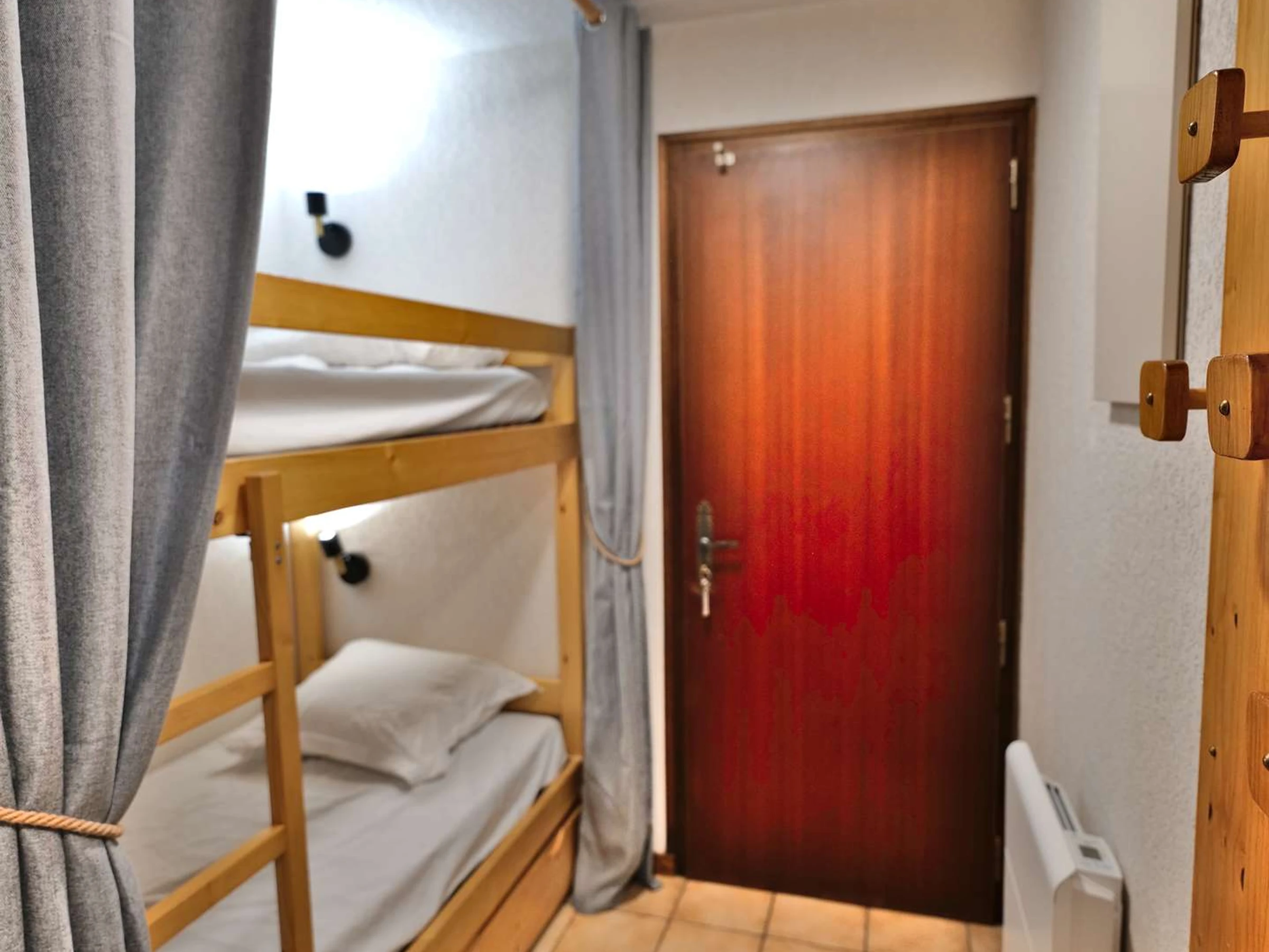 Einen Eingangsbereich mit Schlafnische und zwei 90 cm breiten Etagenbetten