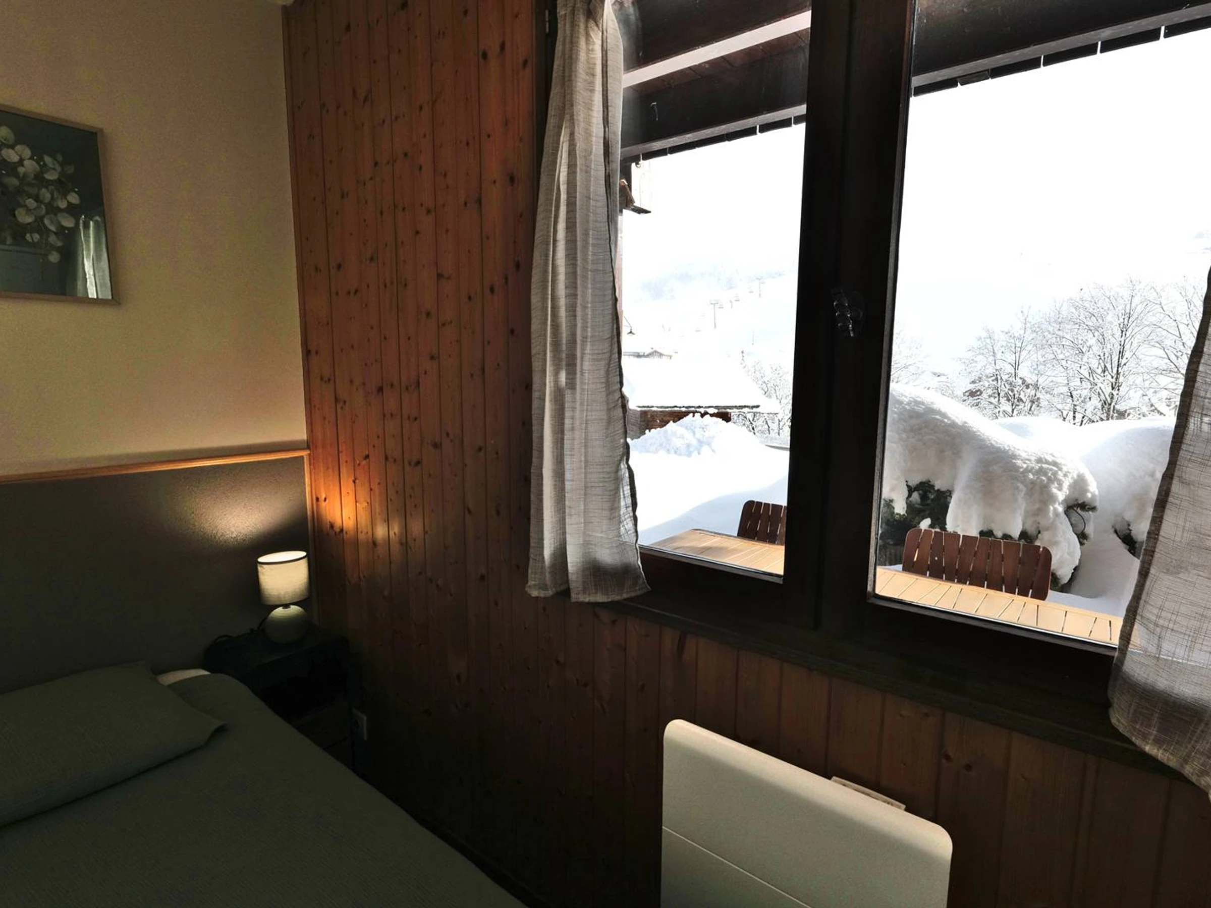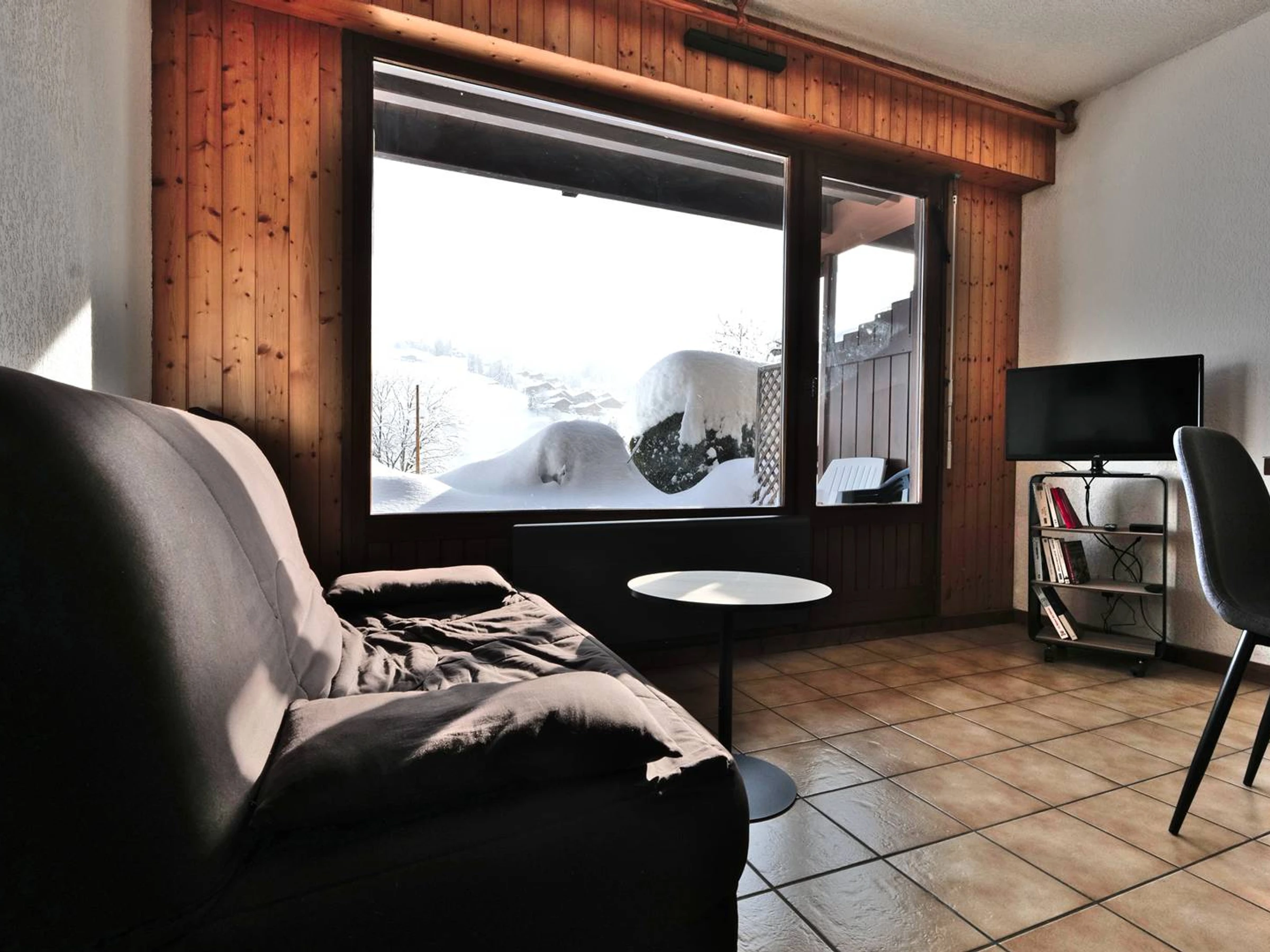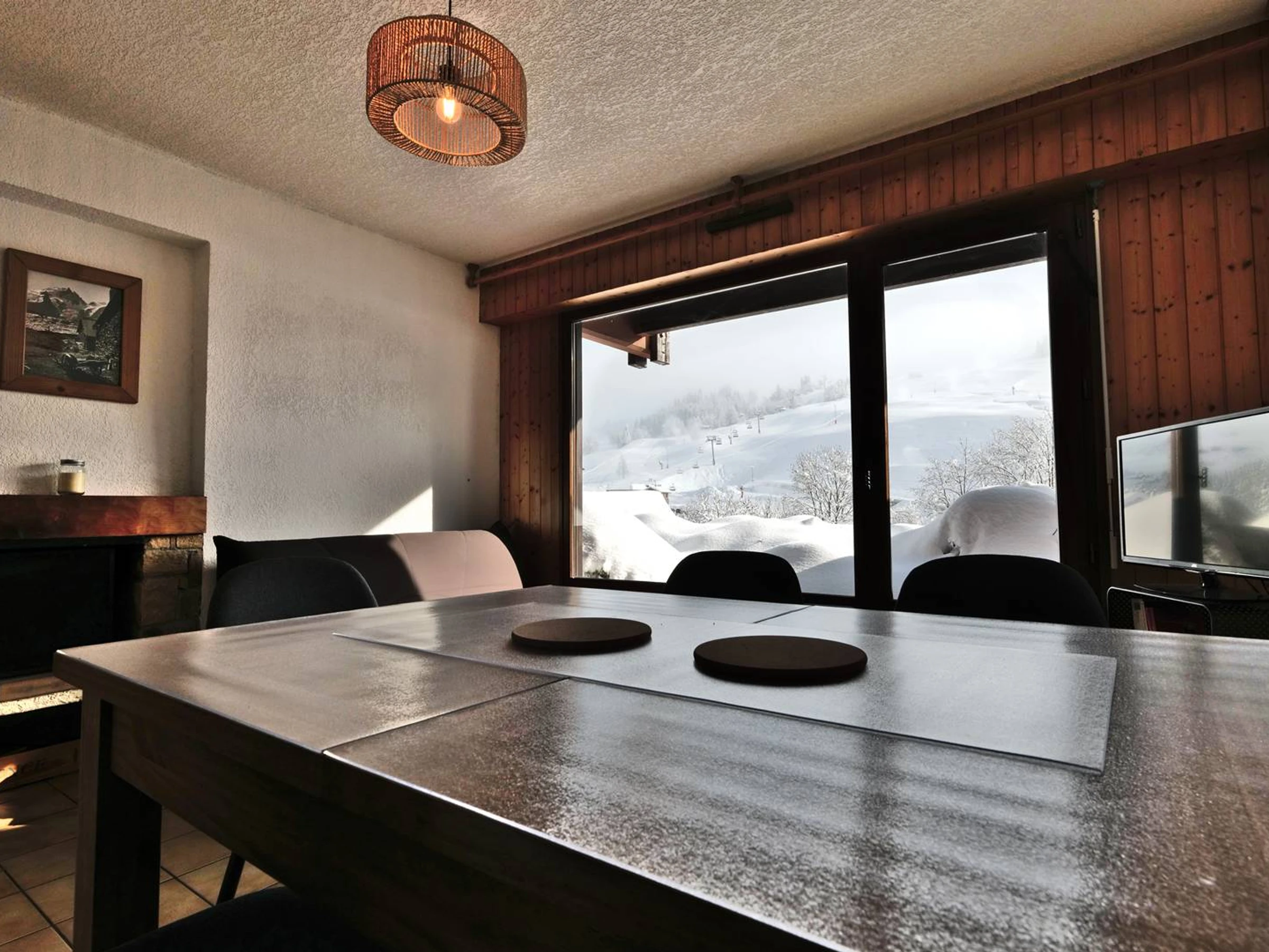 Diese 2-Zimmer-Wohnung mit Schlafnische befindet sich im Erdgeschoss der Residenz. Sie ist ideal für 6 Personen und bietet einen Panoramablick auf die Pisten.